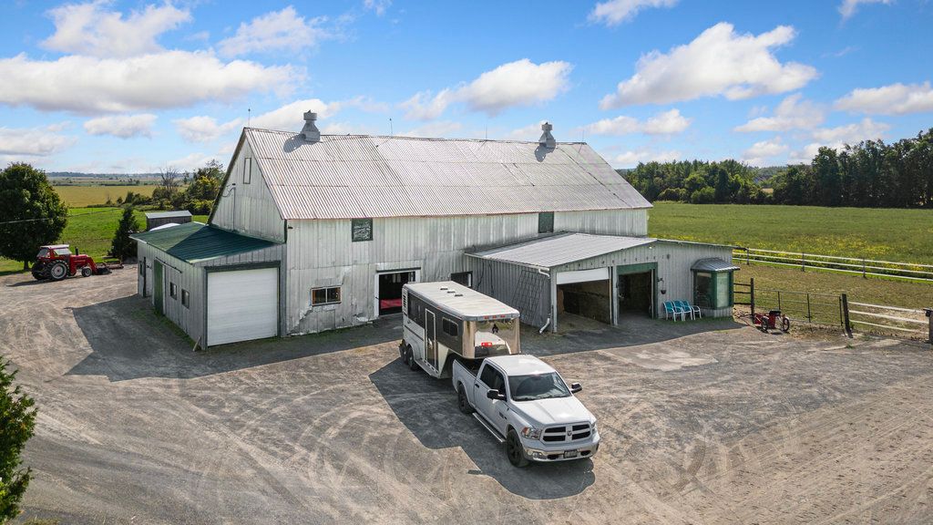 Discover the perfect blend of rustic charm and modern convenience with this 2-bedroom, 2-bath farmhouse set on 34+ acres. Currently generating over $8,000 in gross revenue each month with options for much more, this property offers both a warm family home and an outstanding agricultural opportunity. The open-concept layout features a cozy family room with a wood stove for chilly evenings, a bright dining room, and a stylish, well-equipped kitchen with brand-new appliances throughout. A dedicated home office provides a quiet, productive space in a serene rural setting. A true horse lovers dream, the property includes a 26-stall barn, tack room, and wash stall, along with multiple paddocks with electric fencing, a riding ring, and a -mile training track. Additional highlights include two decks with breathtaking views, a detached shop with lift for storage or projects, and acres of hay fields with room for cash crops, ensuring agricultural versatility and income potential. Conveniently located just 20 minutes from rideau carleton raceway, this rare offering balances rural tranquility with easy access to city amenities. More than just a home, this is a lifestyle. New heat pump installed november 2023.