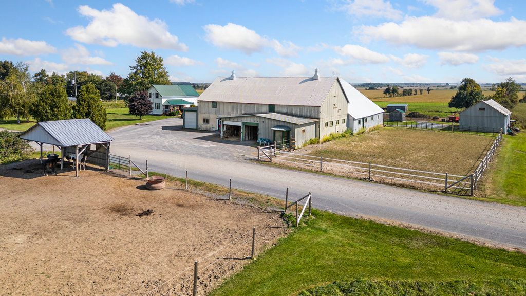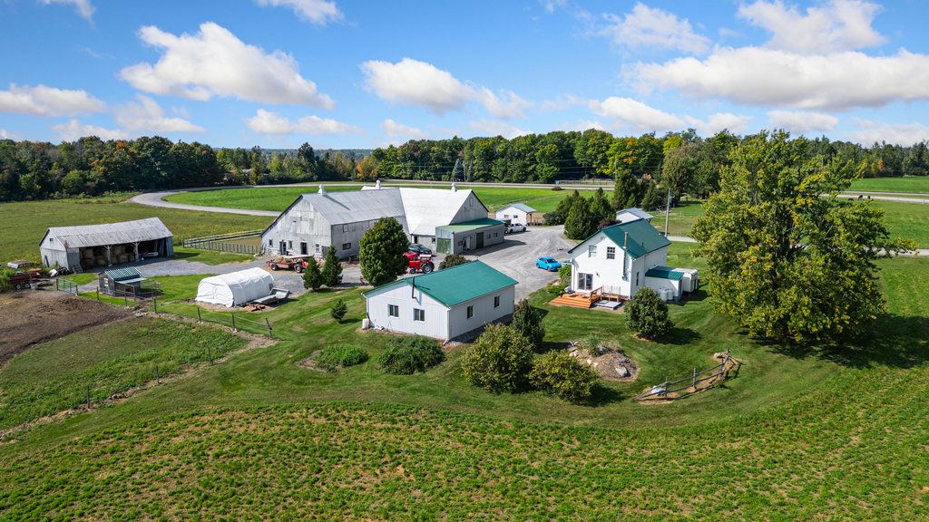 Discover the perfect blend of rustic charm and modern convenience with this 2-bedroom, 2-bath farmhouse set on 34+ acres. Currently generating over $8,000 in gross revenue each month with opportunity for more, this property offers both a warm family home and an outstanding agricultural opportunity. The open-concept layout features a cozy family room with a wood stove for chilly evenings, a bright dining room, and a stylish, well-equipped kitchen with brand-new appliances throughout. A dedicated home office provides a quiet, productive space in a serene rural setting. A true horse lovers dream, the property includes a 26-stall barn, tack room, and wash stall, along with multiple paddocks with electric fencing, a riding ring, and a -mile training track. Additional highlights include two decks with breathtaking views, a detached shop with lift for storage or projects, and acres of hay fields with room for cash crops, ensuring agricultural versatility and income potential. Conveniently located just 20 minutes from rideau carleton raceway, this rare offering balances rural tranquility with easy access to city amenities. More than just a home, this is a lifestyle. Heat pump installed november 2023.