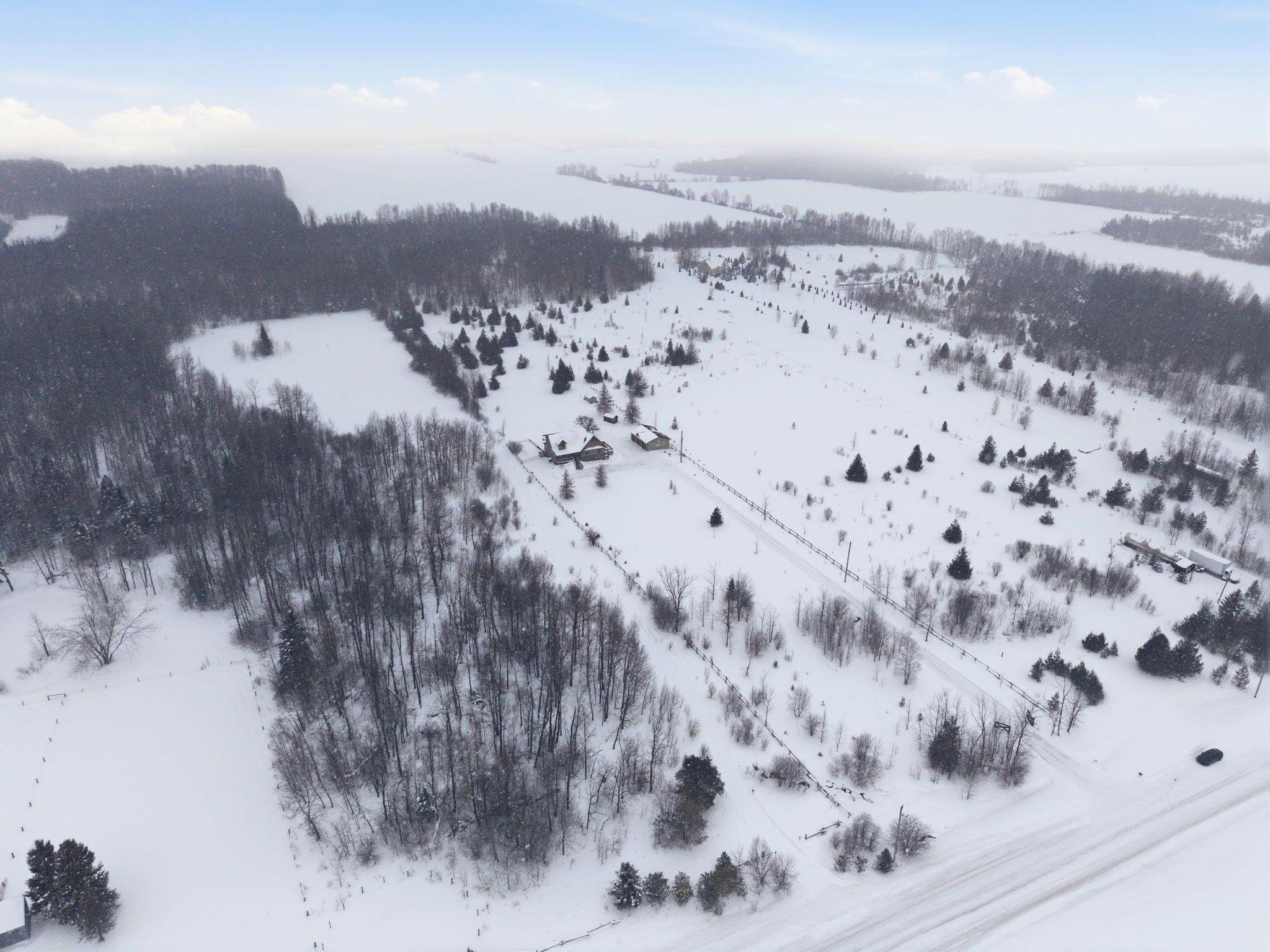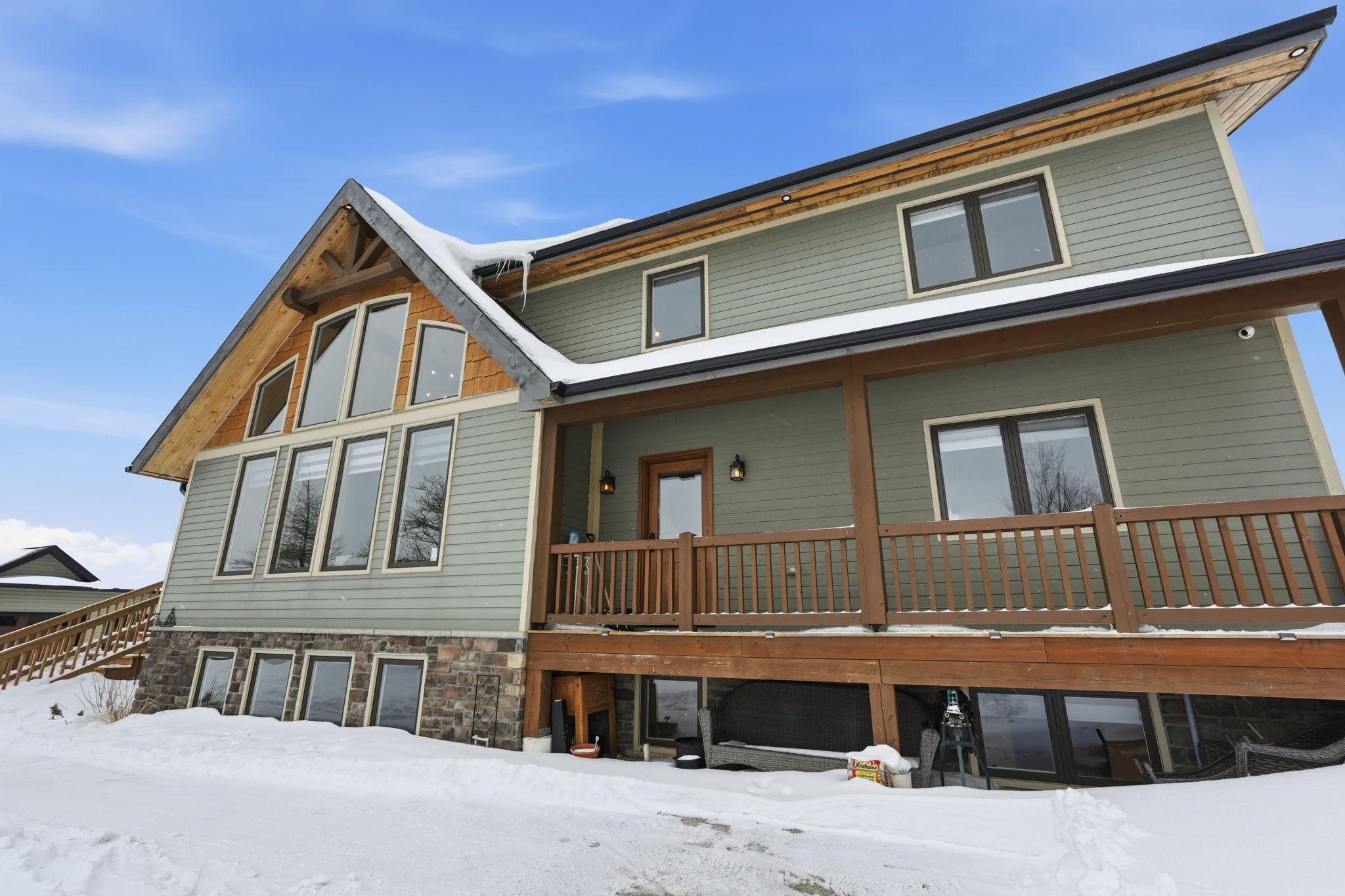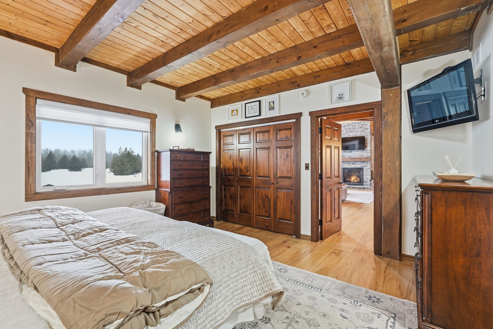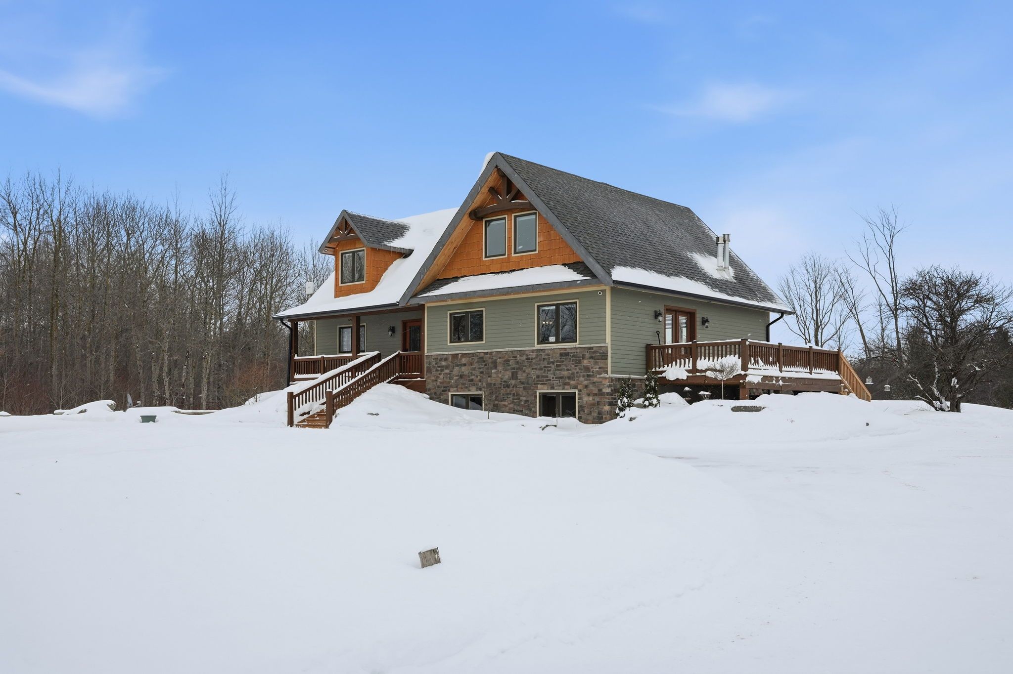 Welcome to this truly special 3-bedroom, 3-bathroom timber-framed home, perfectly set on a beautifully landscaped almost 5. 5-acre lot just a hop, skip, and a jump from mount forest. The heart of the home is the spectacular great room, featuring vaulted ceilings, a floor-to-ceiling stone fireplace, and a stunning wall of windows that frames peaceful views of the surrounding nature. A spacious loft overlooks the great room, offering flexible space for a home office, reading nook, or guest area. The large, open-concept kitchen flows seamlessly into the great room-ideal for entertaining or everyday living. The main-floor primary bedroom provides comfort and convenience, while the finished lower level impresses with high ceilings, large windows, heated floors, and an additional stone fireplace, creating a warm and inviting retreat. Outside, the property truly shines with a picturesque pond, mature landscaping, and endless room to enjoy the outdoors. Car enthusiasts, hobbyists, or tradespeople will love the massive 24' x 36' detached garage/workshop. This is country living at its best. Rsa.