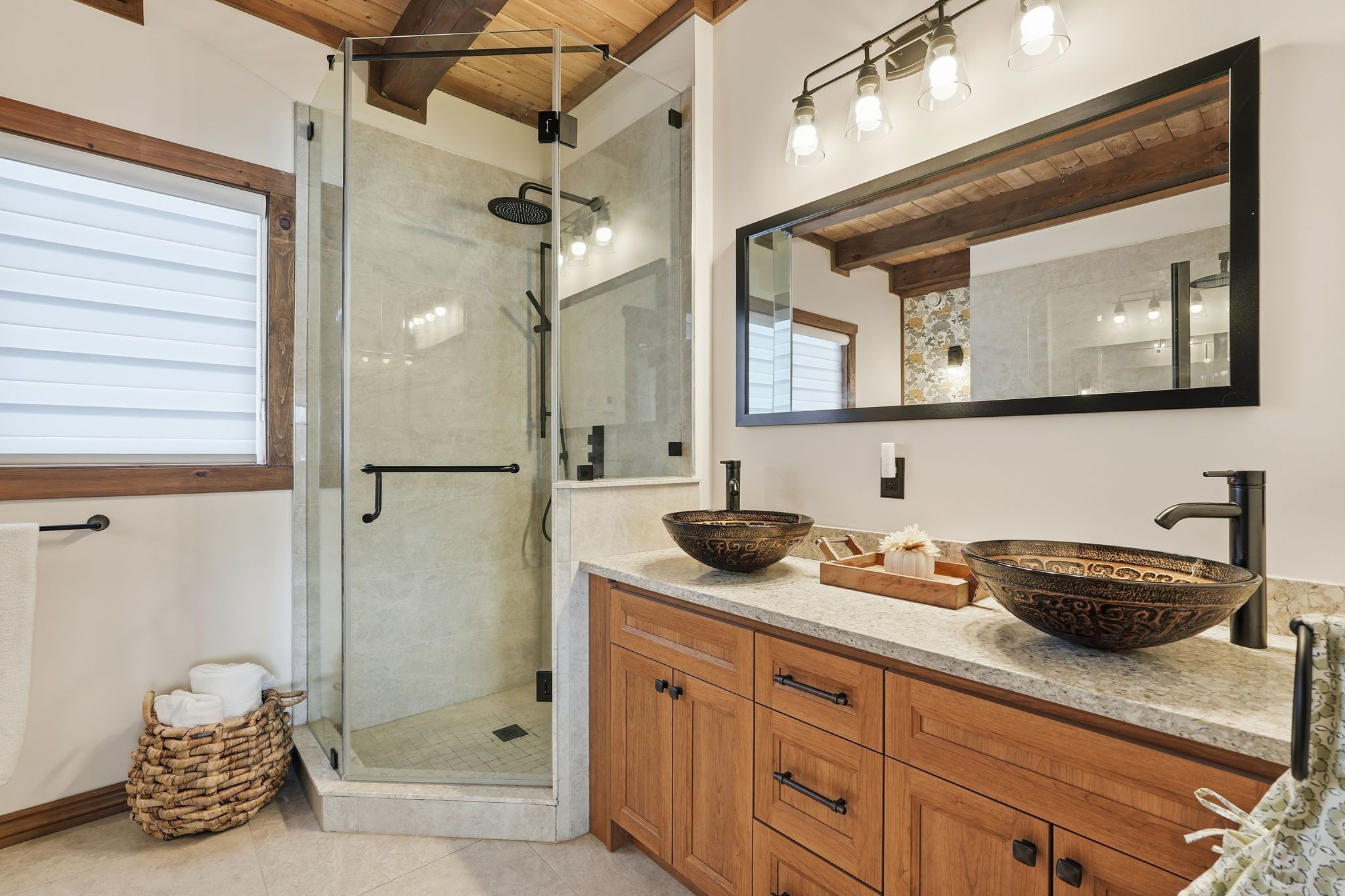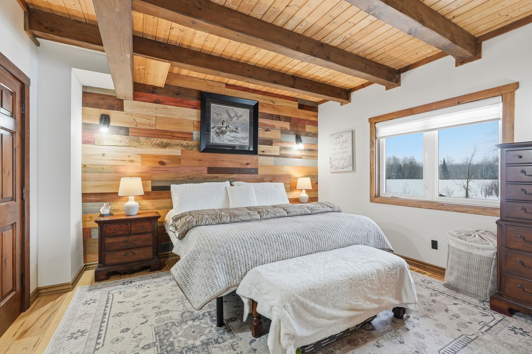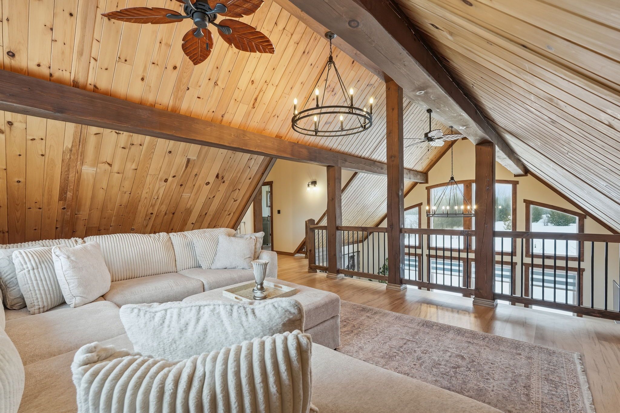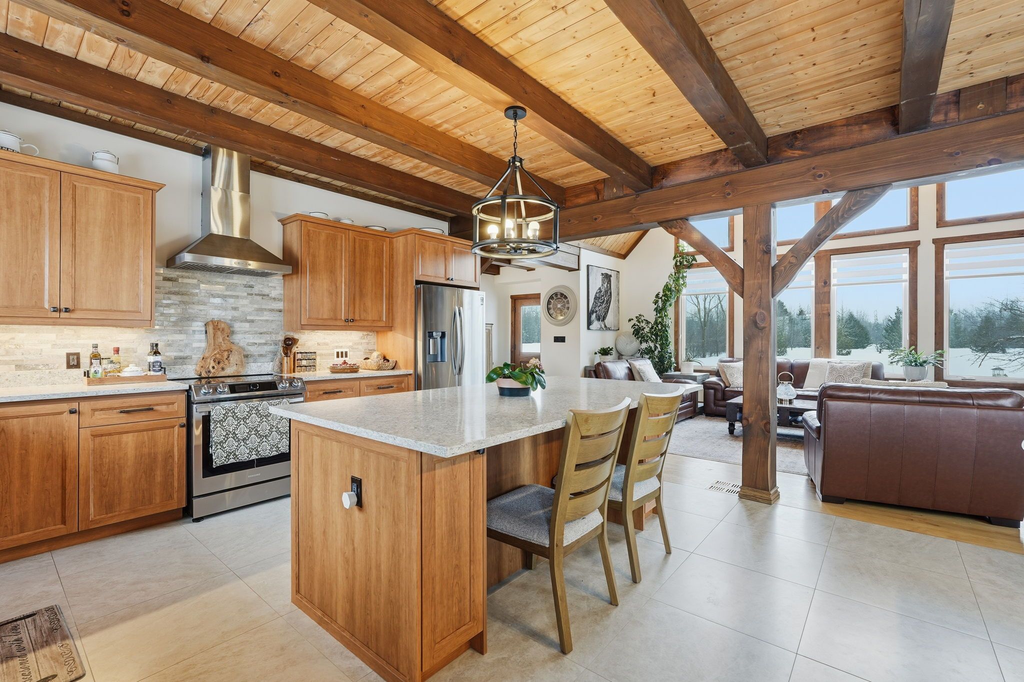 • Spacious timber-framed home on a beautifully landscaped 5.5-acre lot.