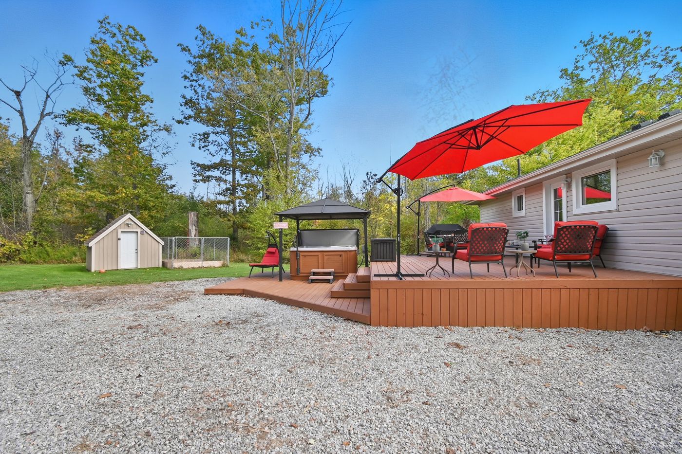 Beautiful tree-lined country property on nearly 1 acre in wainfleet. This 3 bedroom, 2 bath bungalow features a fully finished basement, updated mechanicals, and extensive renovations since 2018. Recent upgrades include new windows/doors, trim, crown molding, day/night blinds, moen fixtures, central air, high efficiency furnace with new ductwork, 100amp panel, water purification system, and new well water line and pump. Exterior improvements include new siding, fascia, seamless eavestroughs, a fully waterproofed foundation with transferable lifetime warranty, new septic access covers, and natural gas line to bbq. Enjoy a 24' saltwater pool with two-tier deck, extended front and back decking, hot tub, and pond at the rear of the property. Detached 24' x 24' insulated garage with mezzanine and new wiring, plus an additional cement floor storage shed and a heated dog house with 10' x 10' run. Property includes an invisible fence and rogers fibre internet. A quiet, maturely treed rural setting with major updates throughout. Move in ready country living!