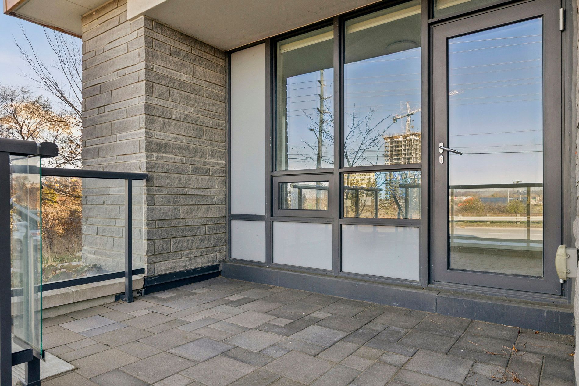 Bright ground-floor one-bedroom suite with two private terraces and dual entrances. Updated interior with an open-concept kitchen, living, and dining area offering direct walk-in access from bayly street. South-facing bedroom provides excellent natural light. Steps to pickering go, highway401, restaurants, cafés, parks, and trails. Includes parking, locker, and full access to building amenities: outdoor pool and hot tub, sauna, gym, party room, guest suite, bbqs, communal patio, and visitor parking.