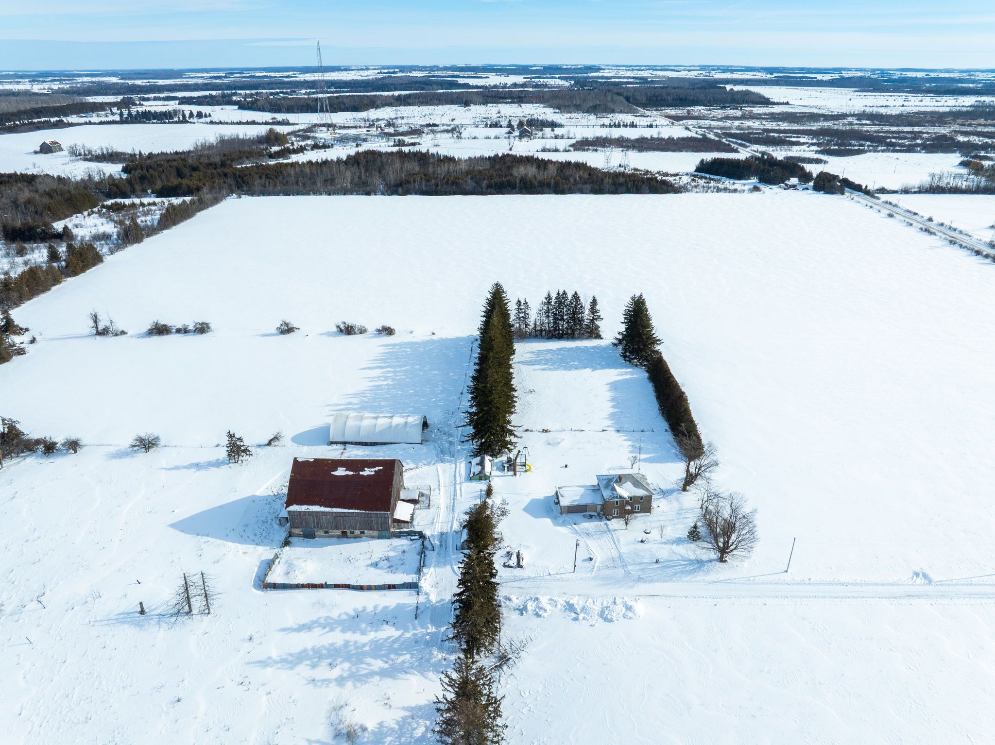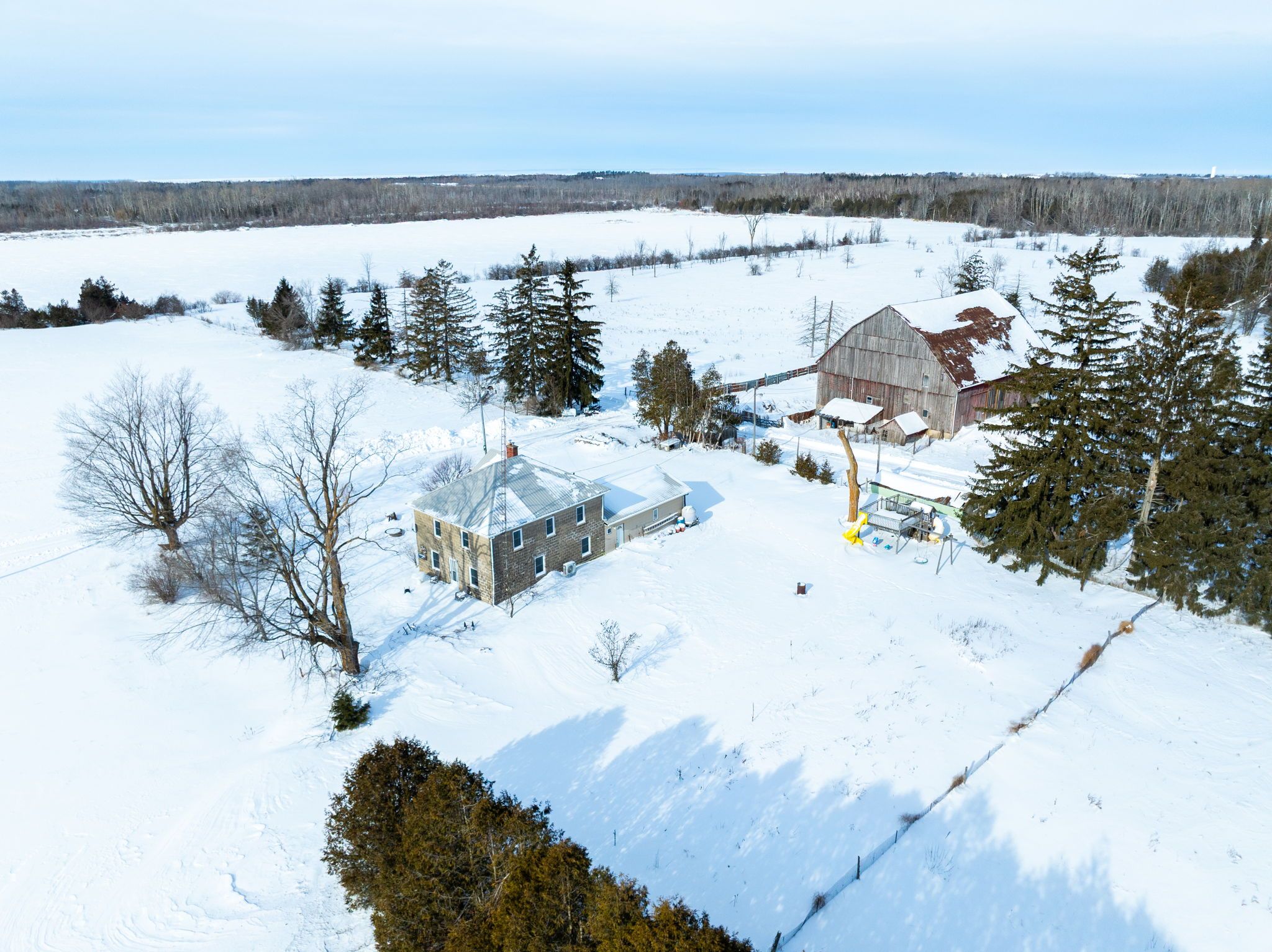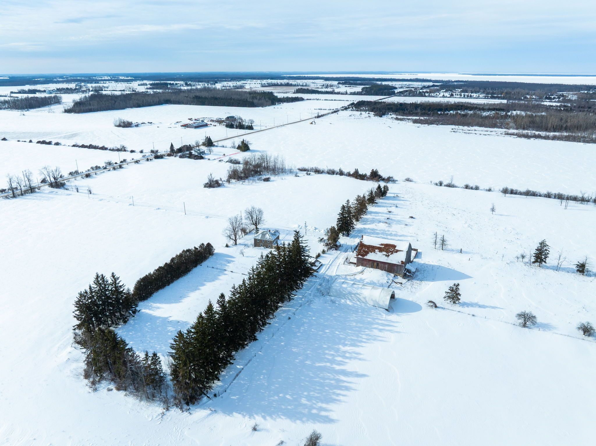 Located just outside the town limits of beaverton, this approximately 175-acre property presents a rare opportunity to acquire a large, versatile land holding with strong lifestyle, agricultural, and long-term investment appeal. Roughly 70 acres are open and workable, suitable for active farming or pasture, while the balance of the property is a beautiful, privately owned forest offering recreation, privacy, and long-term land value. The solid two-storey farmhouse offers just under 2,500 square feet above grade and has been freshly painted throughout. A new farmhouse kitchen anchors the main level with extensive cabinetry and a wide layout ideal for everyday living and gathering. The main floor includes a spacious living room, separate dining room, and a flexible bedroom well suited for a home office or main-floor primary. A combined two-piece washroom and laundry room adds practicality, while original baseboards and trim throughout much of the home preserve its character. Upstairs are four full bedrooms and an oversized washroom with double sinks, ample cabinetry, a soaker tub, and a walk-in shower. A staircase from the upper hallway leads to a large unfinished third-storey attic, presenting excellent potential to expand the living space and add future value. A large mudroom connects the home to the attached two-car garage. Supporting the land are a large coverall and a substantial bank barn previously used for cattle, making this property suitable for livestock, equipment storage, and continued agricultural operations. Frontage along the unopened portion of thorah concession 4 road may present future development consideration. Enjoy rural privacy with the convenience of being minutes from town amenities, lake simcoe, and an easy commute into the gta! Note: farming property tax incentive applied.