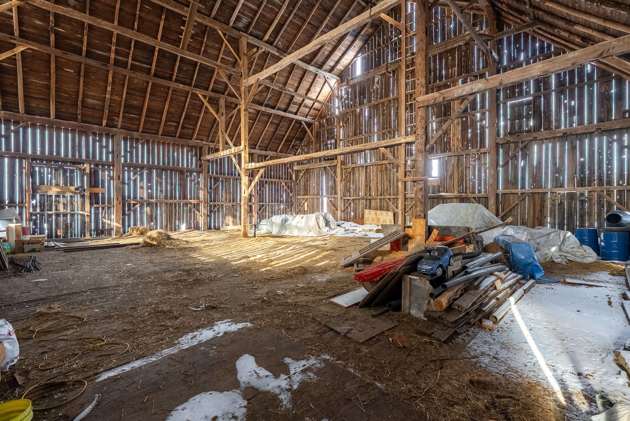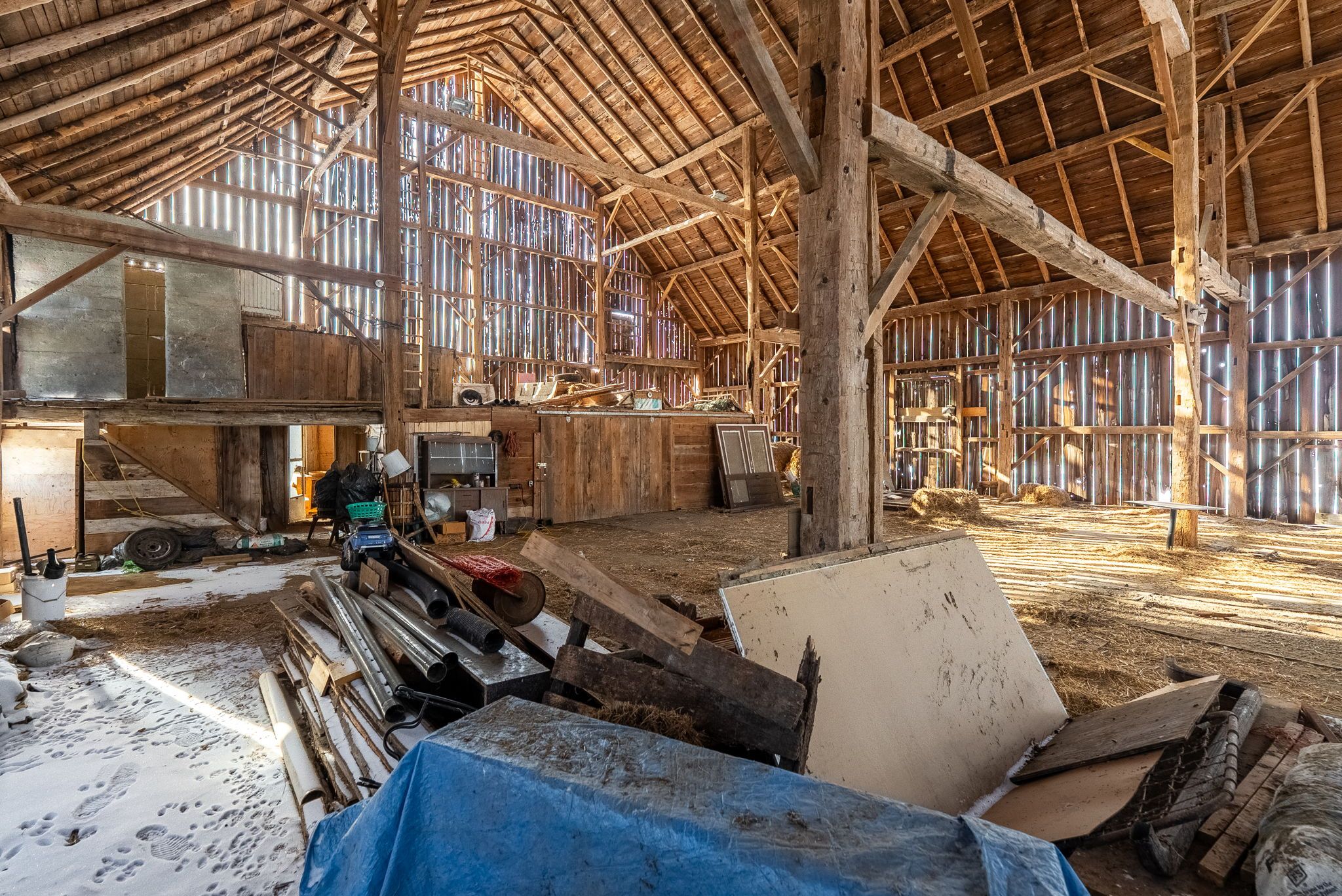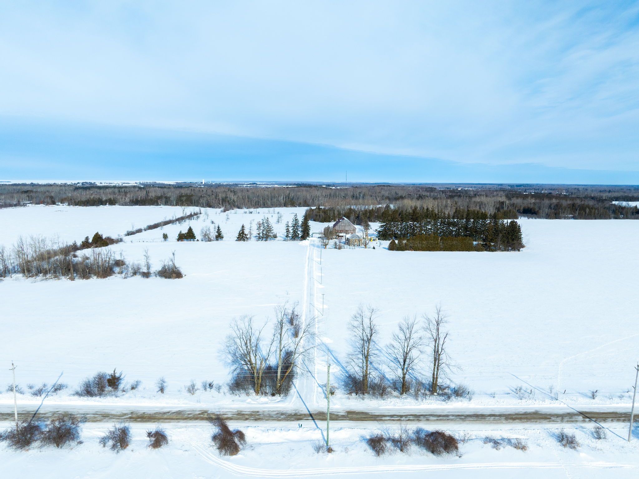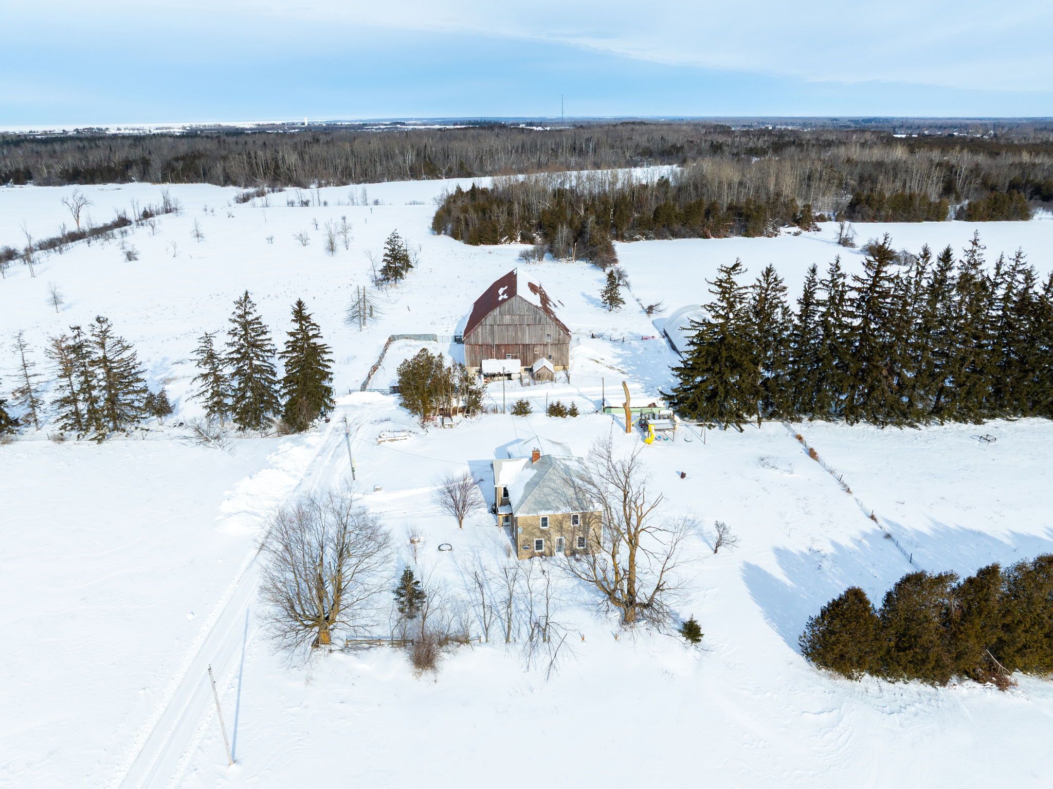 Located just outside the town limits of beaverton, this approximately 175-acre property presents a rare opportunity to acquire a large, versatile land holding with strong lifestyle, agricultural, and long-term investment appeal. Roughly 70 acres are open and workable, suitable for active farming or pasture, while the balance of the property is a beautiful, privately owned forest offering recreation, privacy, and long-term land value. The solid two-storey farmhouse offers just under 2,500 square feet above grade and has been freshly painted throughout. A new farmhouse kitchen anchors the main level with extensive cabinetry and a wide layout ideal for everyday living and gathering. The main floor includes a spacious living room, separate dining room, and a flexible bedroom well suited for a home office or main-floor primary. A combined two-piece washroom and laundry room adds practicality, while original baseboards and trim throughout much of the home preserve its character. Upstairs are four full bedrooms and an oversized washroom with double sinks, ample cabinetry, a soaker tub, and a walk-in shower. A staircase from the upper hallway leads to a large unfinished third-storey attic, presenting excellent potential to expand the living space and add future value. A large mudroom connects the home to the attached two-car garage. Supporting the land are a large coverall and a substantial bank barn previously used for cattle, making this property suitable for livestock, equipment storage, and continued agricultural operations. Frontage along the unopened portion of thorah concession 4 road may present future development consideration. Enjoy rural privacy with the convenience of being minutes from town amenities, lake simcoe, and an easy commute into the gta! Note: farming property tax incentive applied.