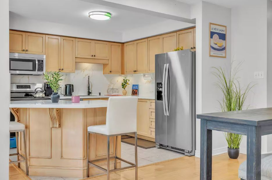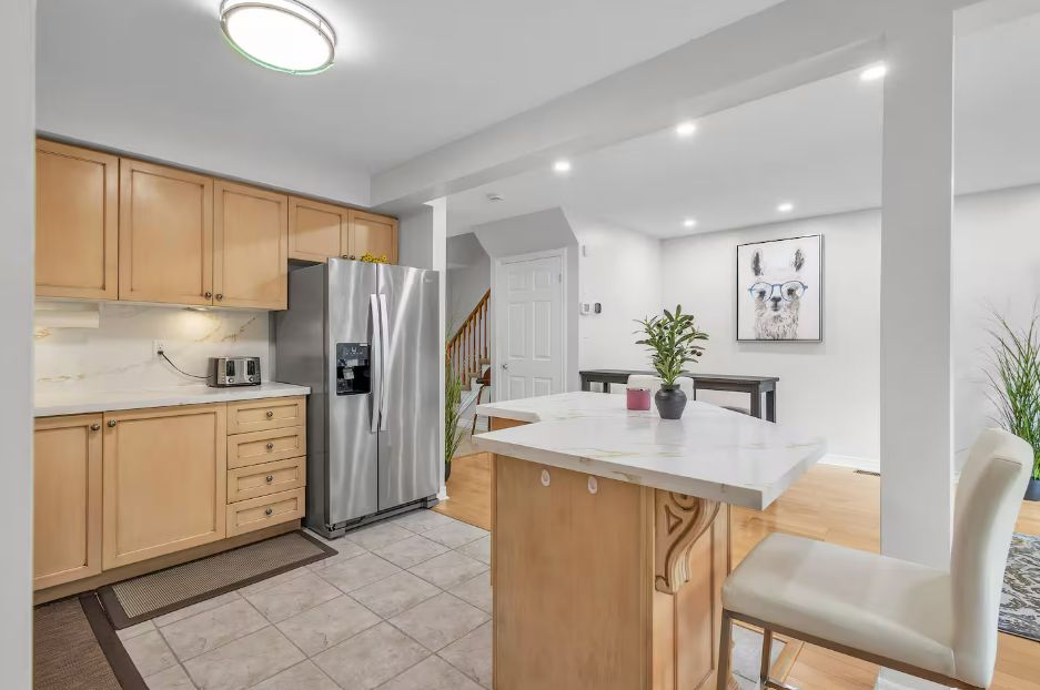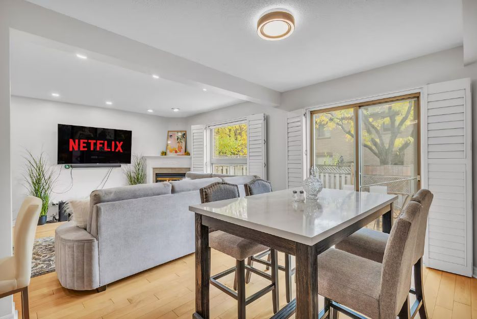 Fully furnished 3-bedroom townhome, short or annual term rental (flexible terms) enjoy this bright sleeky and well-kept fully furnished 3-bedroom, 2. 5-bathroom townhome in enjoy this bright sleeky and well-kept fully furnished 3-bedroom, 2. 5-bathroom townhome in burlington's desirable maple community. Perfectly located within walking distance to downtown burlington, mapleview mall, go station, parks, grocery stores, and the waterfront, with easy access to the 403/qew. The home features hardwood floors and a main floor, an eat-in kitchen with a breakfast bar, a cozy family room with a gas fireplace, and a walk-out to a private yard. Upstairs offers convenient bedroom-level laundry, a primary suite with a walk-in closet and an ensuite, plus two furnished bedrooms. Ideal for short-term stays with flexible lease options and availability for longer rental periods. Move-in ready! Short-term lease with flexibility.