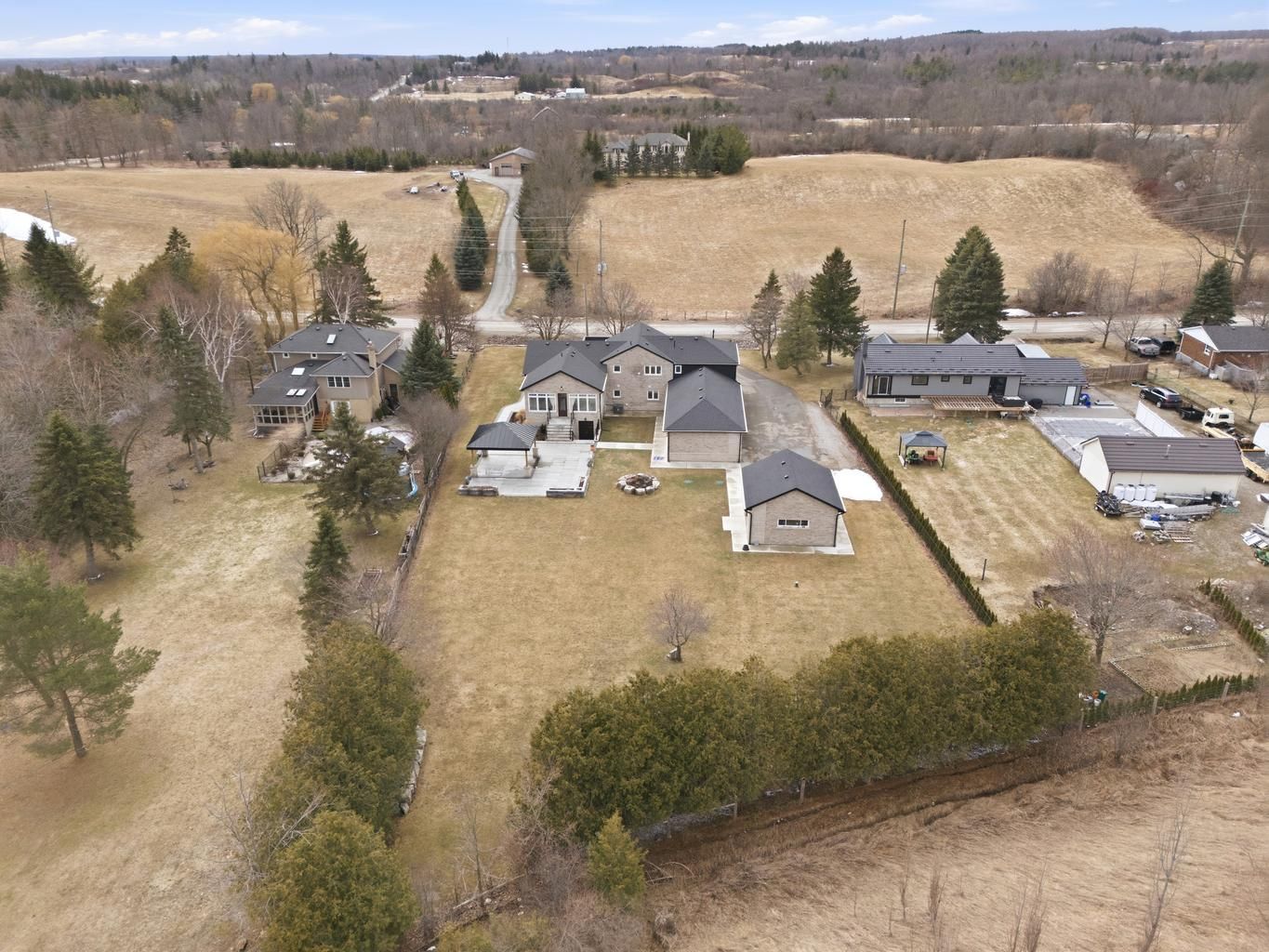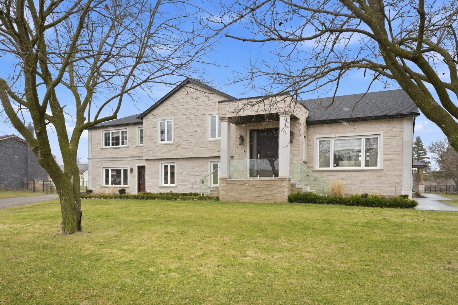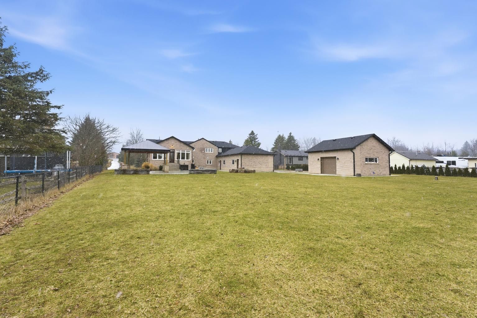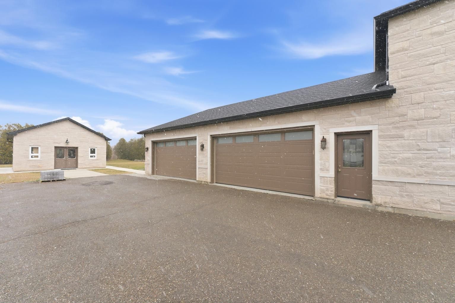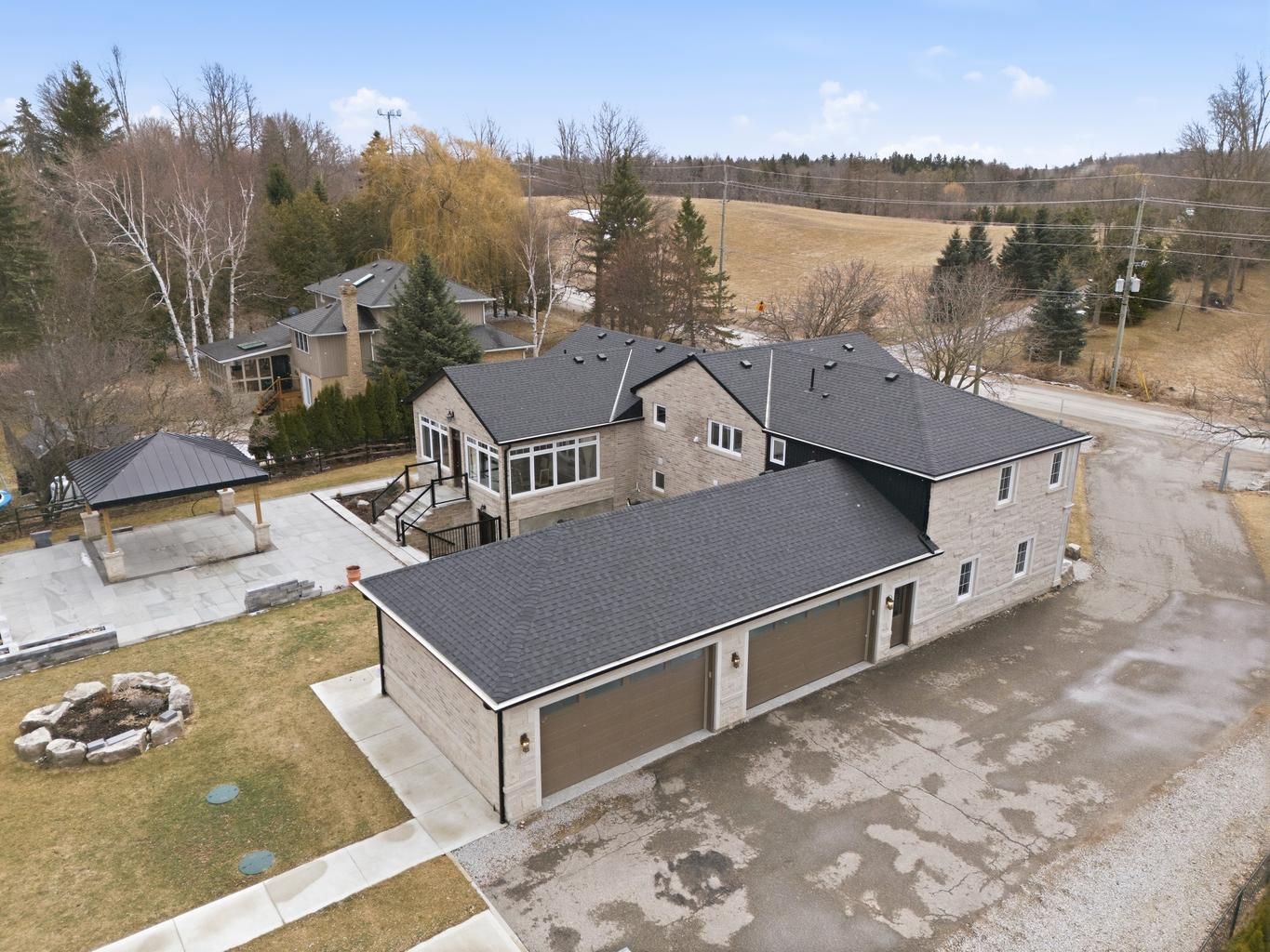 Welcome to 12463 eighth line, an entertainer's dream in prestigious glen williams. Set on approximately 1 acre, this recently rebuilt custom home offers over 3,500 sq. Ft. Above grade (as per mpac). Featuring 5 bedrooms and 4 bathrooms, this estate showcases hardwood flooring throughout, a natural stone exterior with limestone accents, and soaring 12-ft ceilings in the main living area. The open-concept main floor is designed for seamless living and entertaining, highlighted by a bright sunroom with a stunning limestone fireplace, backyard views, and a built-in coffee station. The chef-inspired kitchen is equipped with built-in jennair appliances and a large 9' x 4' island overlooking the living and dining areas. Outdoor living is elevated with a 30' x 40' patio and an 18' x 18' covered gazebo featuring porcelain tiles, limestone finishes, a gas hookup for an outdoor kitchen, and prewired for a gate infront of the home. Additional features include a 20' x 22' detached shop with 100 amp service, 400 amp electrical service to the home, heated upper-level bathroom floors, flagstone interlocking, automatic blinds features, bell fibre optic connectivity, and a 4-car garage with ample parking. Smart home capable with exceptional attention to detail throughout.