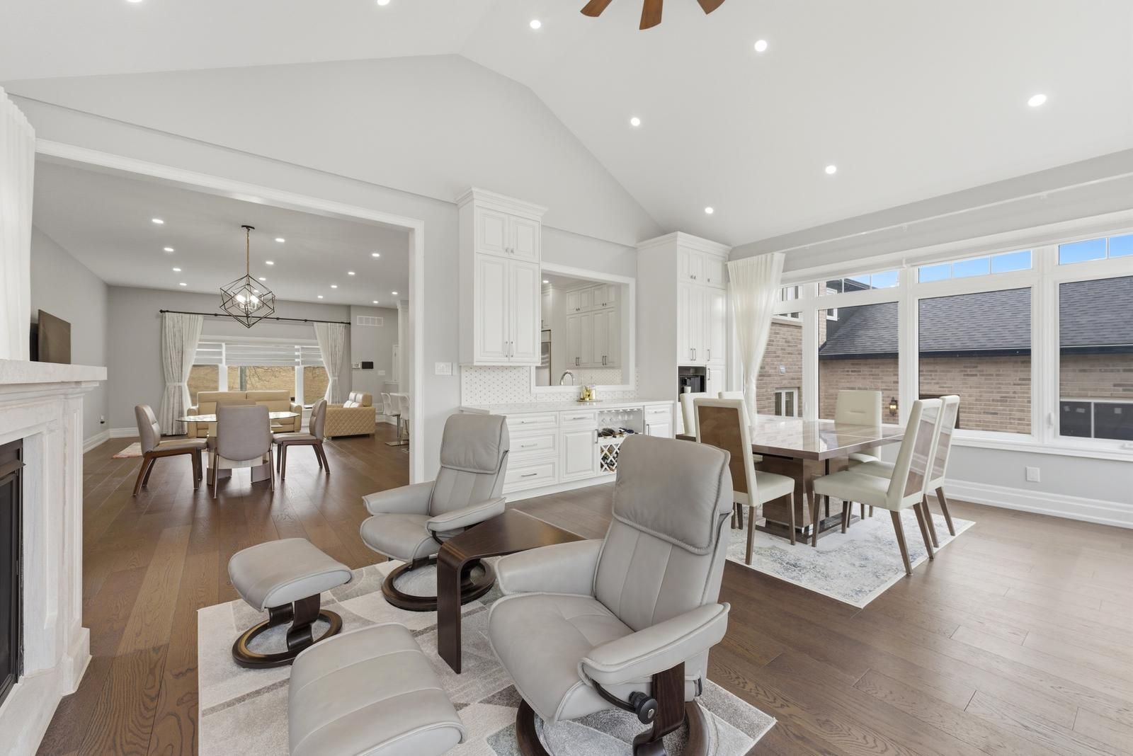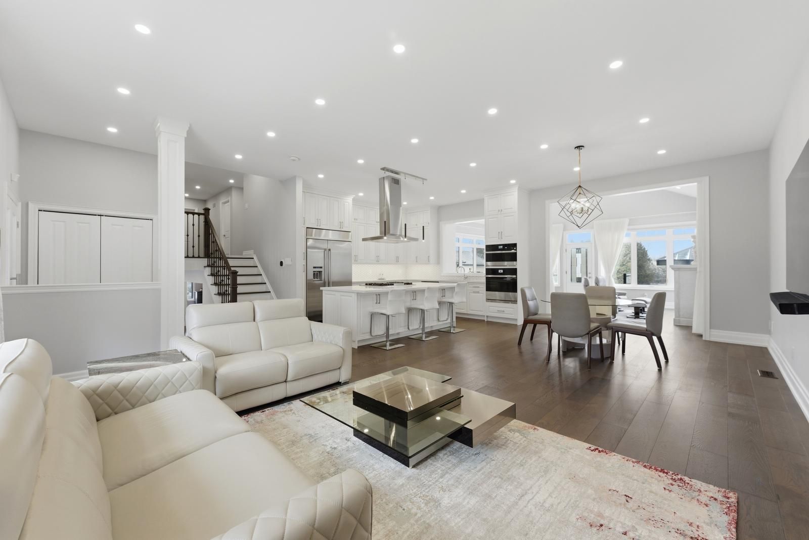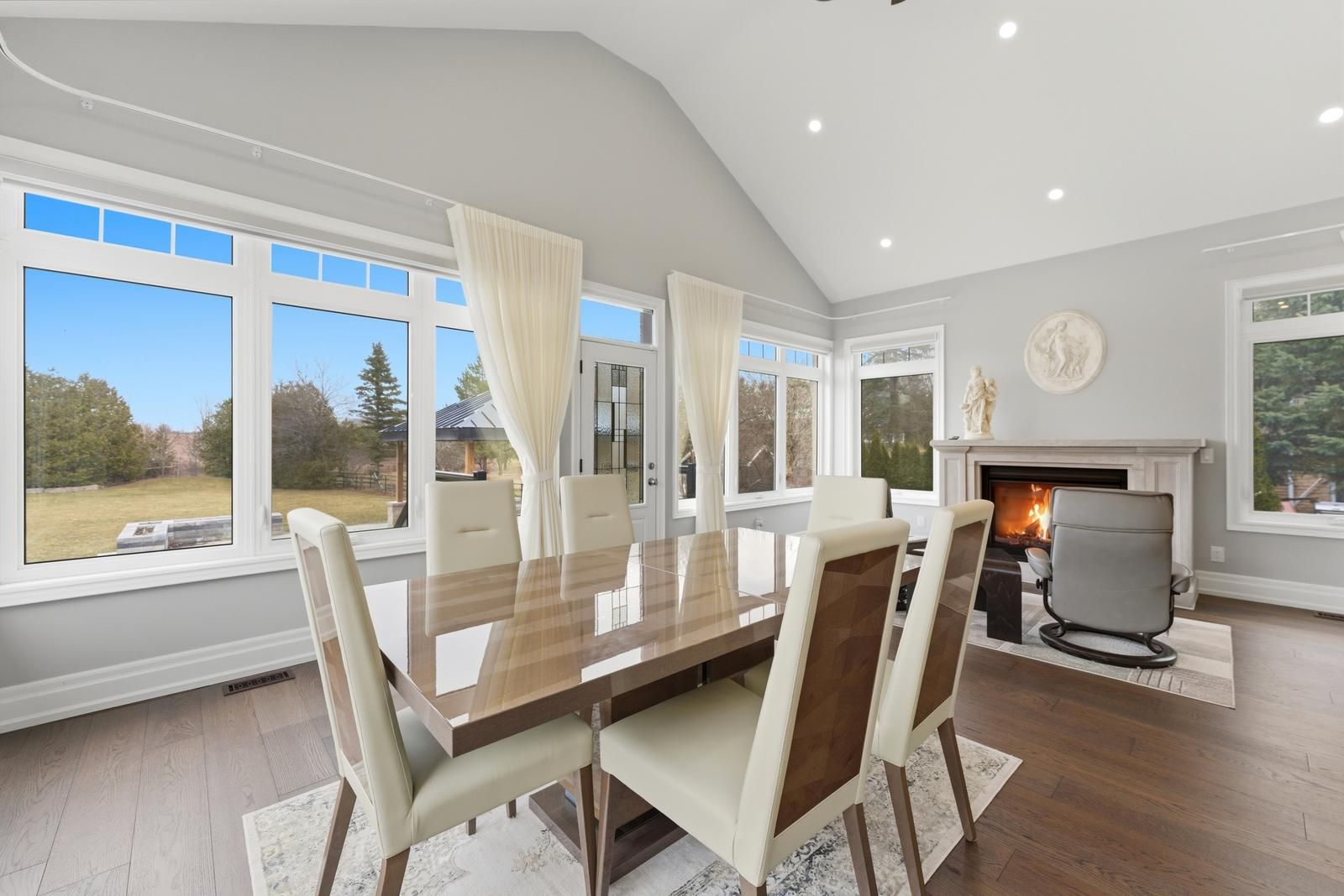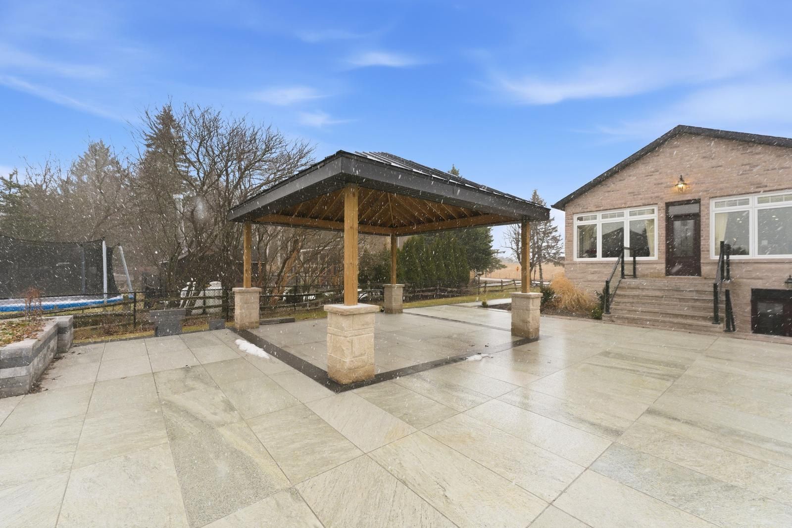 Welcome to 12463 eighth line, an entertainer's dream in prestigious glen williams. Set on 1 acre, this custom-built, 1-year-new home offers over 3500 sq. Ft. Of luxurious living space. Featuring 5 bedrooms and 4 bathrooms, this stunning residence showcases hardwood flooring throughout, natural stone exterior with touches of limestone, and soaring 12-ft ceilings in the main living area. The open-concept main floor is designed for seamless living and entertaining, highlighted by a bright sunroom with a beautiful stone fireplace, backyard views, and a built-in coffee station. The gourmet kitchen features built-in jennair appliances and a large 9' x 4' island overlooking the living and dining areas-perfect for hosting any size gathering. Enjoy outdoor living with a 30' x 40' patio and an 18' x 18' covered gazebo with porcelain tiles, limestone accents, and gas hook-up for an outdoor kitchen. A versatile 20' x 22' detached shop is ideal for a home business, workshop, or storage. Complete with a 4-car garage, ample parking, two laundry rooms with high-end samsung appliances, and smart home capability, this property offers luxury, space, and functionality throughout.