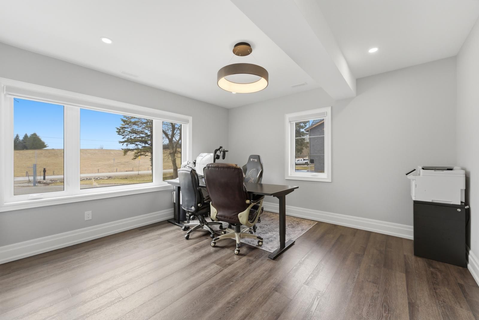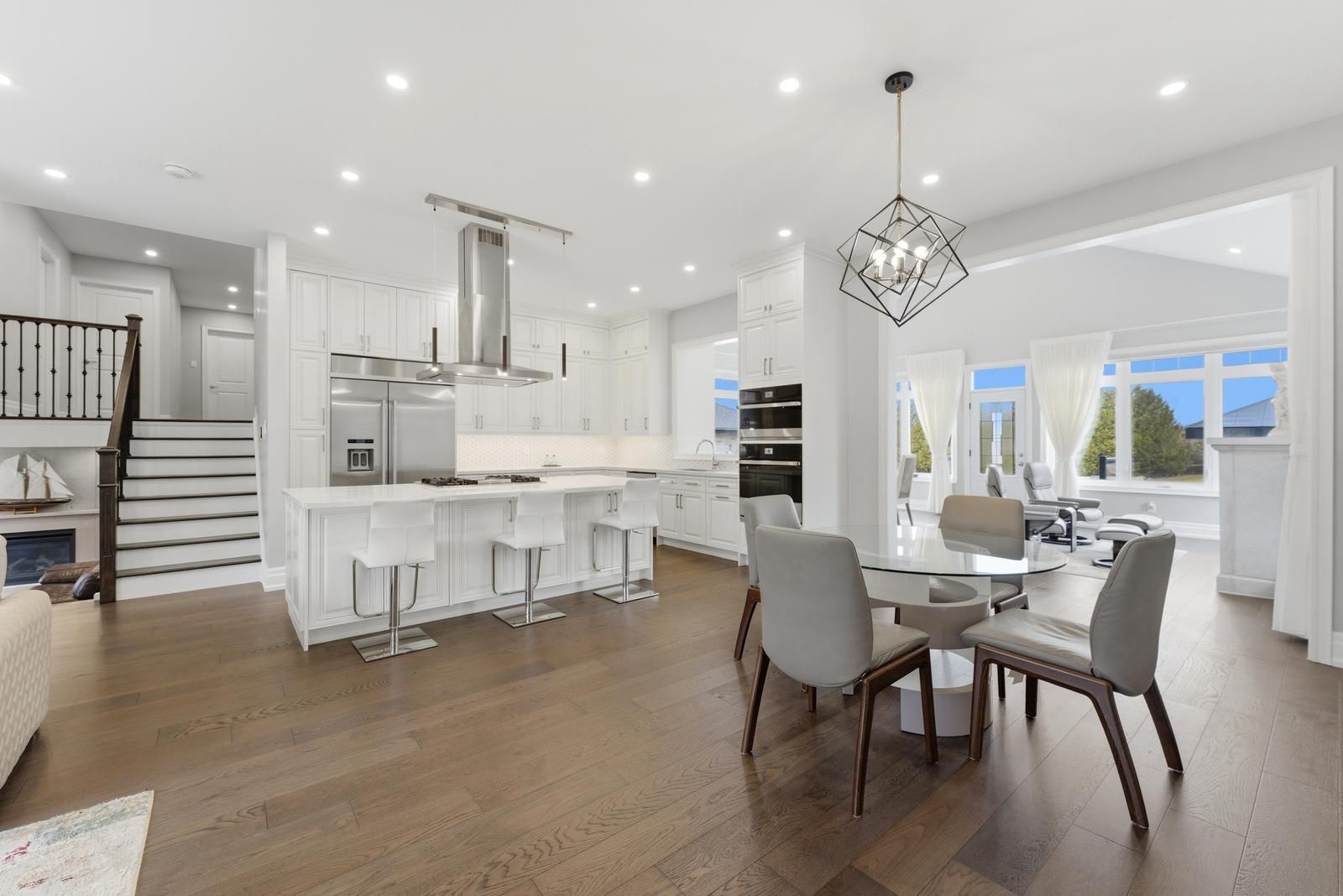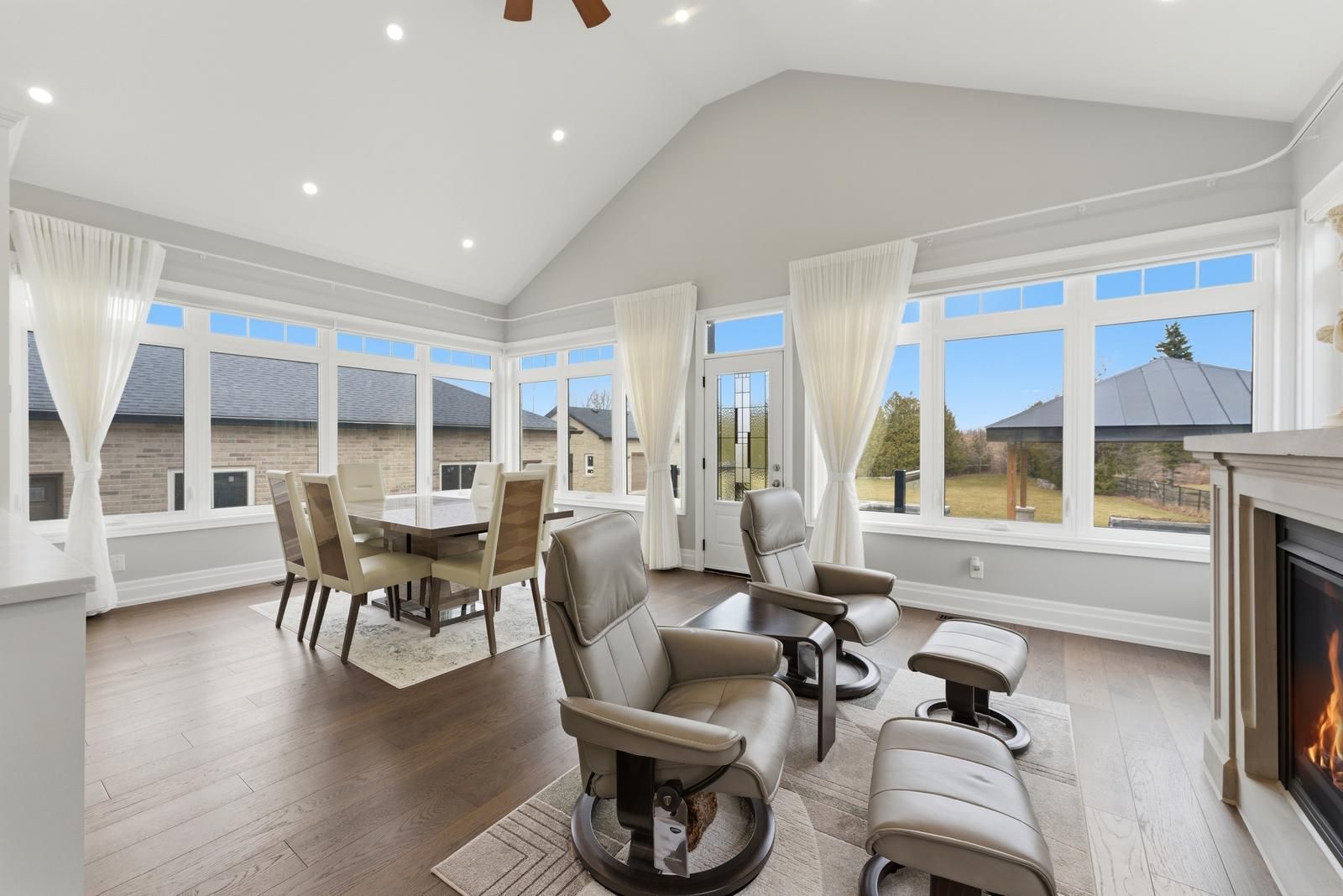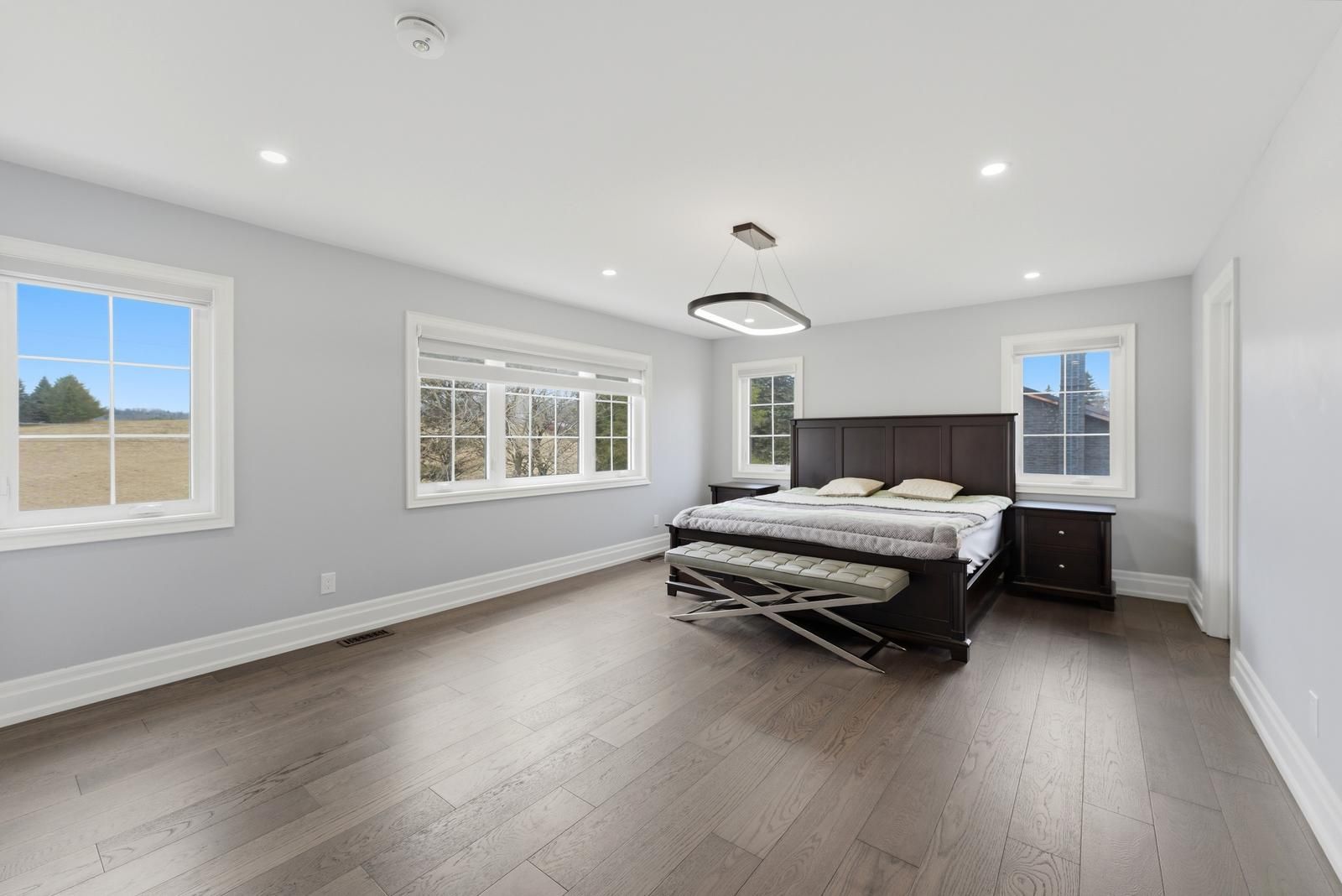 Welcome to 12463 eighth line, an entertainer's dream in prestigious glen williams. Set on 1 acre, this custom-built, 1-year-new home offers over 3500 sq. Ft. Of luxurious living space. Featuring 5 bedrooms and 4 bathrooms, this stunning residence showcases hardwood flooring throughout, natural stone exterior with touches of limestone, and soaring 12-ft ceilings in the main living area. The open-concept main floor is designed for seamless living and entertaining, highlighted by a bright sunroom with a beautiful stone fireplace, backyard views, and a built-in coffee station. The gourmet kitchen features built-in jennair appliances and a large 9' x 4' island overlooking the living and dining areas-perfect for hosting any size gathering. Enjoy outdoor living with a 30' x 40' patio and an 18' x 18' covered gazebo with porcelain tiles, limestone accents, and gas hook-up for an outdoor kitchen. A versatile 20' x 22' detached shop is ideal for a home business, workshop, or storage. Complete with a 4-car garage, ample parking, two laundry rooms with high-end samsung appliances, and smart home capability, this property offers luxury, space, and functionality throughout.