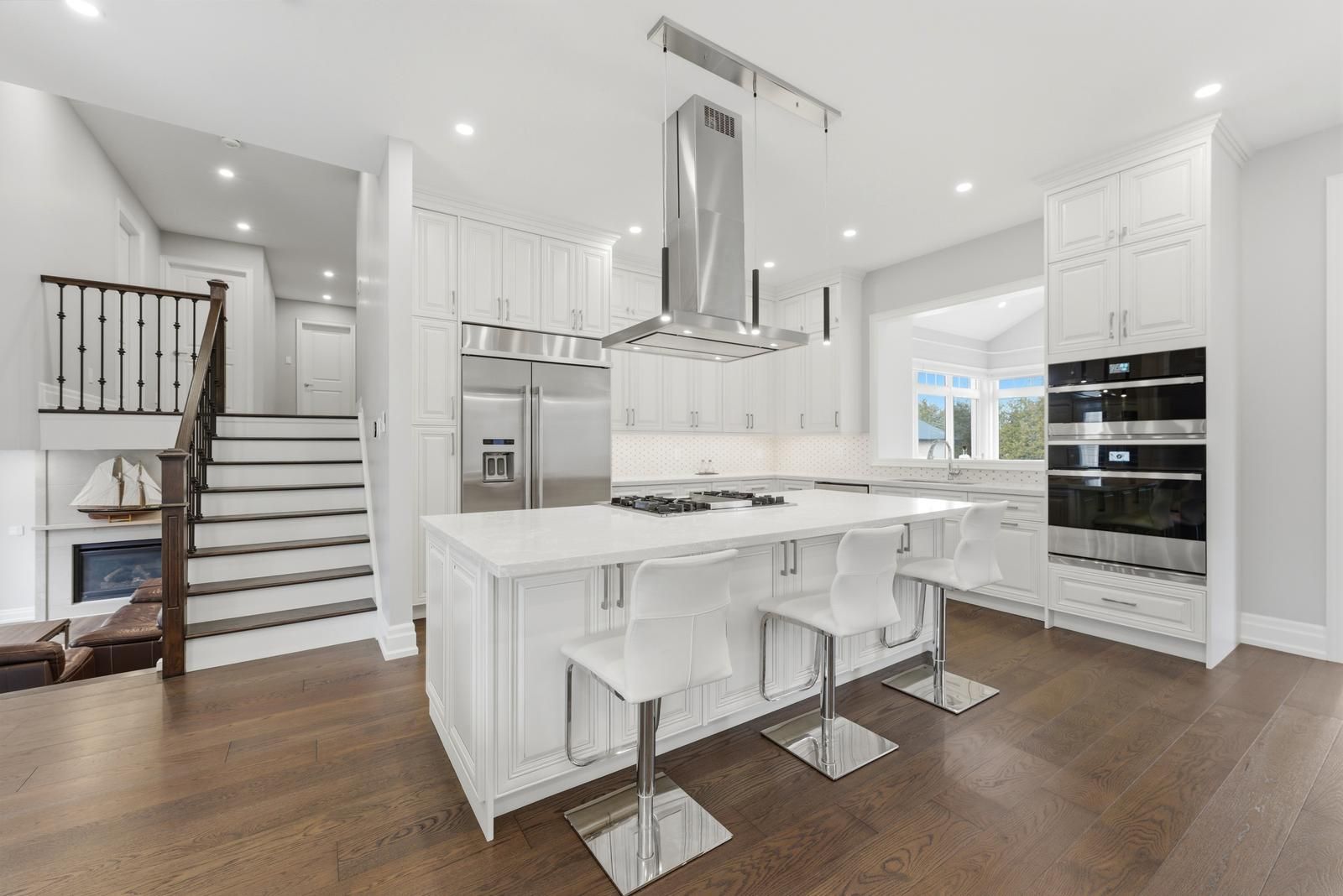 • Gourmet kitchen with built-in appliances and large island for gatherings.
