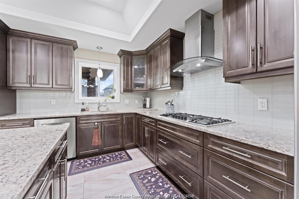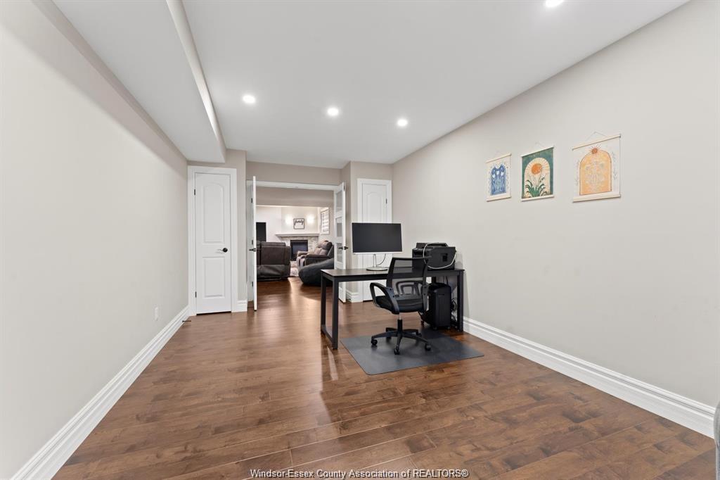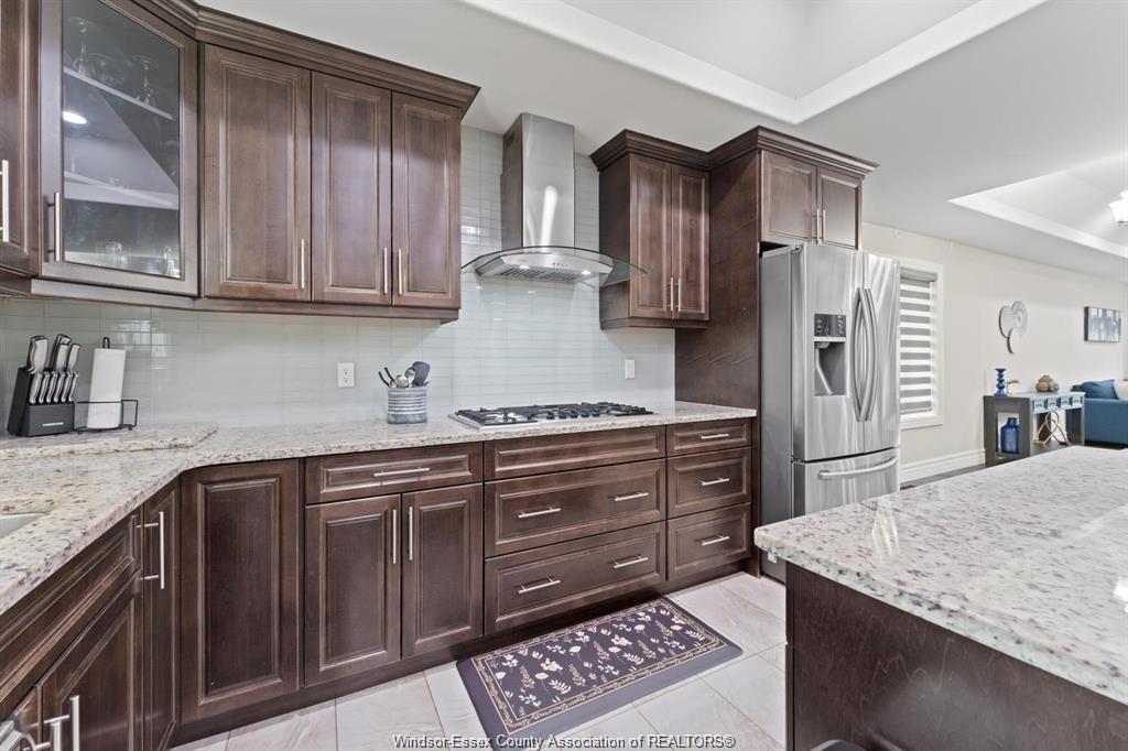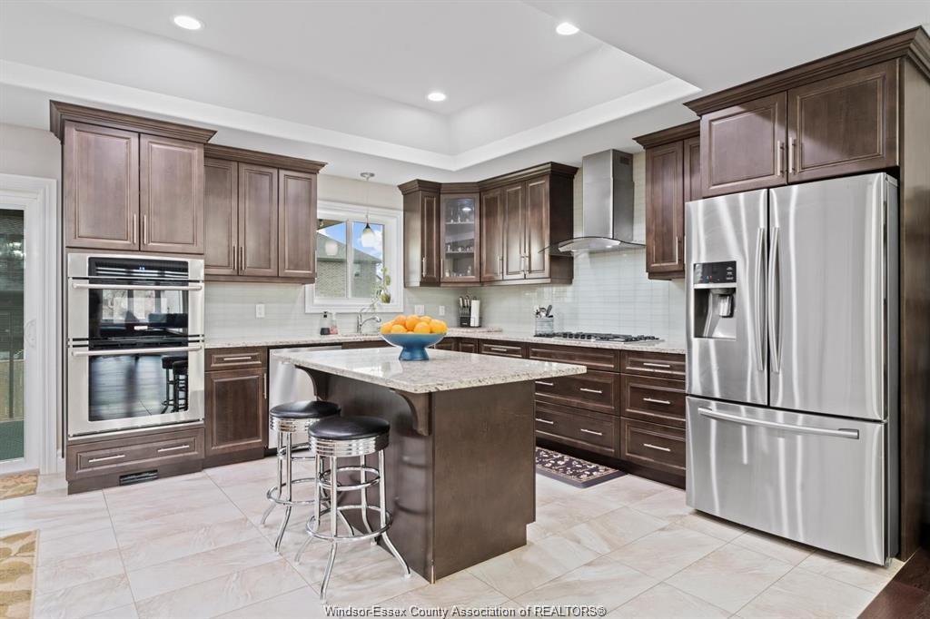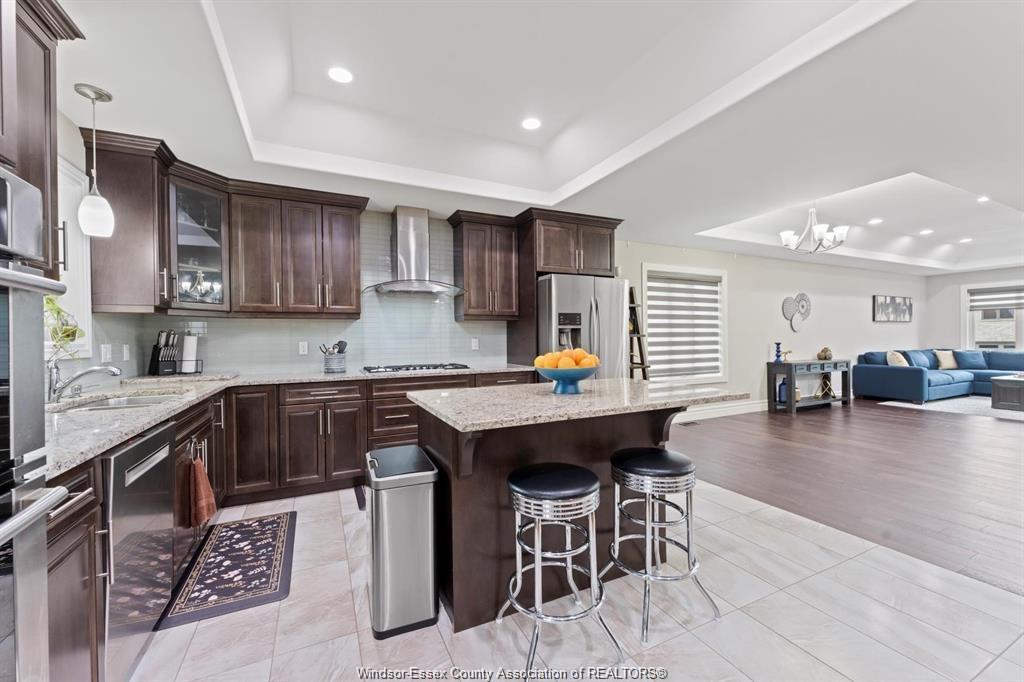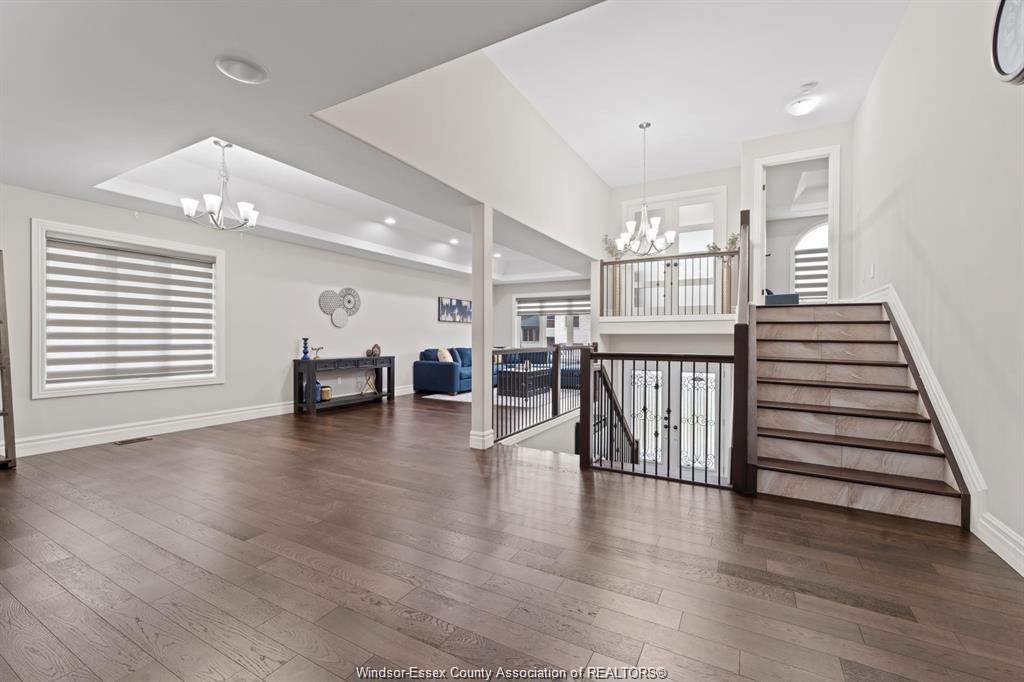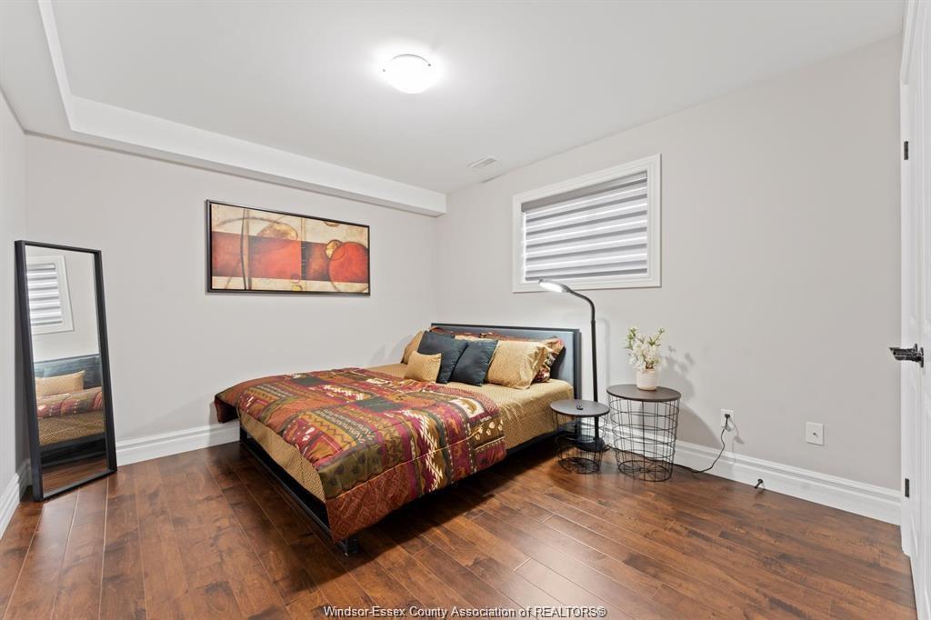 Stunning family home, boasts a large entrance with an open concept living space and features a well appointed kitchen with upgraded stainless appliances and granite tops, offering quality flooring throughout with custom trayed ceilings . Main floor offers two bedrooms plus an attractive super sized bonus room with a gorgeous ensuite, walk-in closet and double frosted doors that open to a balcony overlooking the main floor. Enjoy the fully finished basement having a large area with wet bar open to rec room with attractive stone fireplace for relaxing nights . Complete with large 3pc bath ,2 additional bedrooms ,great laundry area and grade entrance for your convenience. Enjoy the private fenced back yard with covered deck and patio areas. Large garage complete with electric car hook up. Fantastic location in south windsor.