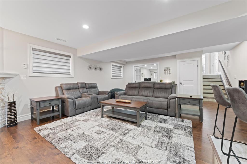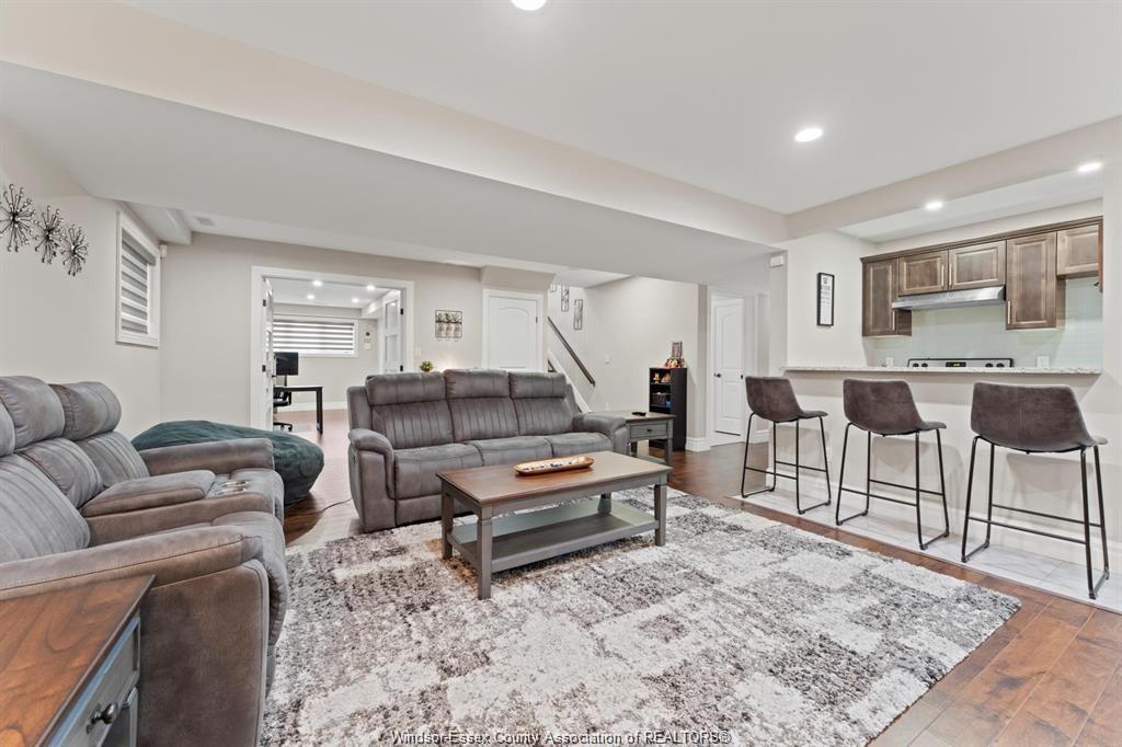• Fully finished basement includes a wet bar and cozy rec room.