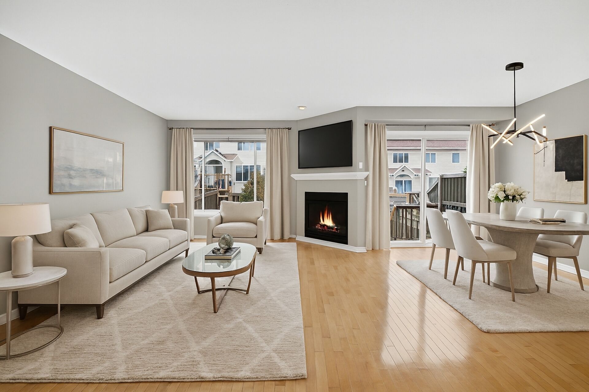 Welcome to 1249 klondike road, a beautifully maintained minto empire freehold townhouse offering 3 spacious bedrooms, 2. 5 bathrooms, and approximately 1,742 sq ft of modern, comfortable living. This home perfectly combines style, functionality, and turnkey convenience. The main level impresses with gleaming maple hardwood floors, a cozy gas fireplace, and a bright open-concept living and dining area - perfect for family gatherings and entertaining. Upstairs, the generous principal suite features a walk-in closet and a luxurious ensuite with a separate shower and soaker tub. Two additional well-sized bedrooms and a full bathroom complete the second floor. The fully finished lower level offers a cozy family room plus laundry space - ideal for movie nights, play, or a flexible home office. Major systems have been recently maintained, including electrical and plumbing, so you can move in worry-free. Step outside to your private, fully-fenced backyard, an outdoor oasis with a wooden deck topped by a pergola - perfect for alfresco dining - and built-in raised garden planters for gardening enthusiasts. Location is key: just minutes from kanata's tech park, dnd, top-rated schools, parks, shopping, public transit, and with easy highway access for commuting. This is a turnkey, move-in ready home in a highly sought-after morgan's grant neighborhood. Stylish, functional, and peaceful - it's the perfect choice for families or professionals looking for a ready-to-enjoy lifestyle in kanata.