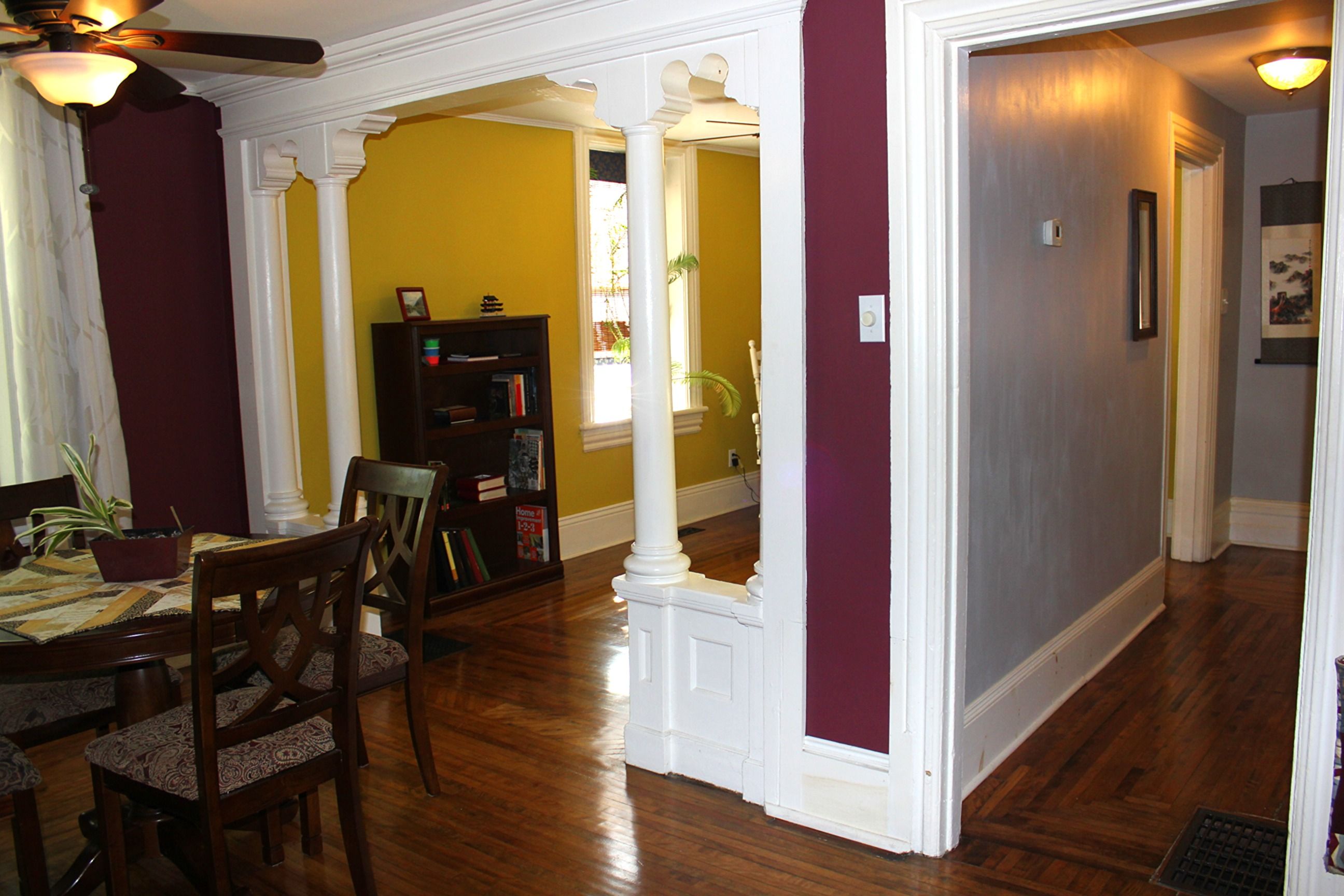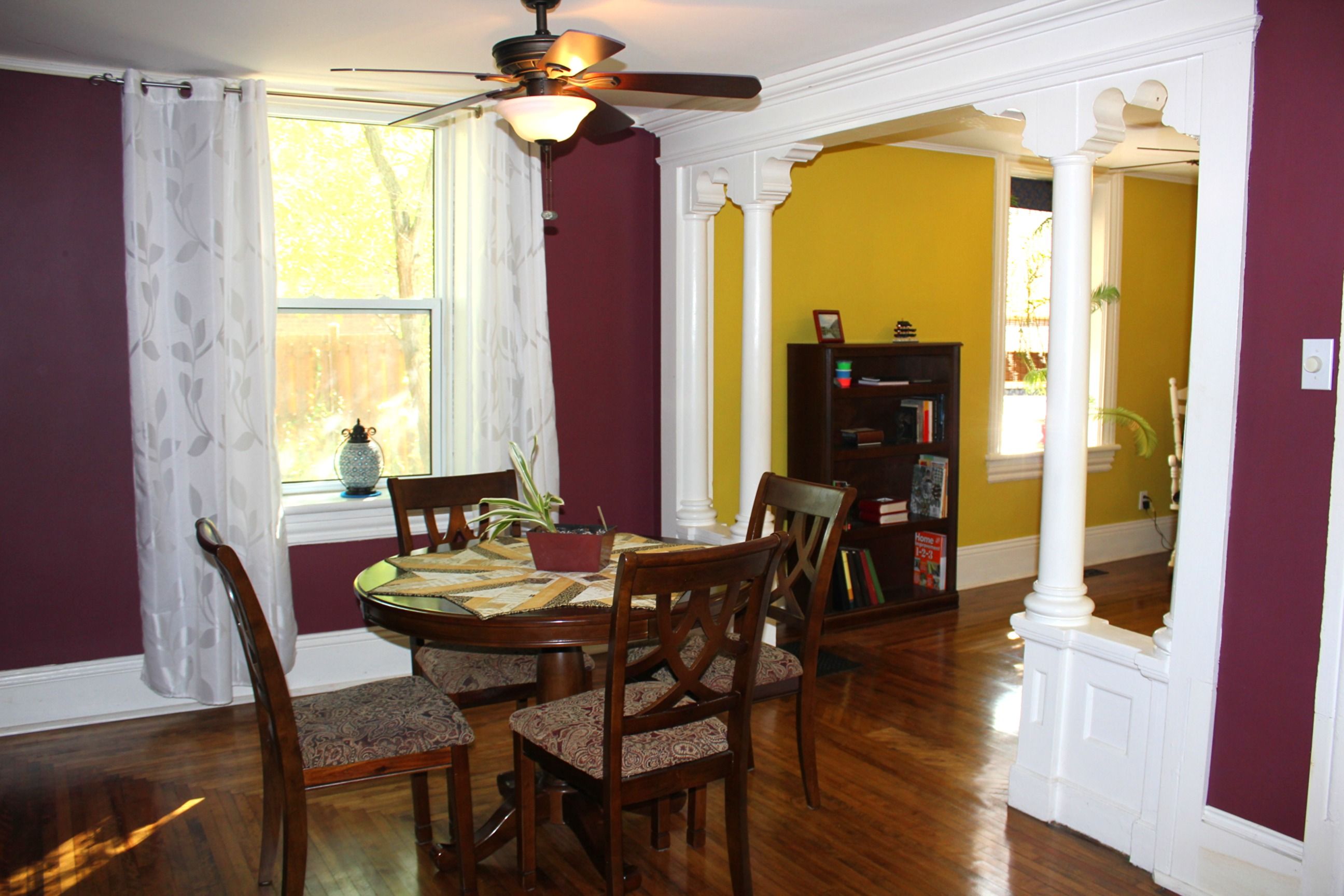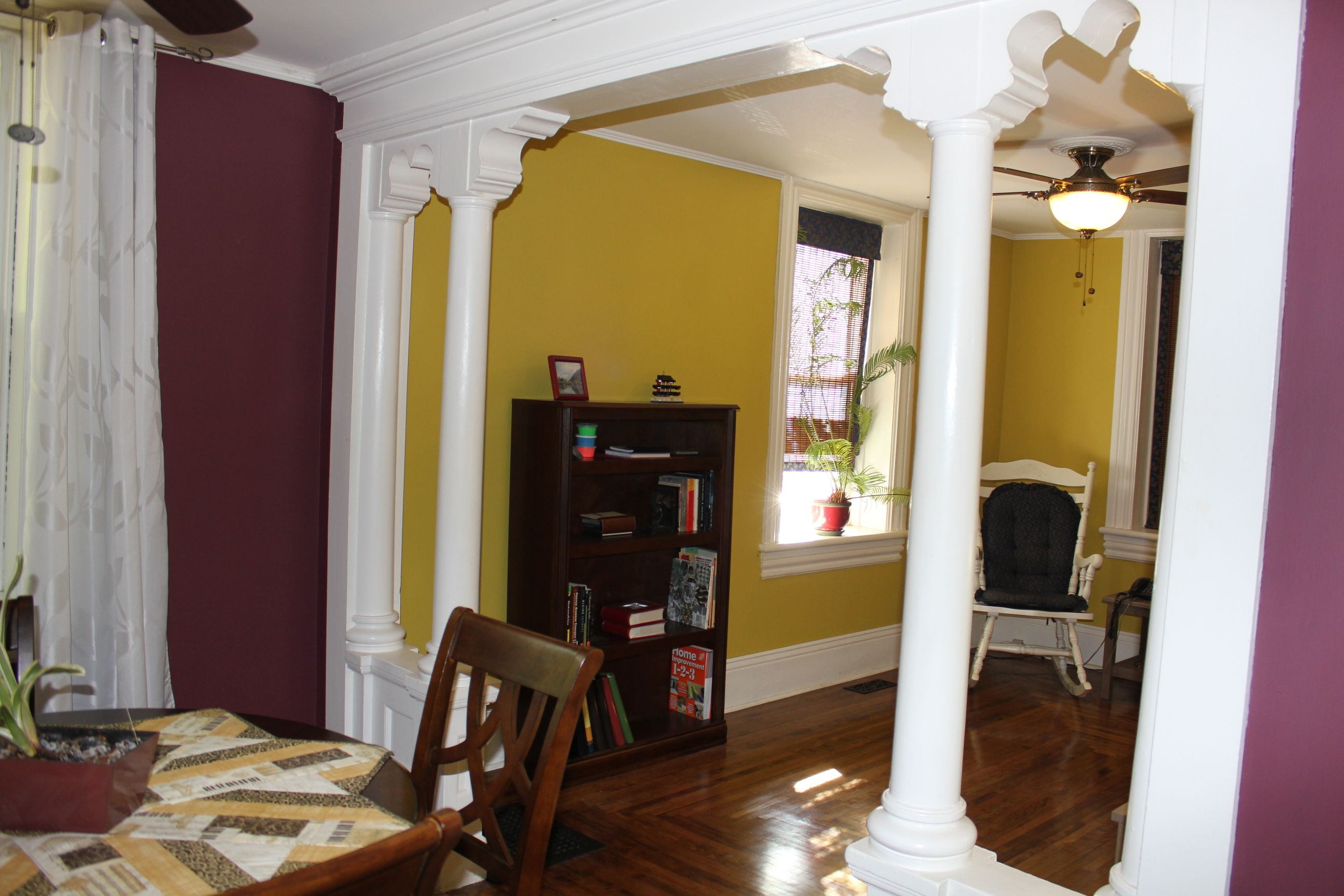 This well-maintained, two-story home is filled with charm and history. Enjoy downtown living with all its amenities in this affordable family home. As you enter, you're greeted by a generous, enclosed front porch, perfect for removing coats and boots. The bright living room features a large window and ornate details, including a division between the living room and dining room. The home boasts original and beautifully inlaid hardwood floors throughout both levels. The sunny kitchen includes laundry facilities and a door leading to the back porch and backyard. Upstairs, a refinished and stunning staircase leads to the second level, which offers three bedrooms with ample windows and a four-piece bathroom. The private lot is fully fenced and includes a detached garage, as well as a quaint side and backyard.