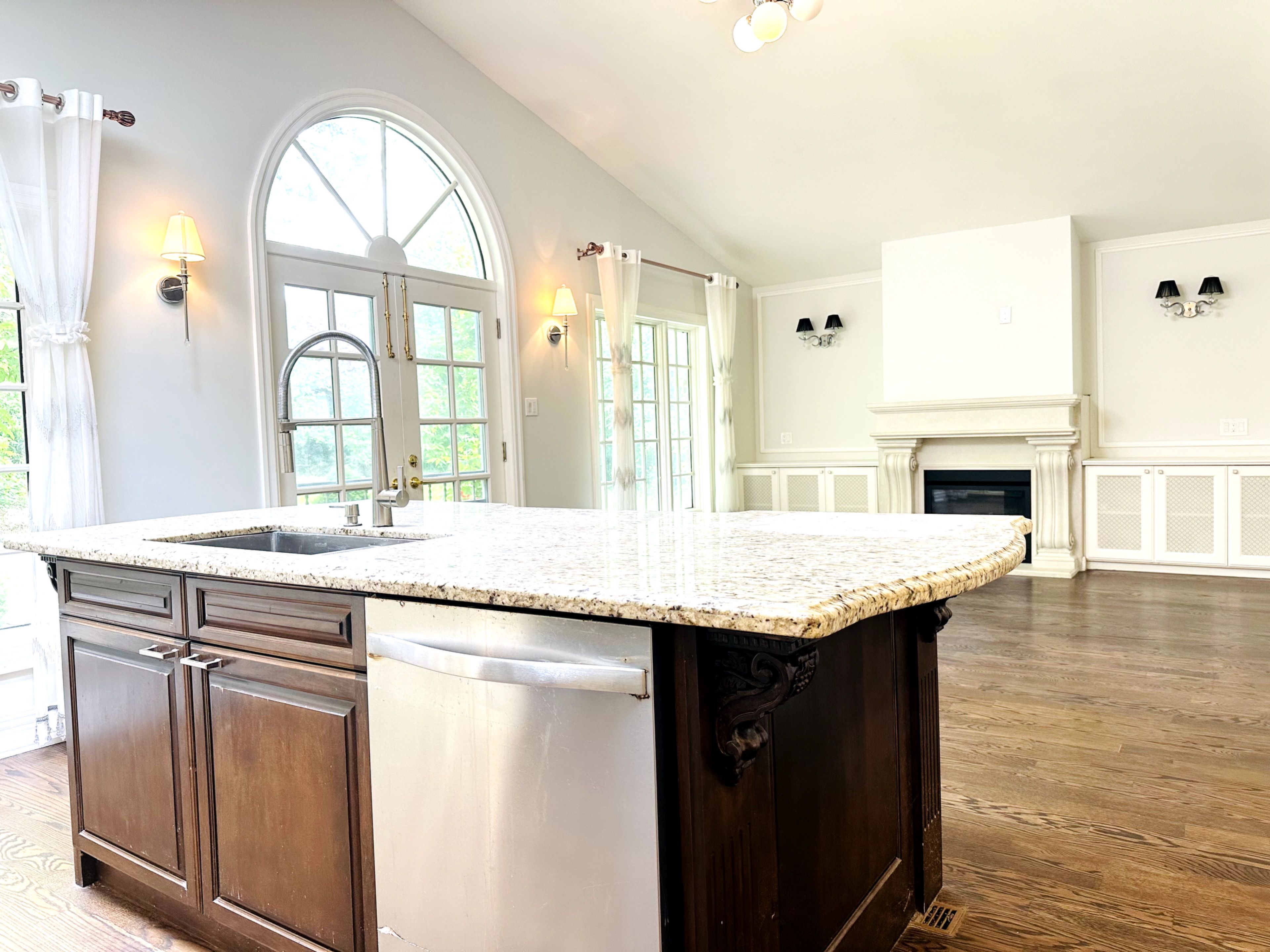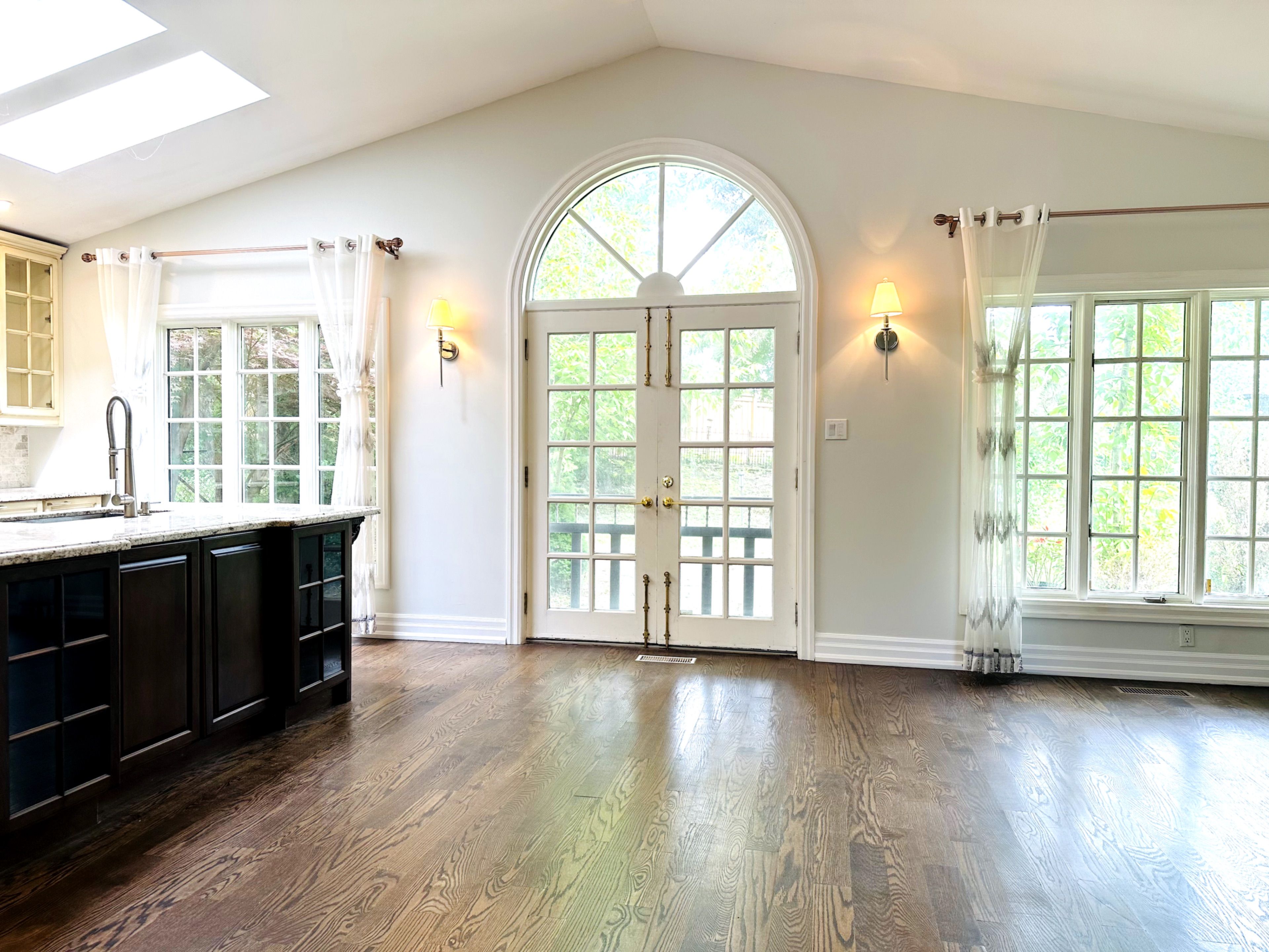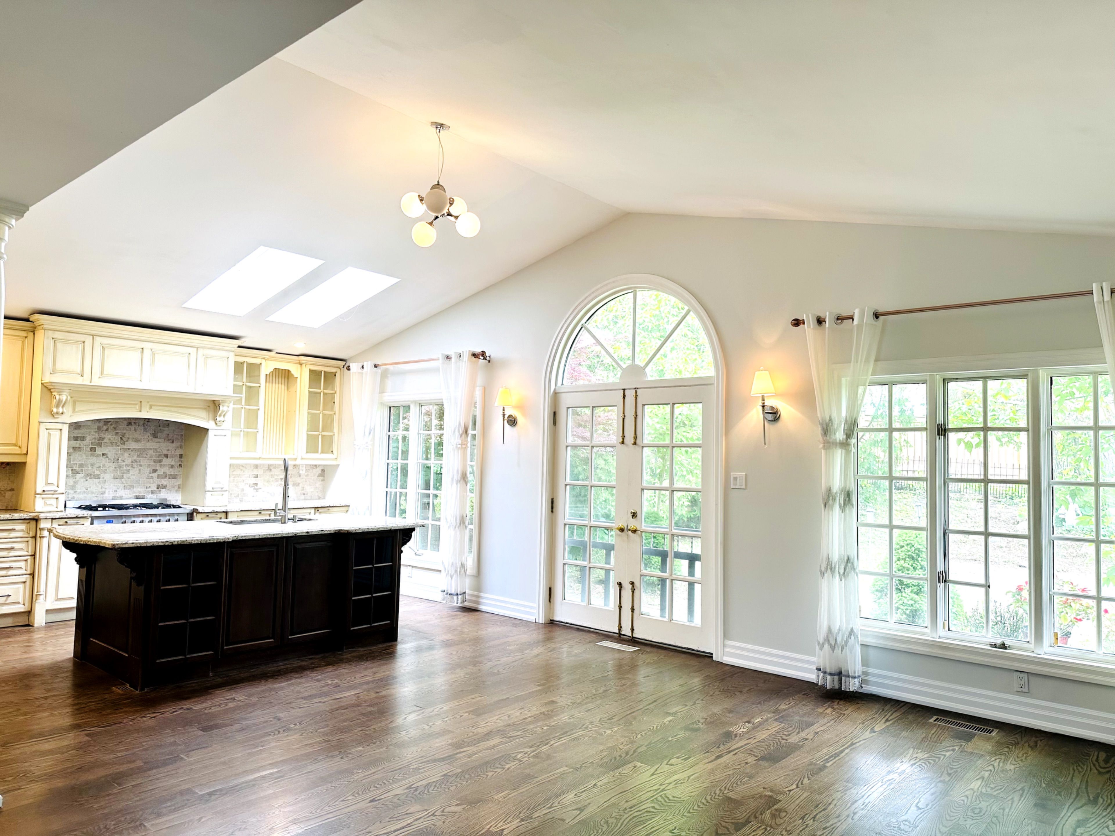 • Bright kitchen and family room featuring cathedral ceiling and skylights.