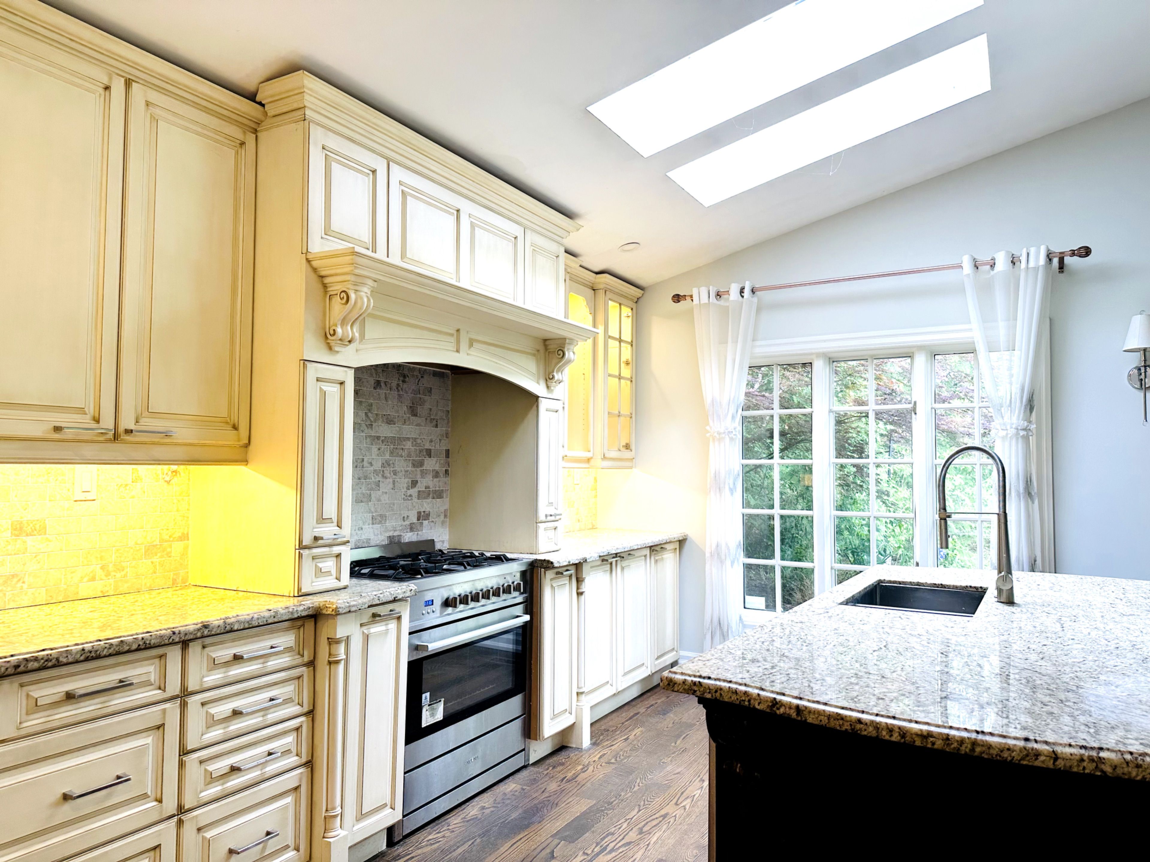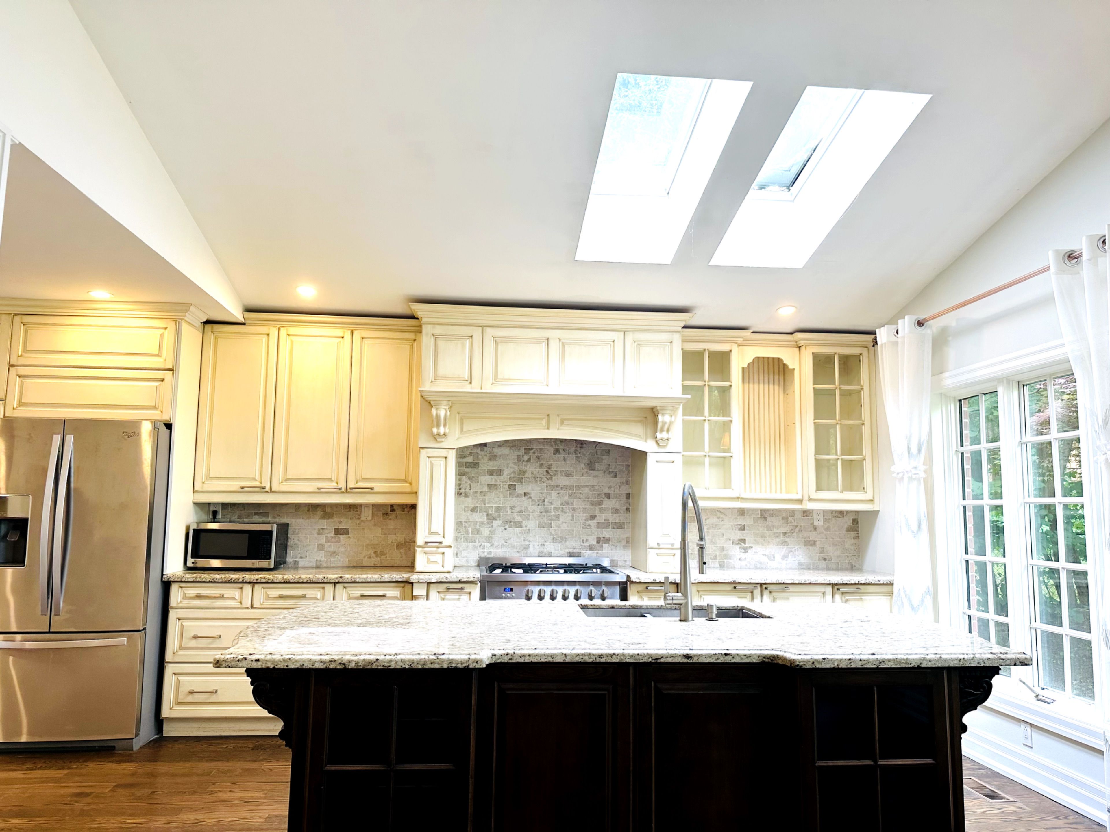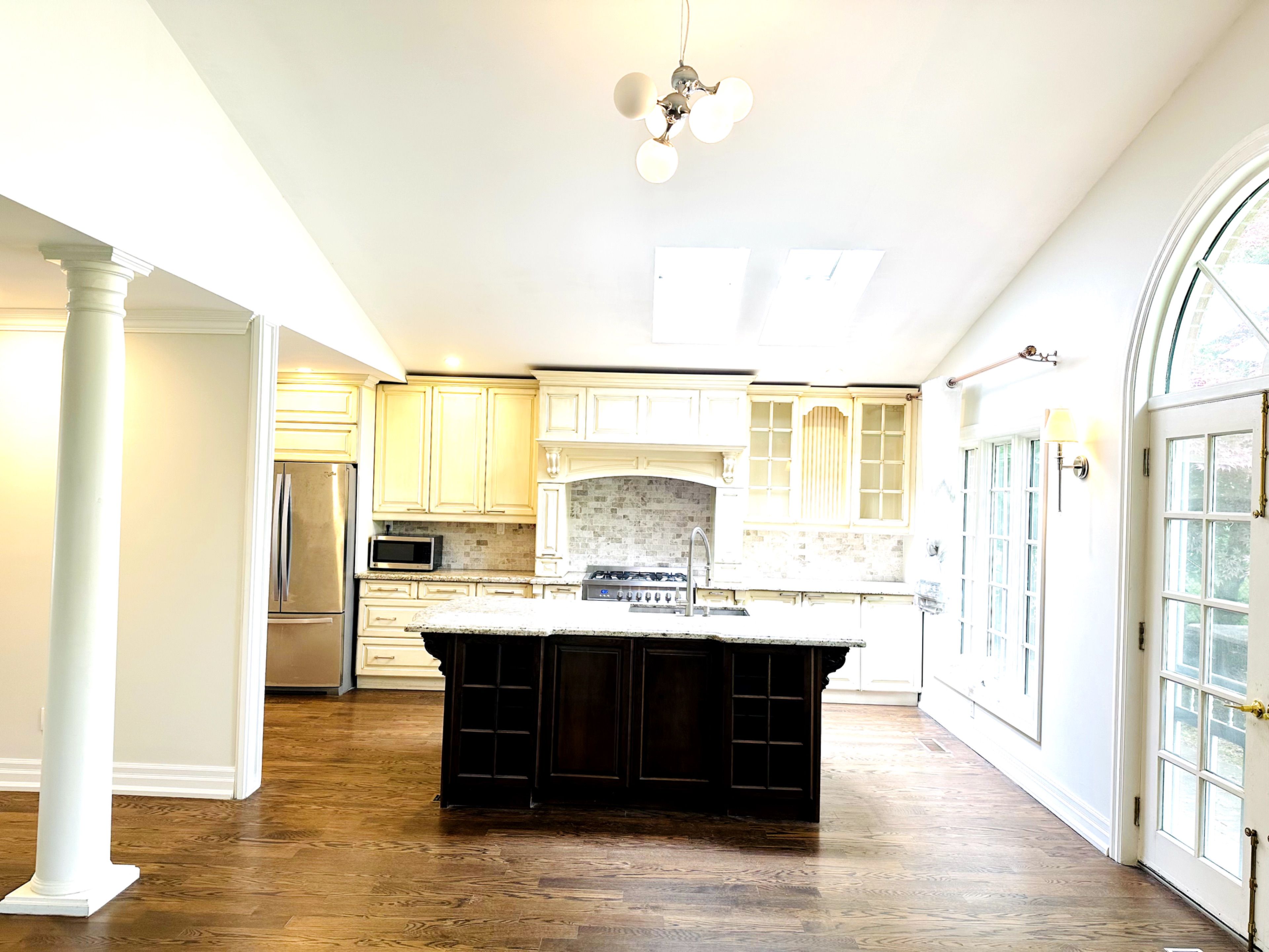 • Bright kitchen and family room featuring cathedral ceiling and skylights.