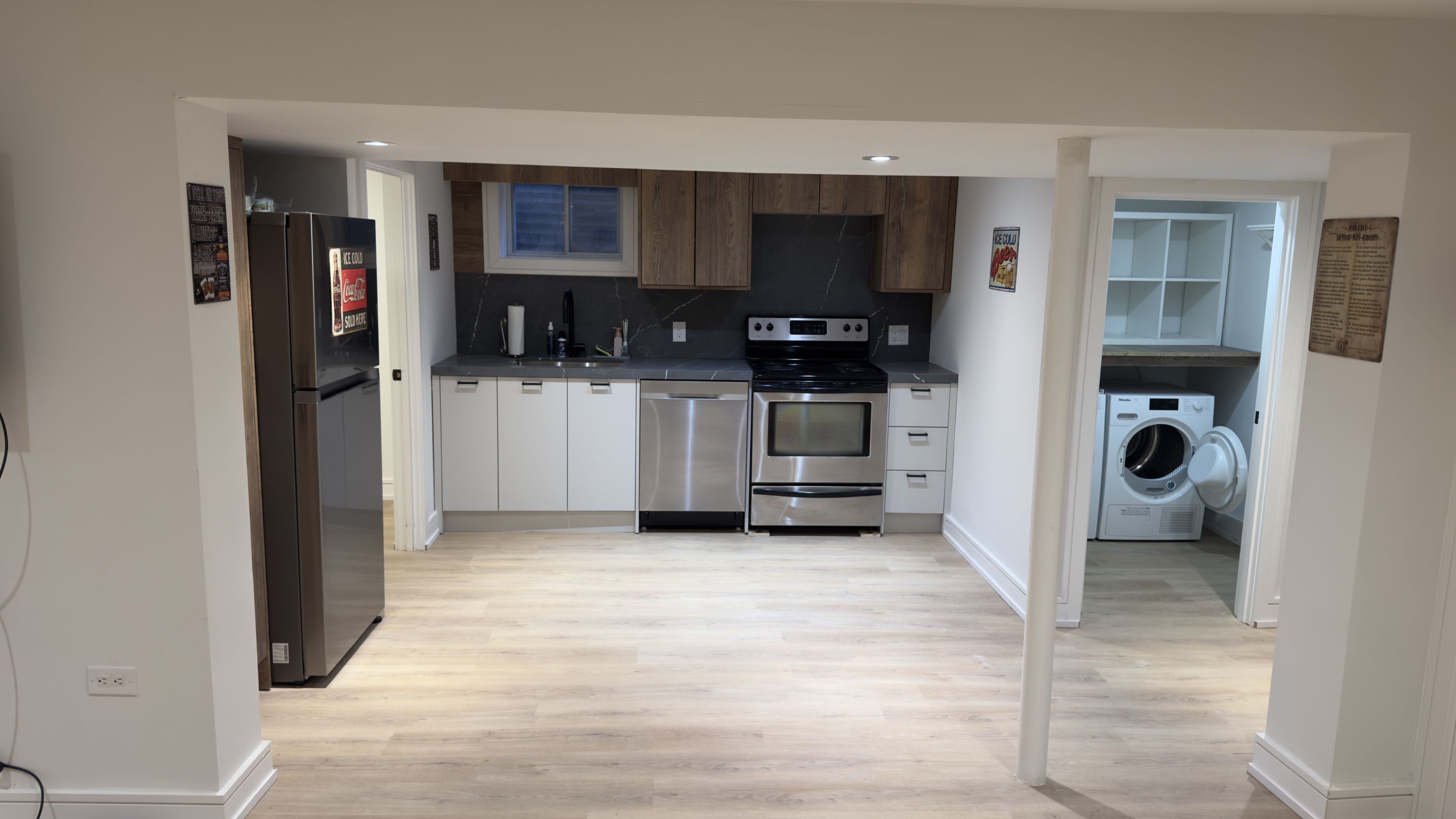 Bright and spacious 1-bedroom basement apartment featuring a full 3-piece washroom and a modern kitchen with stove, dishwasher, fridge, and sink. This private unit offers plenty of natural light, a comfortable layout, and in-unit washer and dryer. Conveniently located in a prestigious neighbourhood, with easy access to local amenities, the future subway station, and nearby golf club. A must-see!