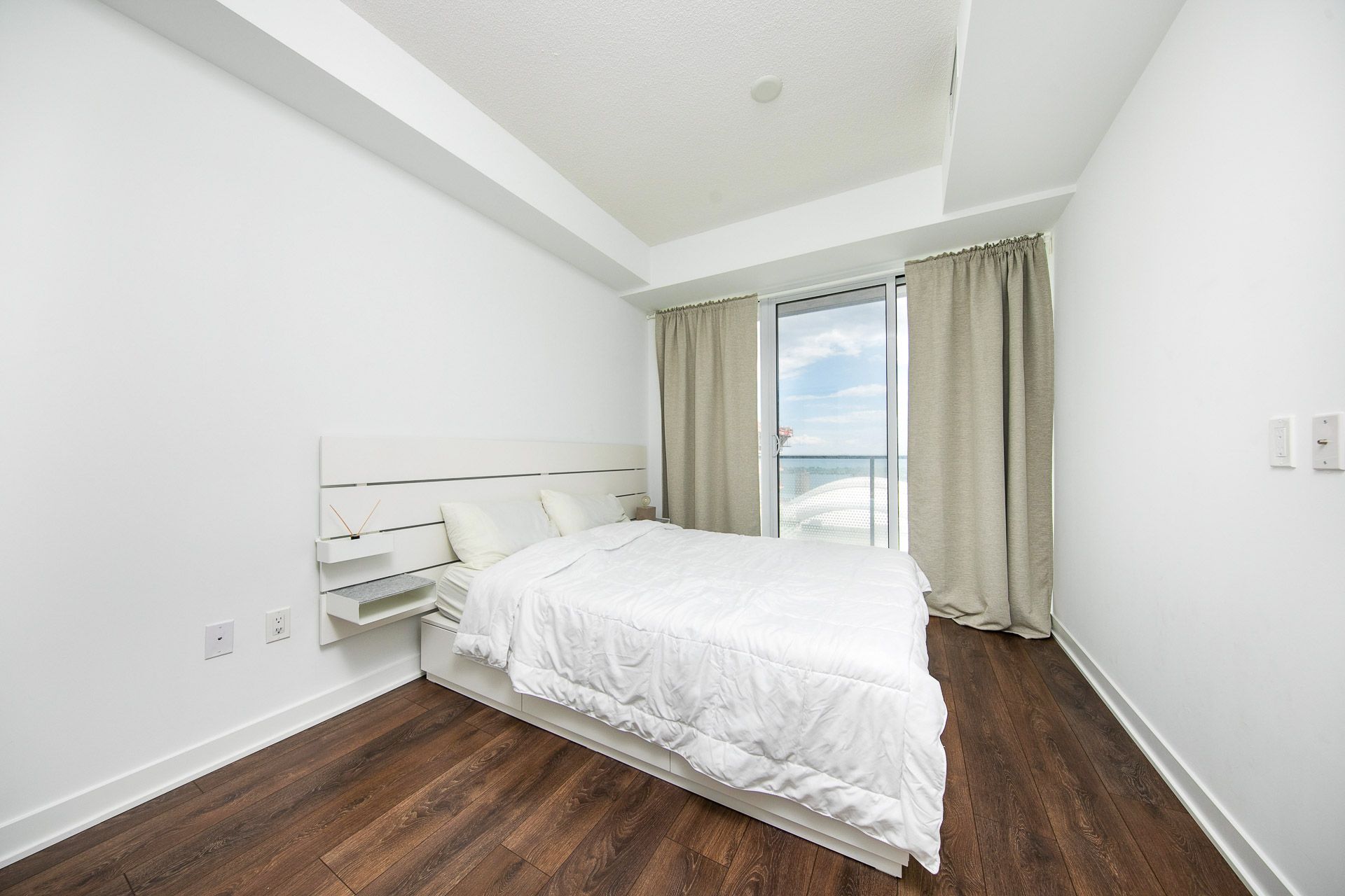 41st floor, one bed + spacious den, which can be used as a home office or even as a second bedroom. Stunning city & lake views. Floor-to-ceiling windows. Laminate flooring throughout. The kitchen is equipped with modern built-in appliances and quartz countertops. The primary bedroom has a built-in bed frame, large windows, and a large closet. Steps to fine dining, tiff, theatres, the path, subway station, financial district, rogers centre & cn tower. 24-hr king streetcar at doorstep. Great amenities: concierge, gym, indoor pool, rooftop garden, visitor parking, etc. Free access to king blue hotel amenities. No pets & no smokers. *unit will be professionally cleaned*