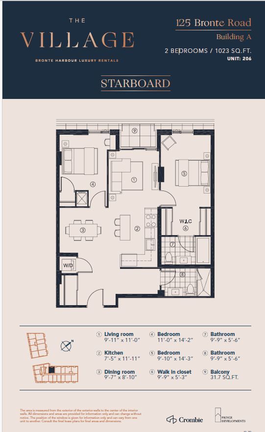 *bonus*1 month free* spacious "the starboard model" is 2 bedroom, 2 full bathrooms and open concept kitchen. Master with large walk-in closet (9. 9x5. 3ft) and overall spacious 1023sqft of luxury living. Gorgeous suite in a wonderful location - steps to lake & marina! This pet friendly, unique luxury rental, with 5-star hotel inspired amenities is nestled in oakville's most vibrant and sought after neighbourhood, bronte harbour! This suite is bright, modern & sleek in design with floor to ceiling windows thruout. Features an upscale modern kitchen with island, contemporary cabinets & gorgeous counters, plus stainless steel appliances. Gorgeous wide-plank flooring throughout & convenient full size -in-suite laundry. Note: some model suite photos attached to aid in visualization of finishes which are the same for all units. Room size and floor plans vary with individual unit.* dogs welcome*