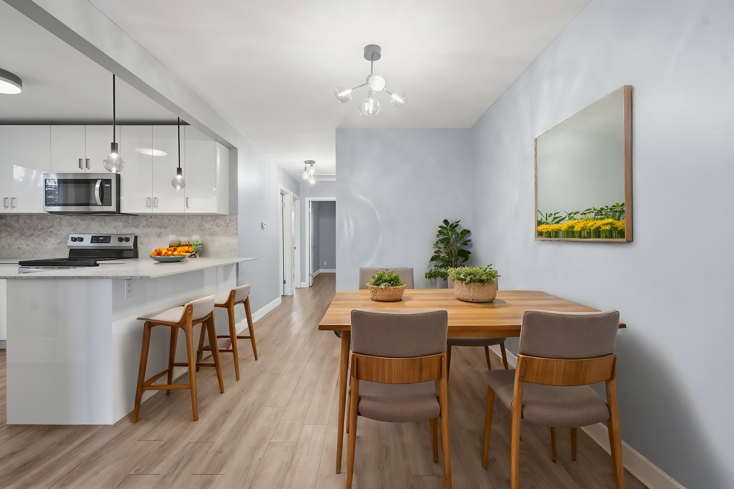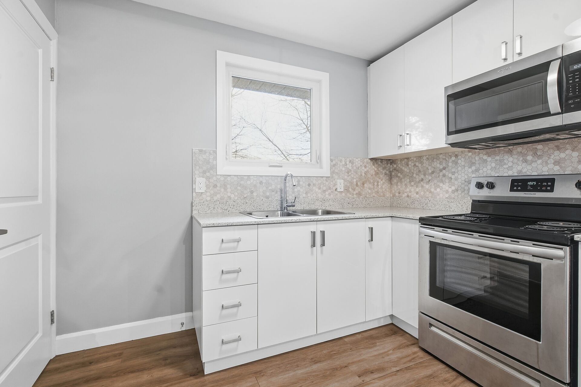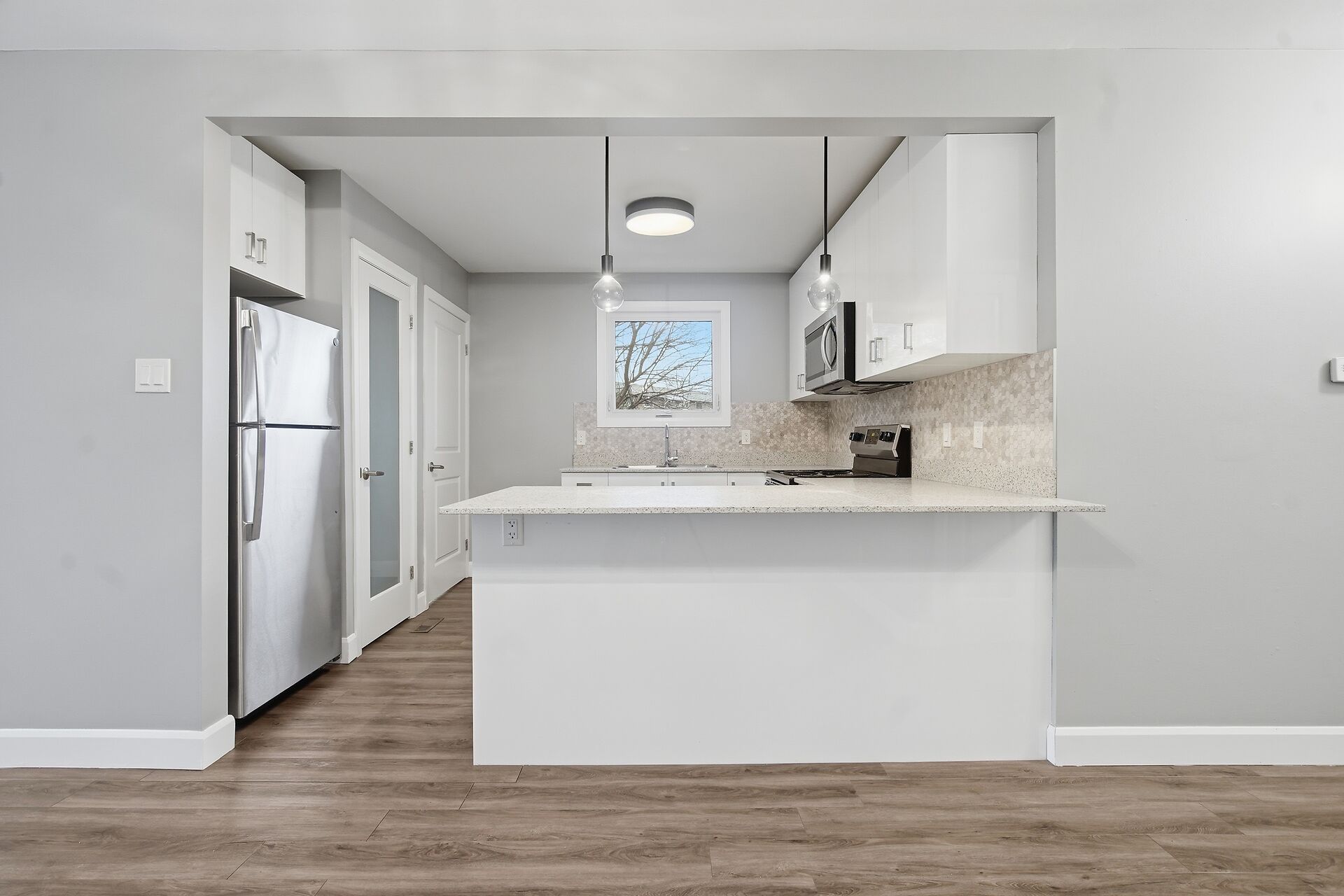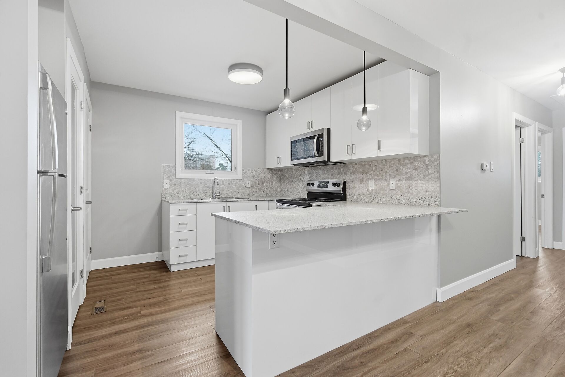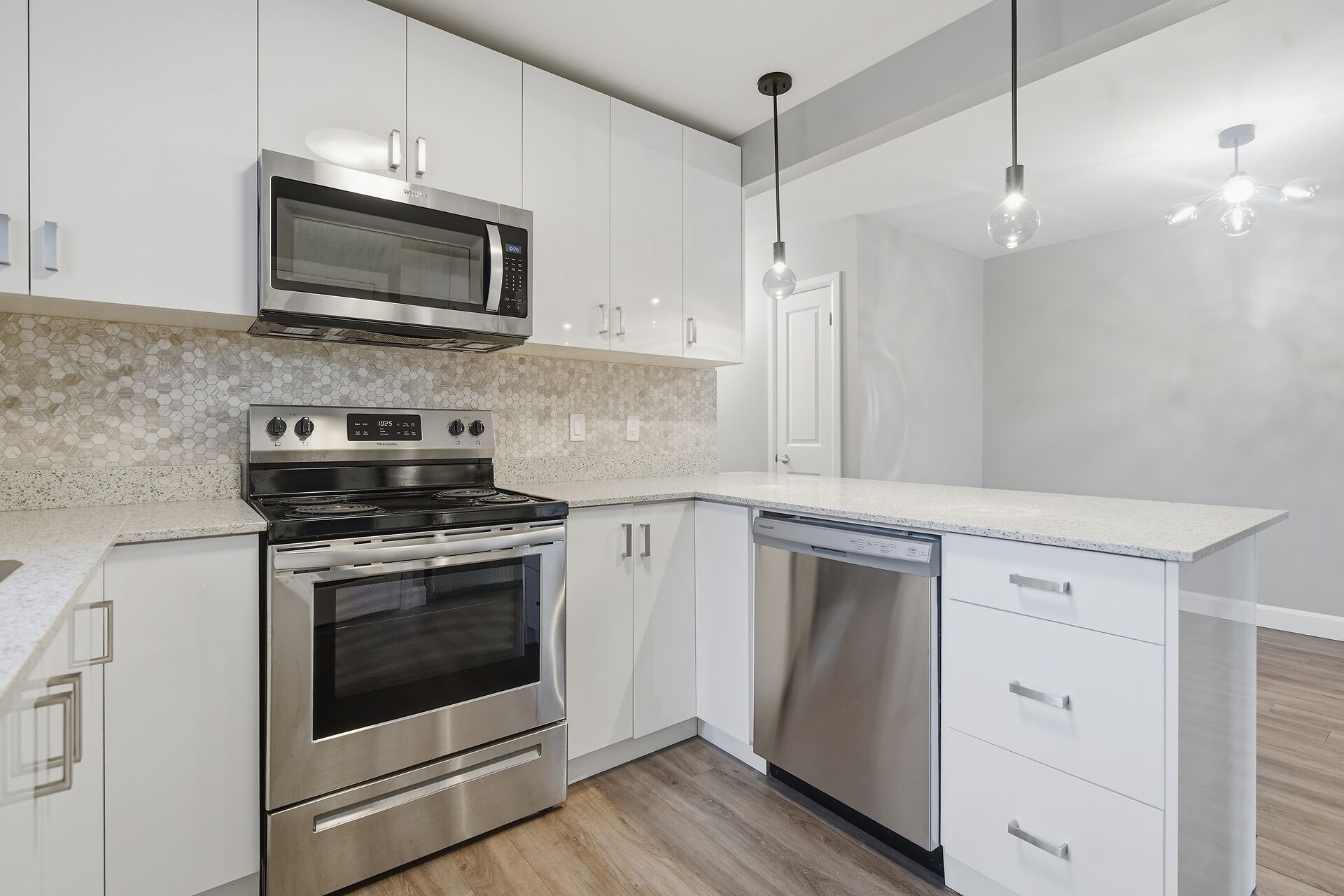 • Stylish kitchen with hard-surface countertops and included appliances.