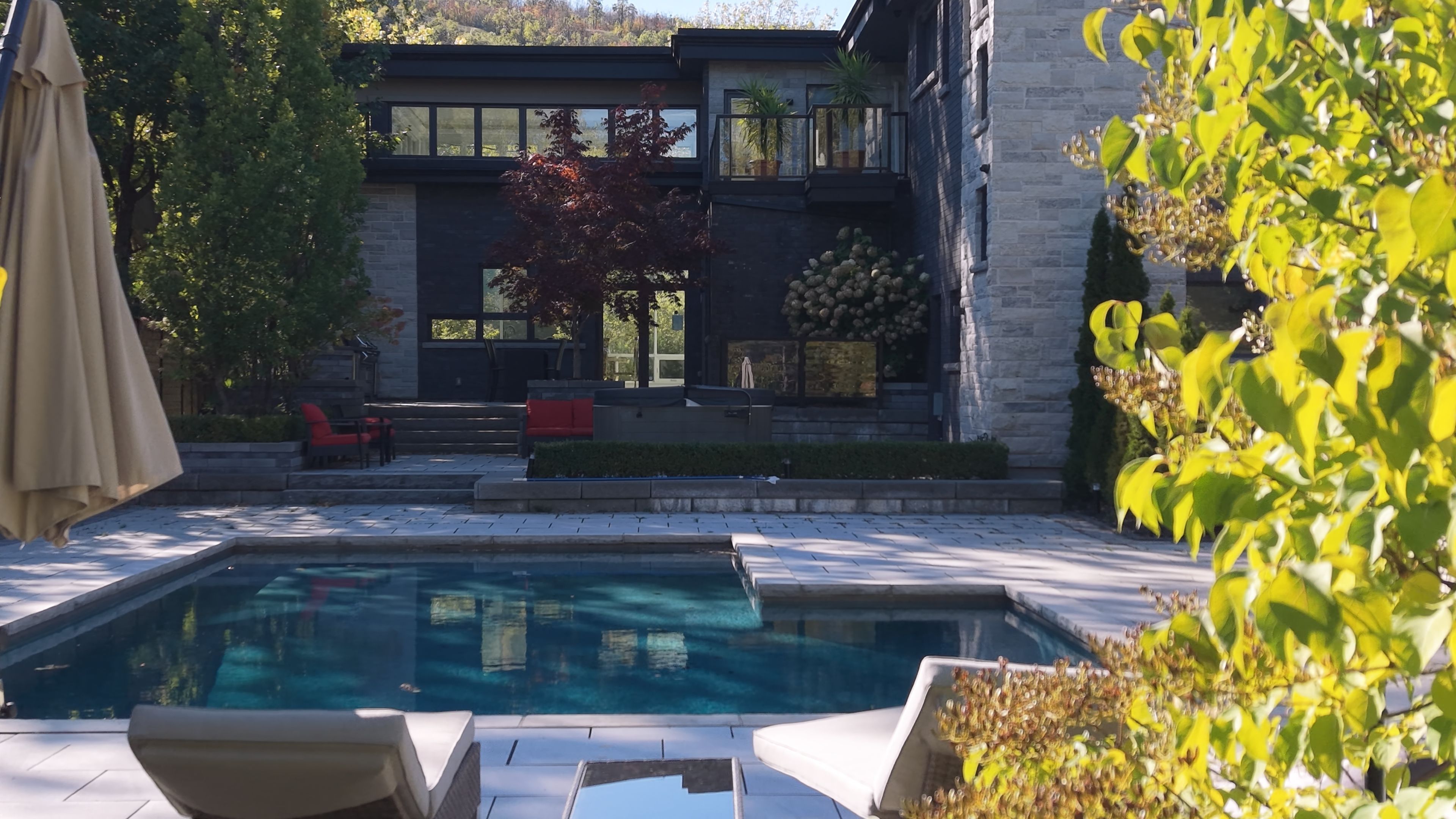 Subtype DetachedIndoor Features Built-In Oven, Sauna, Carpet FreeOutdoor Features Hot Tub, Landscaped, Built-In-BBQ, Lighting, Patio, Landscape Lighting, PrivacyOwnership FreeholdViews Clear, Hills, PoolWaterfront NoneBasement FullFoundation ConcreteHeating / Cooling Forced AirHeating Fuel GasSewer Sewer