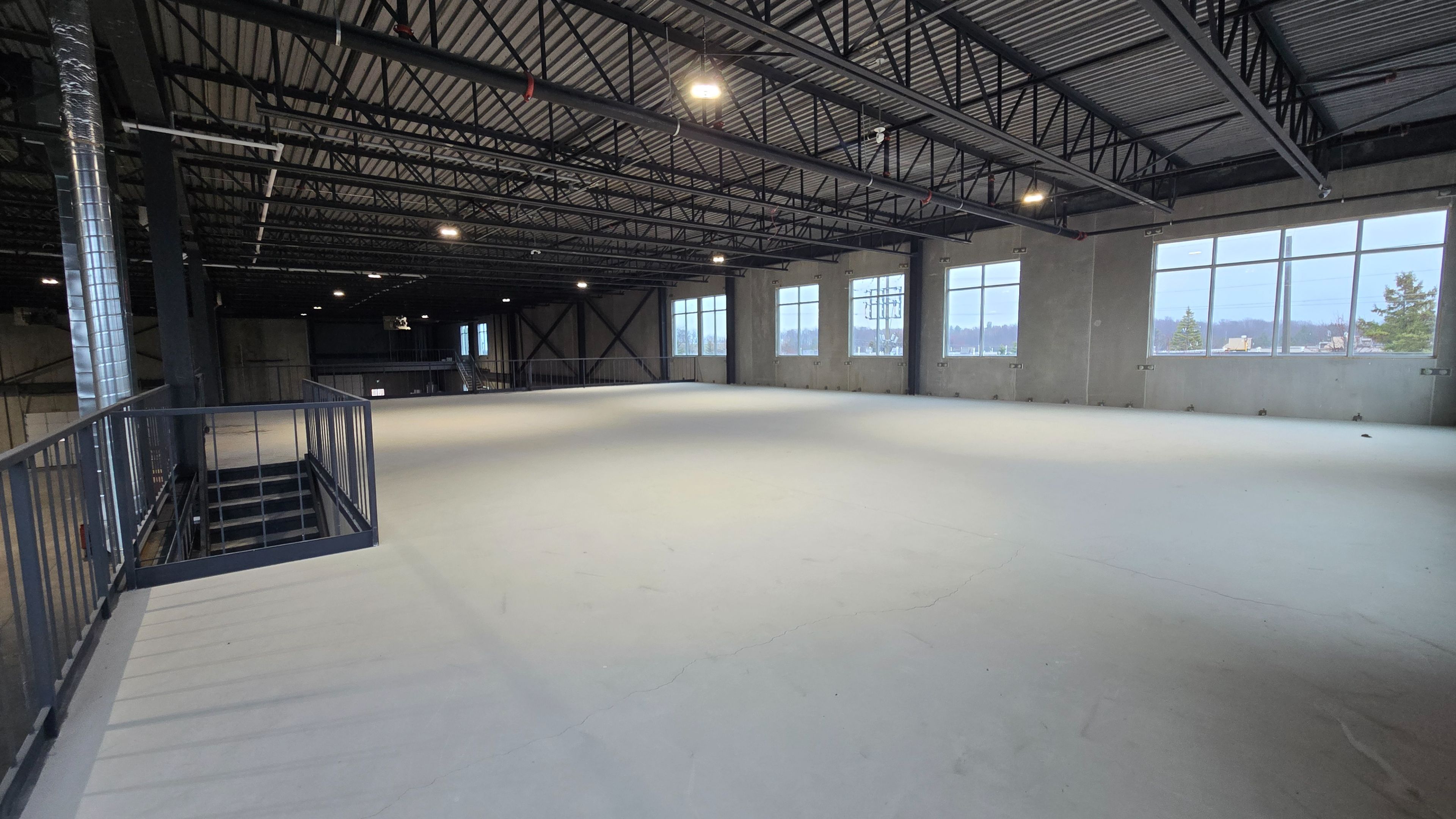 24,913 sq. Ft. Within aurora's commercial/industrial district featuring 28' ceiling height. 200 amp service, 2 drive-in & 3 truck level shipping doors including mechanical dock levelers. Partially finished office space 2,714 sq. Ft. + two bathrooms. E2 zone accommodates a wide range of uses including warehouse, recreation centre, place of worship & self storage facility. Recreational uses subject to a $2 per sq. Ft. Surcharge. Rear mezzanine, (1,418 sq. Ft.) space included "rent free" for the 1st 5 years of the lease, pay only t. M. I. $5. 88/sq. Ft..
