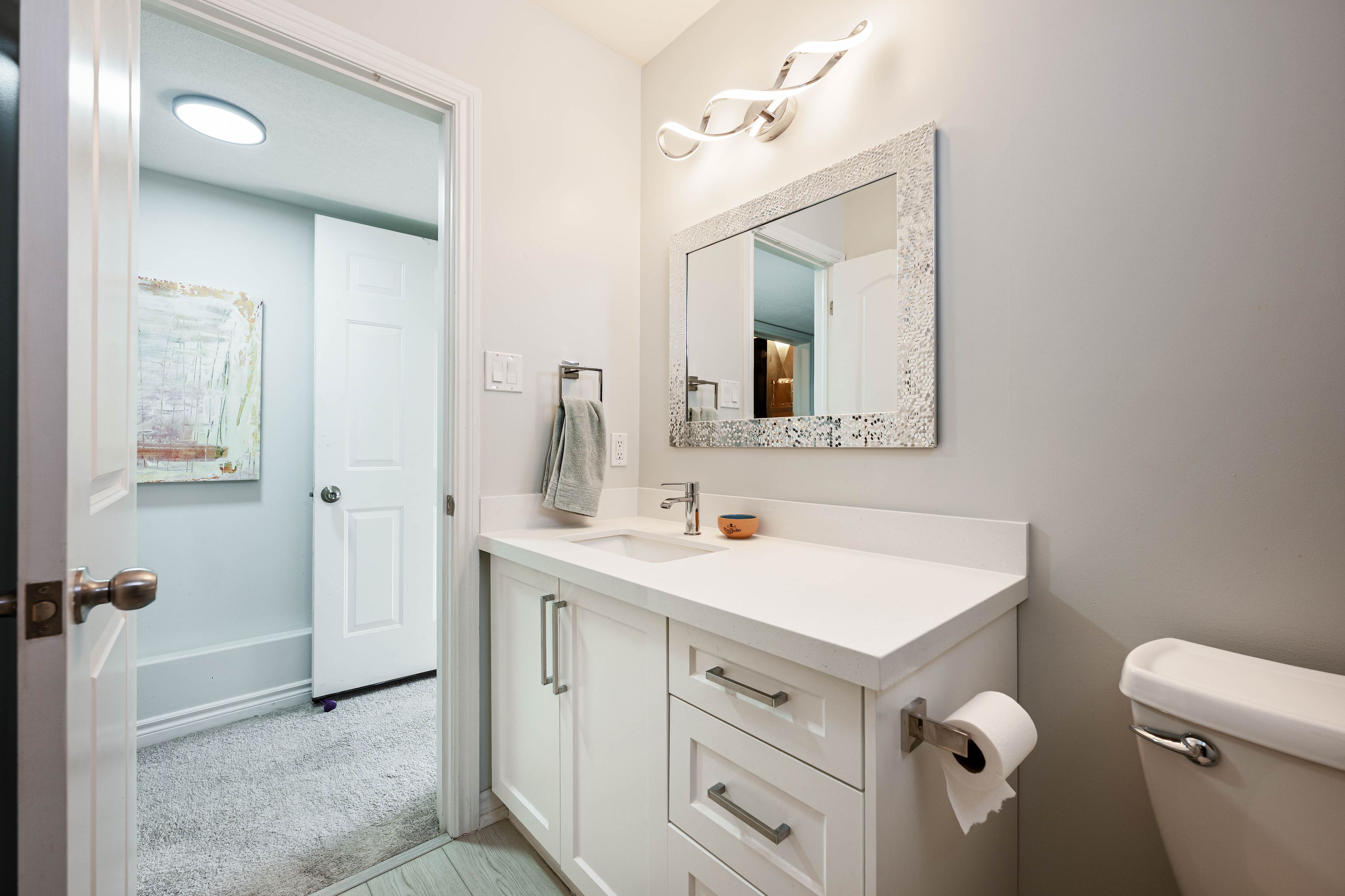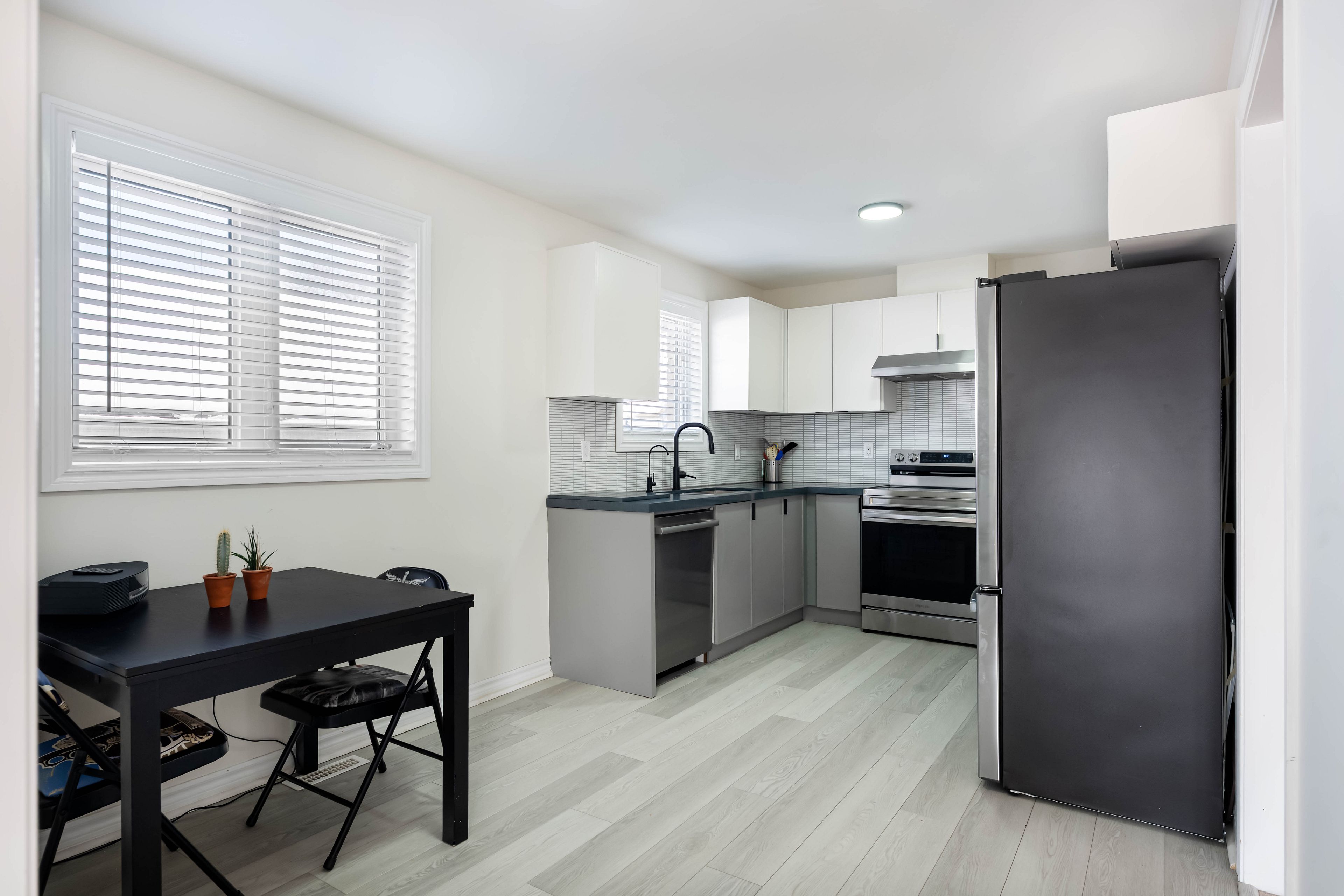 • Newly renovated kitchen with modern appliances and waterproof laminate flooring.