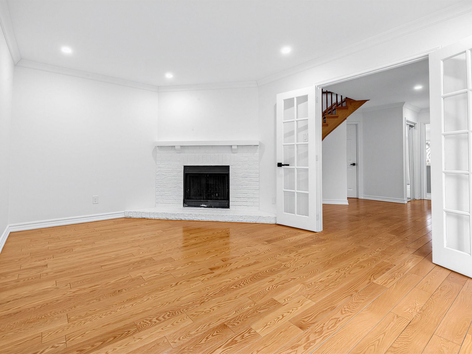 • Family room with fireplace and French doors adding charm and comfort.