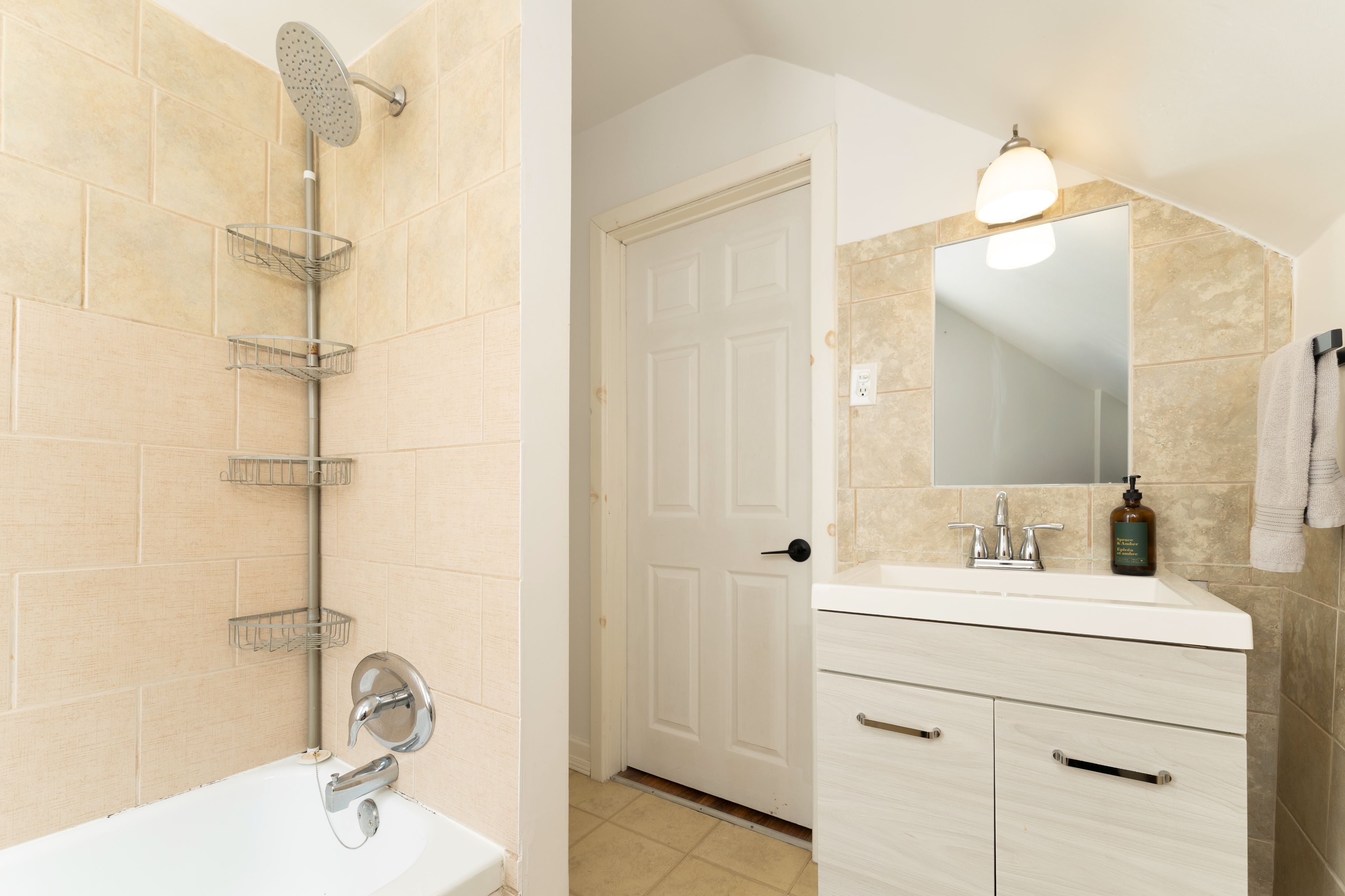 • Renovated kitchen with stainless steel appliances and stylish tile backsplash.