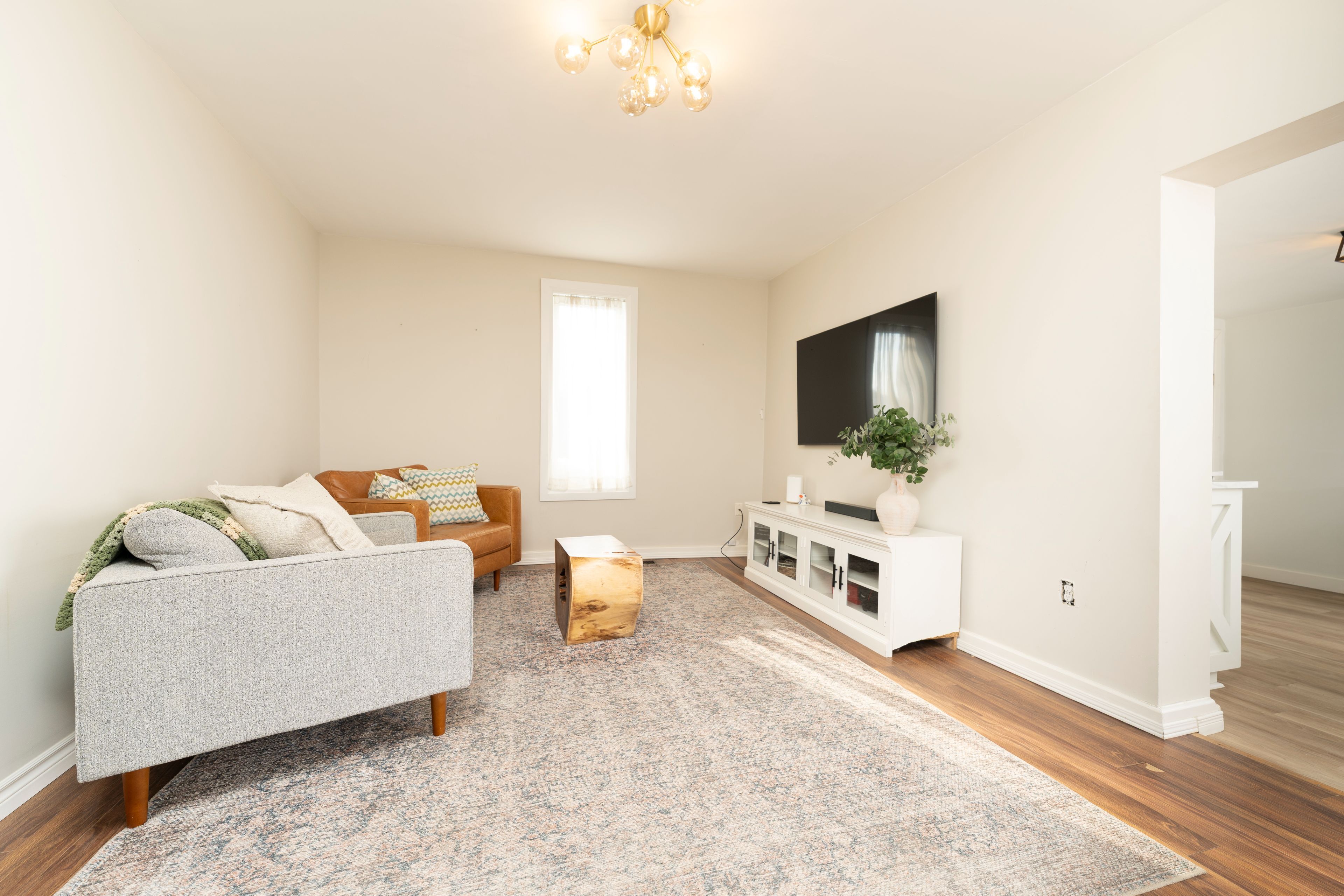 • Modern exterior with new vinyl siding and entrance doors for great curb appeal.