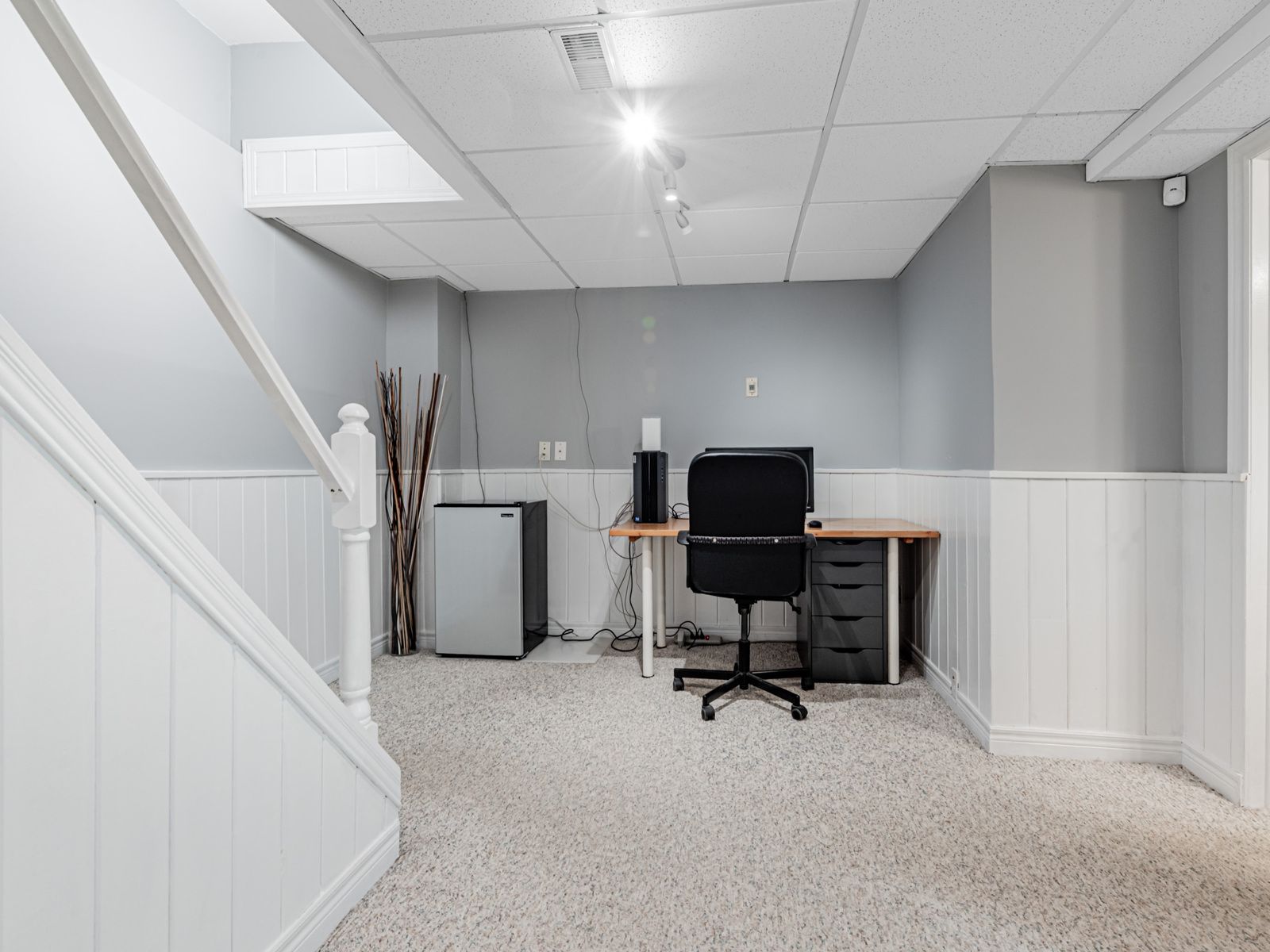 • Finished basement perfect for a home office, playroom, or gym.
