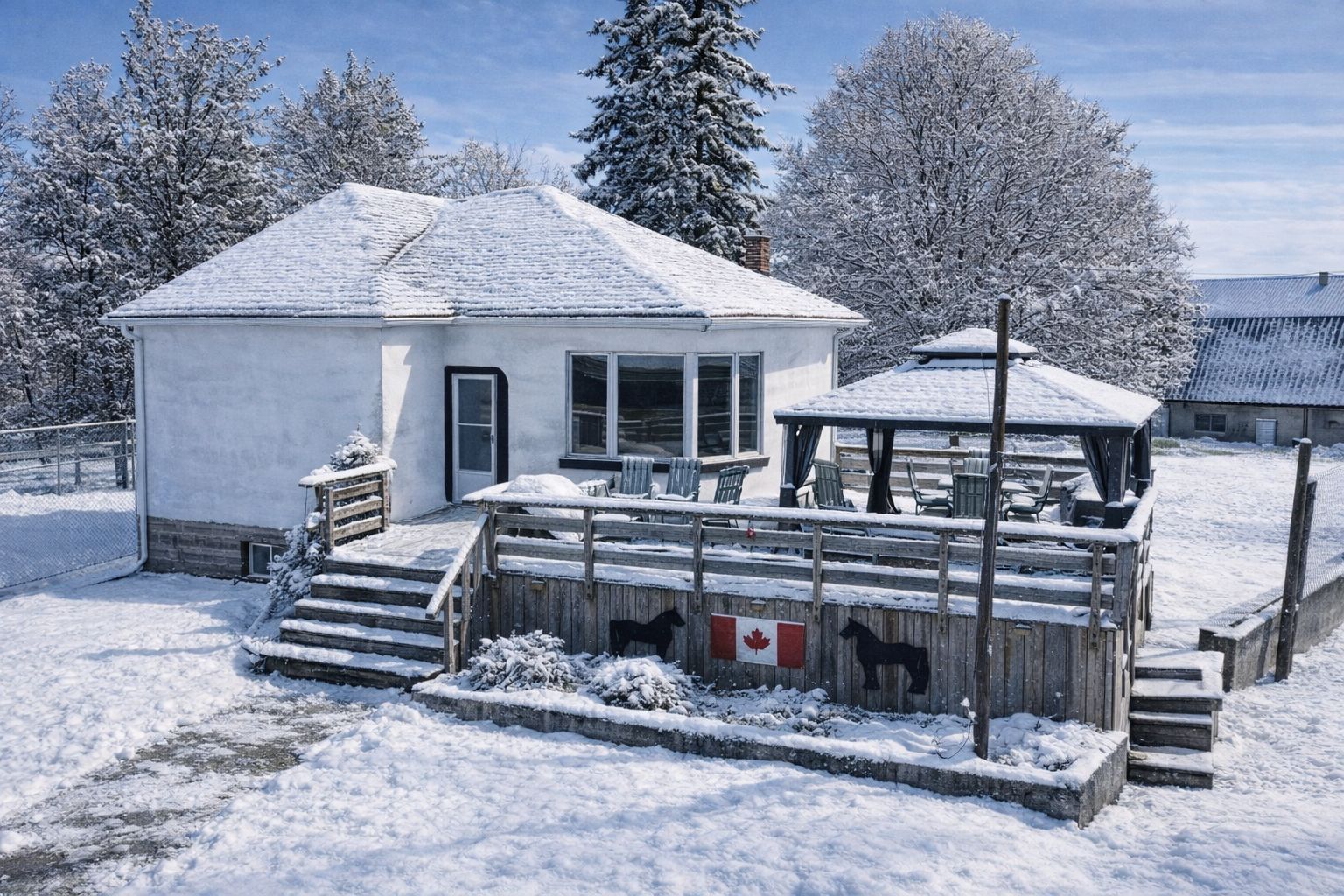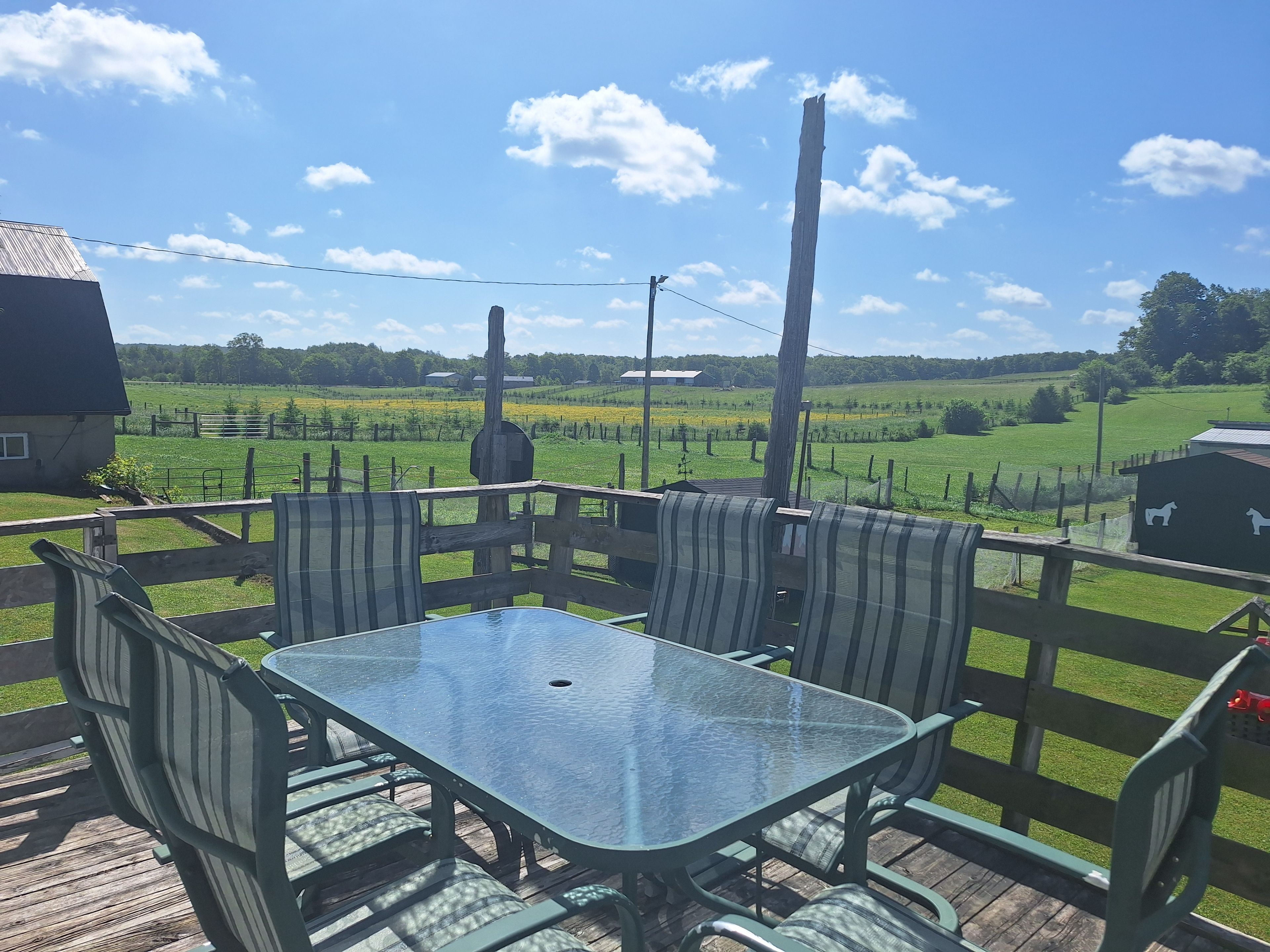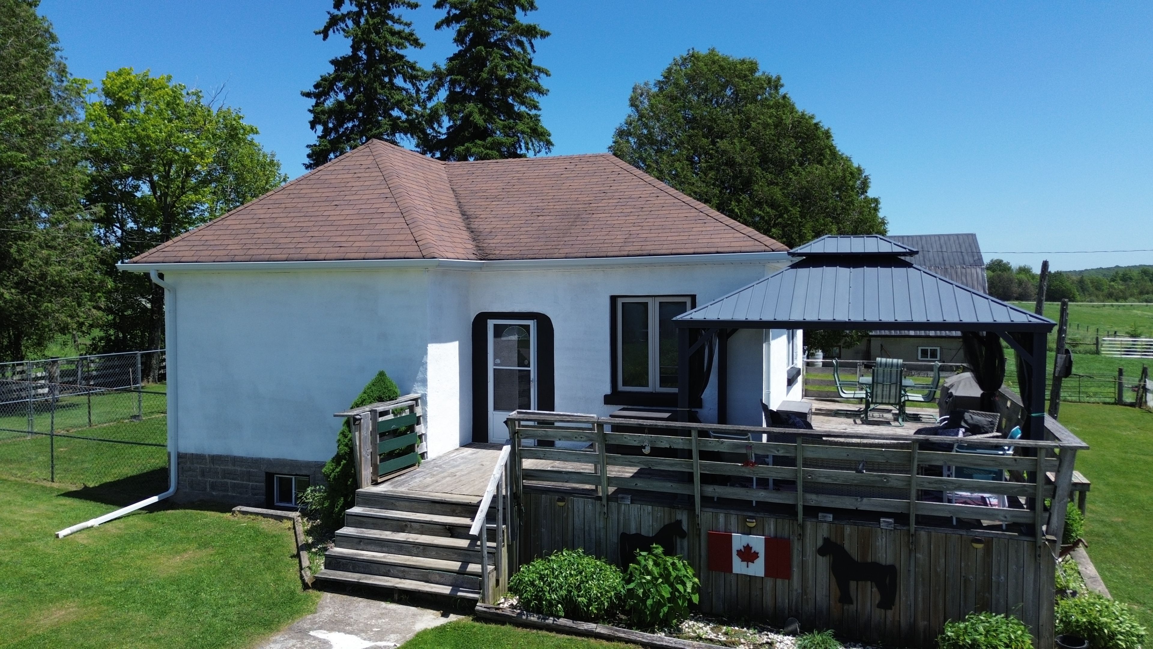 Tired of your livelihood being in someone else's hands? Welcome to this charming home with a turn-key dog boarding facility, barn with 5 box stalls, tack room, hay storage and a small drive shed, all nestled on over 6 acres of picturesque land including a once registered apple orchard. The orchard walking trail is located behind the fenced-in yard at the house, go through the wooden gate and the orchard goes straight back to concession 6. Zoned specifically to operate a kennel, there is a 15-kennel (ample room to expand and add more kennels) dog boarding facility with a fenced-in run, previously operated as the highly regarded day away pets for 17 successful years, with over 120 loyal clients. The present average rate at comparable facilities is approximately $40/day and the sellers at the time of operating their facility were mostly at full capacity 7 days a week. The sellers will happily spread the word to their former clients to assist in the launching of your business (their phone is still ringing with requests). The home itself exudes charm and warmth, with 3 bedrooms and 2 full bathrooms, a sun-filled country kitchen with views overlooking your pastures and a finished lower level with a walkout, providing even more living space. The rustic design and original features of this wartime home have been lovingly maintained, while the updated conveniences offer the best of both worlds. For animal lovers, the property offers an ideal home for your horses, livestock, and other small farm animals. Whether you're enjoying a morning coffee on the wrap around deck, tending to your animals, or simply walking through your own private paradise surrounded by apple trees, the possibilities are endless. Also perfectly suited for a sniff spot (google sniff spot) location to generate a more passive income . Just minutes from markdale's many amenities, the new hospital, schools, hiking trails, rivers and lakes. Furnace -2022, roof-2013, septic inspected & pumped -2024