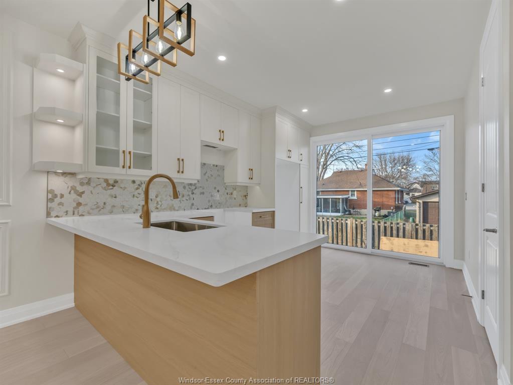 • Stunning kitchen featuring quartz countertops and oversized patio door.
