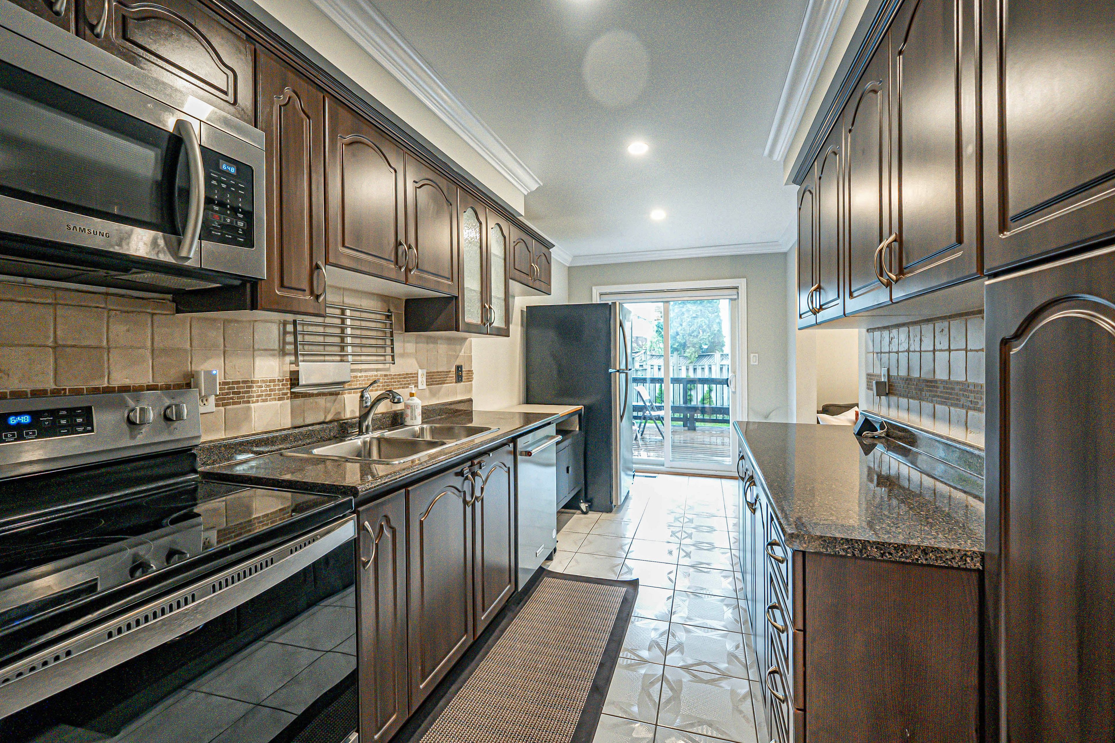 This bright and spacious 3-bedroom, 4-bathroom home offers a perfect blend of comfort and style. The main floor features elegant pot lights throughout, while the kitchen boasts a marble backsplash and upgraded washrooms include granite and quartz countertops with stylish stone veneer walls. The spacious primary bedroom includes a recently renovated ensuite and a large walk-in closet. Step outside to a private backyard oasis featuring a generous deck with ample seating space, surrounded by mature trees ideal for relaxing or entertaining. Major upgrades include a newer a/c (2017), furnace (2017), roof (2020), and driveway (2021). This is a beautifully maintained home.