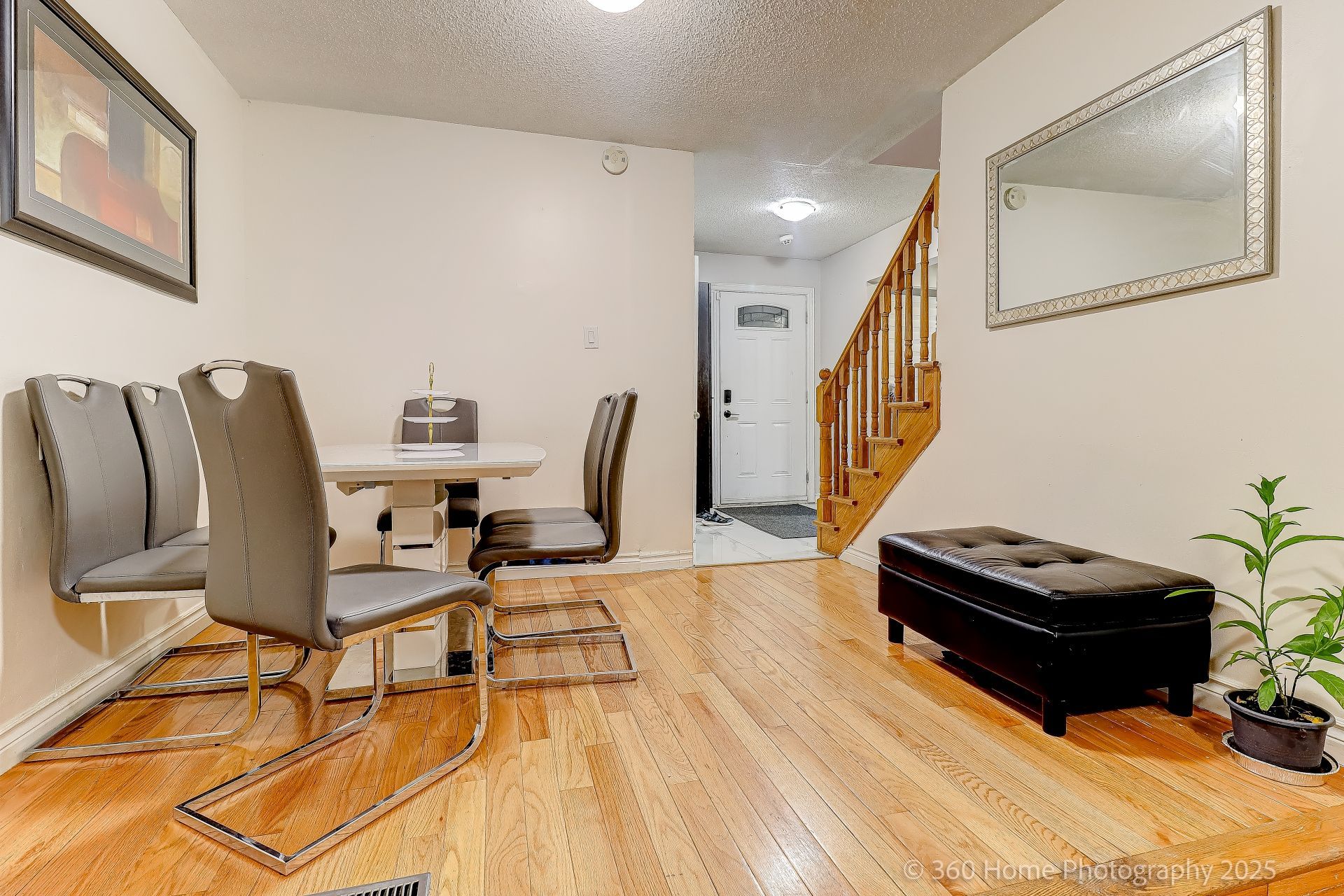 • Hardwood flooring on the main floor and laminate in the basement.