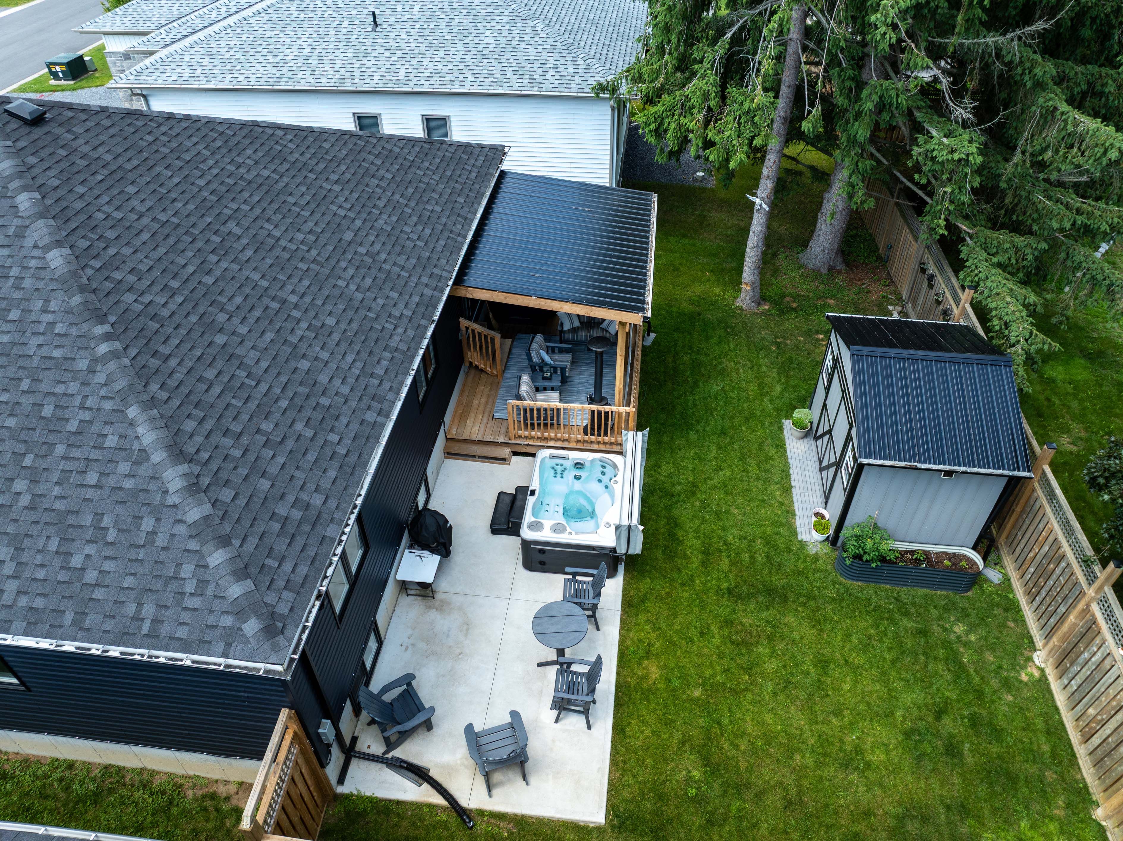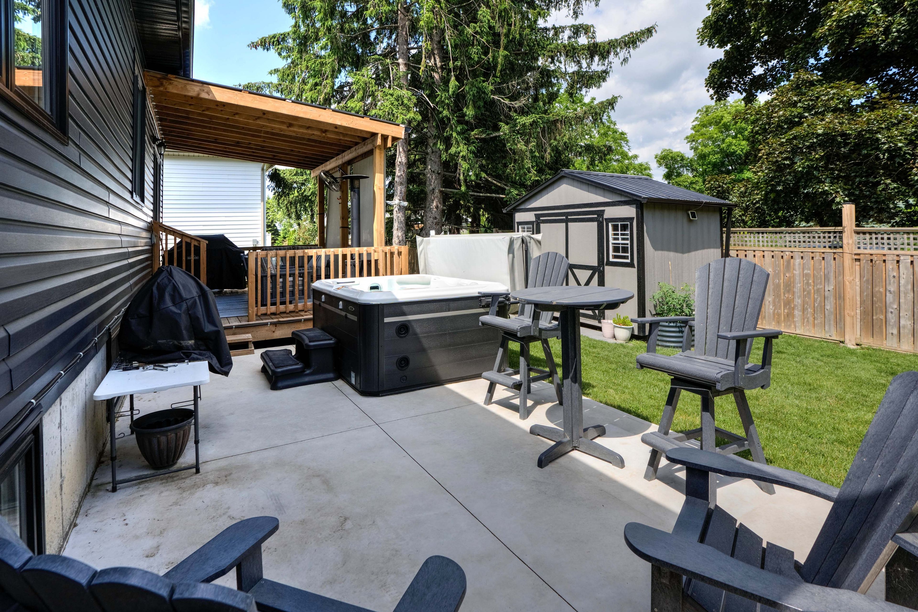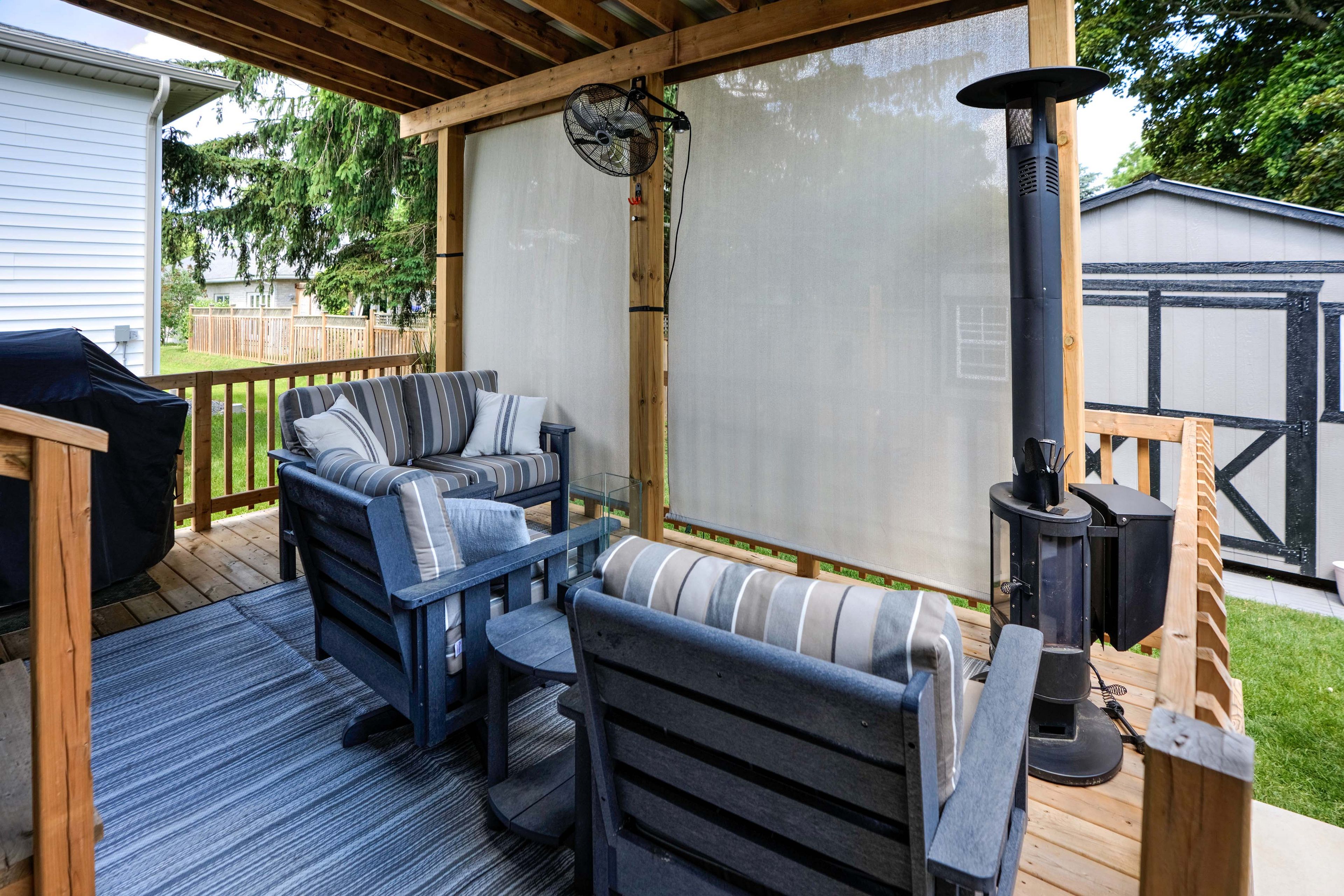 • Private deck with heating, cooling fans, and a hot tub for relaxation.