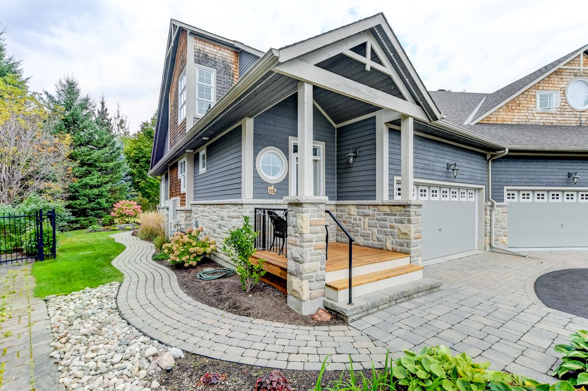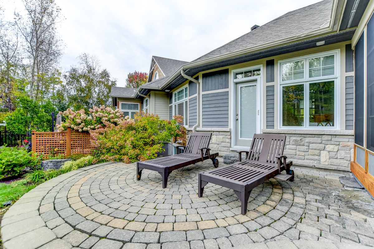 Open house sunday march 29th, 2026, 2-4pm. Welcome to 125 marsh sparrow private, offering over 3,150 sq ft of well-designed living space on a quiet cul-de-sac, backing onto trees and the marshes golf course. Situated on an 8,200 sq ft premium pie shaped lot with the potential to accommodate a pool, the property is professionally landscaped, offering a beautiful and private outdoor setting. This home is offered by the original owners and features 2+1 bedrooms and 2. 5+1 bathrooms, including ensuites for both the main floor and upper-level bedrooms. The bright and spacious main level showcases a large open concept kitchen complete with quartz countertops, a generous island, pantry, and a dedicated coffee bar area. Maple hardwood flooring and an abundance of natural light create a warm and inviting atmosphere throughout. Designed with flexibility in mind, the layout includes a main floor primary bedroom, a second primary loft style suite upstairs, and an additional bedroom in the fully finished basement, ideal for guests or multi-generational living. The lower level also offers a large recreation room and plenty of storage space. Additional features include a gas fireplace, oversized double garage, a 3-season screened in porch at the rear off the main living area, and a patio extending off both the screened in porch and the primary bedroom, perfect for relaxing and enjoying the peaceful surroundings. Situated in a sought-after adult lifestyle community, the home also benefits from a furnace replaced in 2025, recently sealed slate flooring in the foyer and kitchen, and a driveway sealed in 2025, providing added value and peace of mind. A rare opportunity to enjoy low maintenance living in a tranquil setting, just steps to nature and close to all amenities.