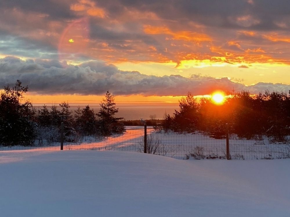 Welcome to your dream winter retreat! Elevated ski-chalet-inspired escape set on a scenic 2+ acre hilltop just minutes from thornbury & blue mountain. Fully renovated & offering exceptional privacy, this modern bungalow is the perfect home base for winter adventures & four-season living featuring panoramic views of georgian bay & the surrounding countryside. Located just 5 minutes from the charming town of thornbury, this property offers the ideal balance of peaceful seclusion and convenient access to dining, shopping, and recreation. In winter, this property becomes your own private playground. Snowshoe or cross-country ski right from your backyard, gather around the outdoor fire pit for cozy winter warm-ups or unwind beneath the stars in the bubbling outdoor hot tub. With area ski hills only minutes away you can enjoy effortless access to downhill skiing, snowboarding & après-ski relaxation at home. Inside a warm & inviting ambiance awaits. The open-concept layout features a sunken living room with floor-to-ceiling windows & gas fireplace, ideal for relaxing after a day in the snow. The stylish kitchen offers quartz countertops, stainless steel appliances, and a generous pantry/bar, perfect for hosting family and friends. The primary suite is a private sanctuary with a spa-inspired ensuite, walk-in closet, and walk-out to a secluded deck and hot tub-your personal winter escape. Outdoors enjoy morning sunrises and afternoon sunsets, landscaped grounds, walking trails & peaceful views of the neighboring horse pastures, beautiful in every season. An expansive porch, deck, & patio provide year-round enjoyment, while a detached double garage w/ upgraded shelving & finishes , an insulated loft offers flexible space for a home office, studio, or guest suite. Whether you're seeking a winter wonderland retreat or a four-season lifestyle property close to ontario's premier recreation destination, this one-of-a-kind home delivers. This is more than a home-it's a lifestyle.