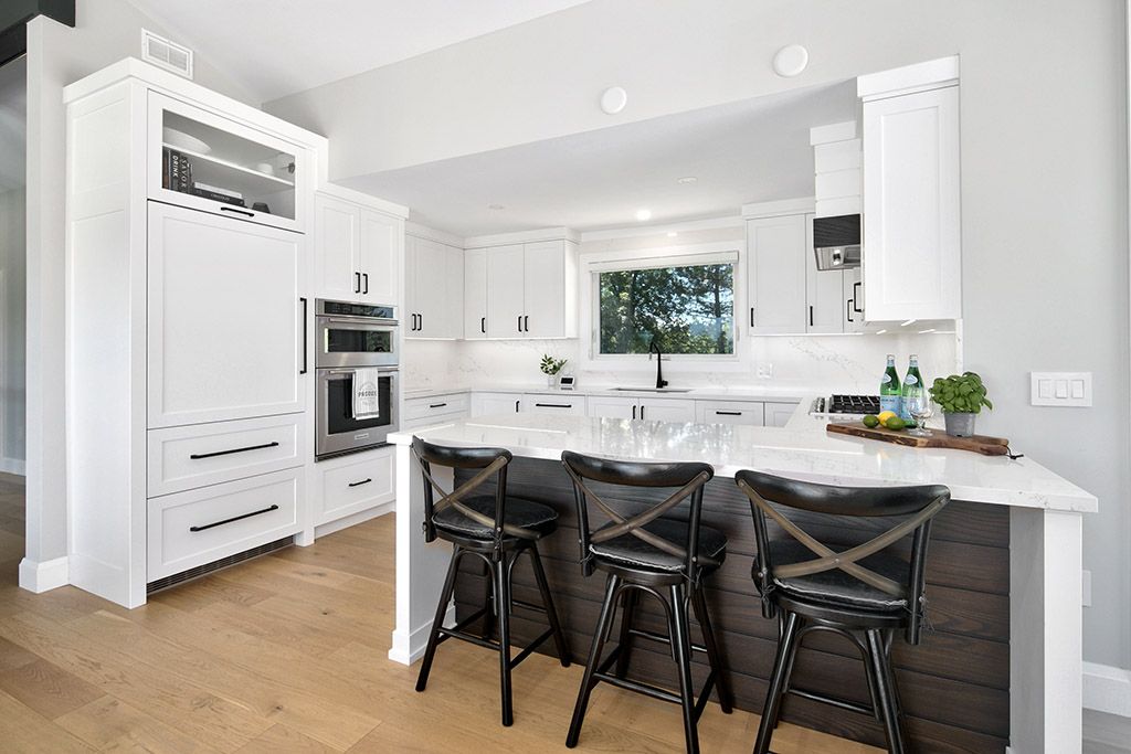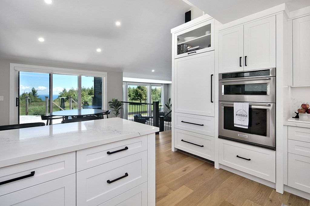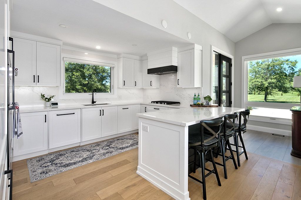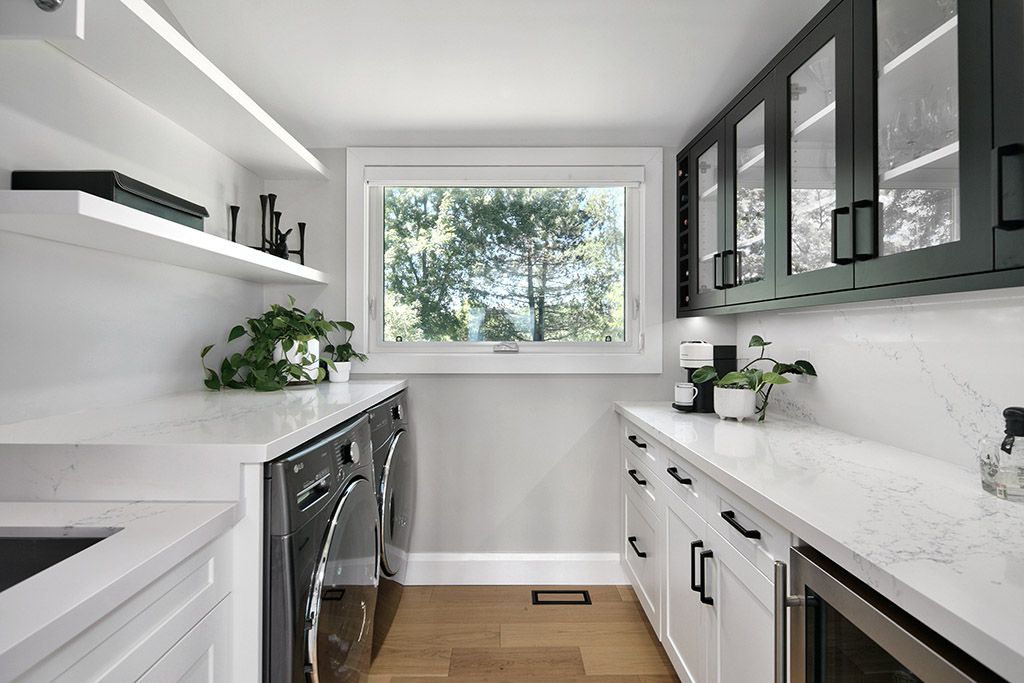 • Stylish kitchen featuring quartz countertops and ample pantry space for hosting.