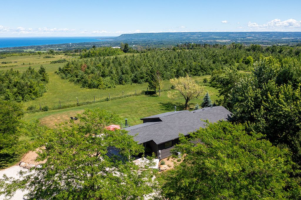 Welcome to your dream escape! This perfect private retreat with panoramic views is only minutes from thornbury & the blue mountains. Set atop a scenic 2+ acre hilltop, this recently renovated modern bungalow offers unmatched privacy and breathtaking views of georgian bay and the surrounding country side. Located just 5 minutes from the charming town of thornbury and the blue mountains, ontario's premier four-season destination. This home is your gateway to luxury and back to nature. Step inside to a spacious open-concept layout featuring a cozy sunken living room with floor to ceiling windows, and fireplace. The stylish kitchen boasts quartz countertops, stainless steel appliances, and a large pantry/bar, ideal for hosting. The master bedroom includes a spa-inspired en-suite, walk-in closet, walk-out access to a private deck with a hot tub - your personal sanctuary under the stars. Outside, enjoy a beautifully landscaped setting with a fire pit, walking trails, and views of a serene neighboring horse pasture. Relax or entertain on the expansive porch, deck, and patio areas designed for year-round enjoyment. A detached double garage with an insulated loft offers the perfect space for a home office, studio, or guest suite. Whether you love birdwatching, hiking, cross-country skiing, or simply unwinding in peaceful surroundings, this one-of-a-kind retreat delivers. Just minutes away, the vibrant town of thornbury offers renowned restaurants, cafés, boutiques, and galleries. Golfing, boating, beaches, wineries, biking, skiing, and more all right in your neighborhood. This is more than a home, it's a lifestyle. Don't miss the opportunity to make it yours.