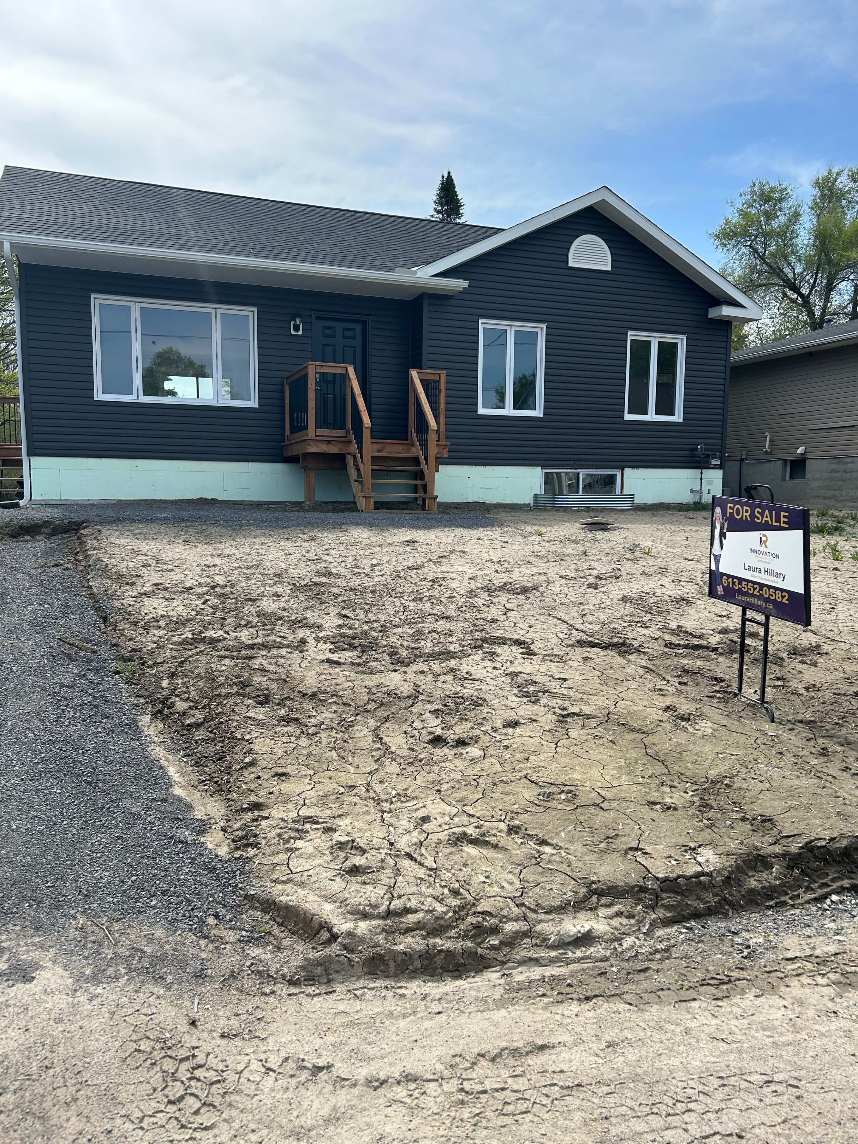 This newly constructed bungalow offers a harmonious blend of modern design and comfortable living on a substantial lot. Step inside to discover a contemporary, open-plan living area on the primary level, thoughtfully designed to maximize both space and functionality. The seamless flow between the living room, dining area, and kitchen creates an inviting atmosphere perfect for both everyday living and entertaining guests. Natural light floods the interior through large, strategically placed windows, creating a welcoming ambience throughout the main floor. The full bathroom located on the primary level is easily accessible to residents and visitors alike. The bungalow features three well-proportioned bedrooms situated on the main floor, providing comfortable and private retreats. Each room benefits from the abundance of natural light, creating bright and peaceful spaces. Extending the living space outdoors, a deck is conveniently accessible directly from the kitchen. This provides an ideal setting for al fresco dining, relaxing with a morning coffee, or simply enjoying the scenic views of the generous rear garden. Endless possibilities await for outdoor activities, gardening enthusiasts, or simply enjoying the tranquility of a large private yard. Below the main living area, a large, unfinished basement awaits your personal touch and creative vision. This additional space presents a blank canvas for future development, offering the potential to create additional living space, a recreation room, a home office, or customized storage solutions to perfectly suit your individual needs and lifestyle. The charming town of arnprior, this bungalow offers a peaceful retreat while still providing convenient access to the town centre. Enjoy the quietude of suburban living without sacrificing the amenities and conveniences of downtown access. This property truly offers the best of both worlds - a modern, comfortable home in a serene setting with easy access to the heart of arnprior.