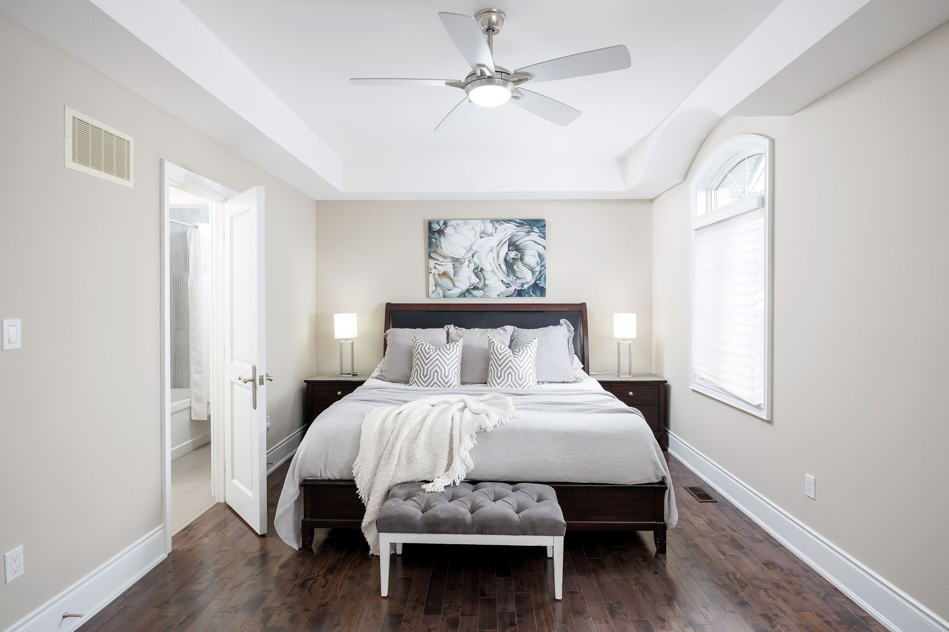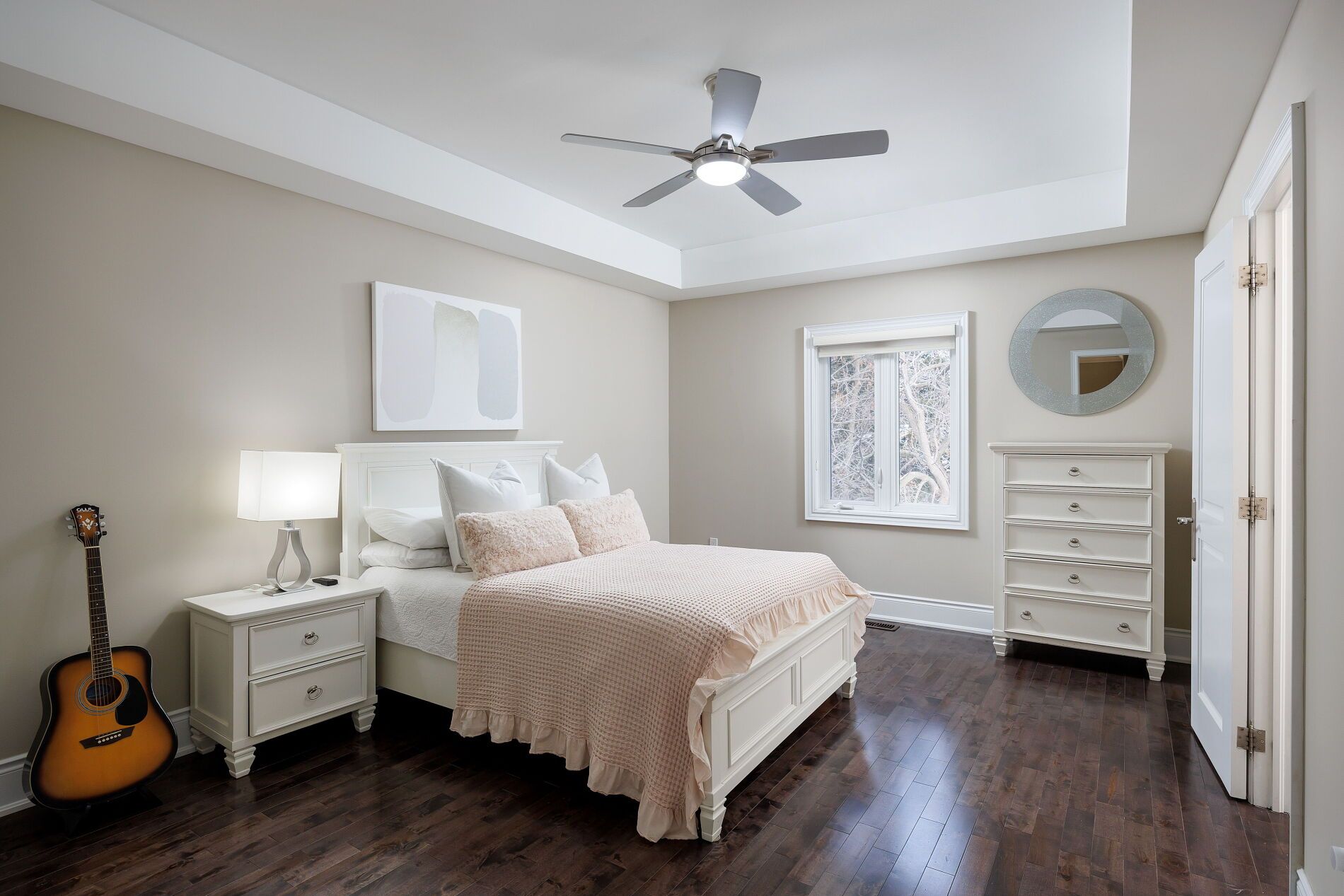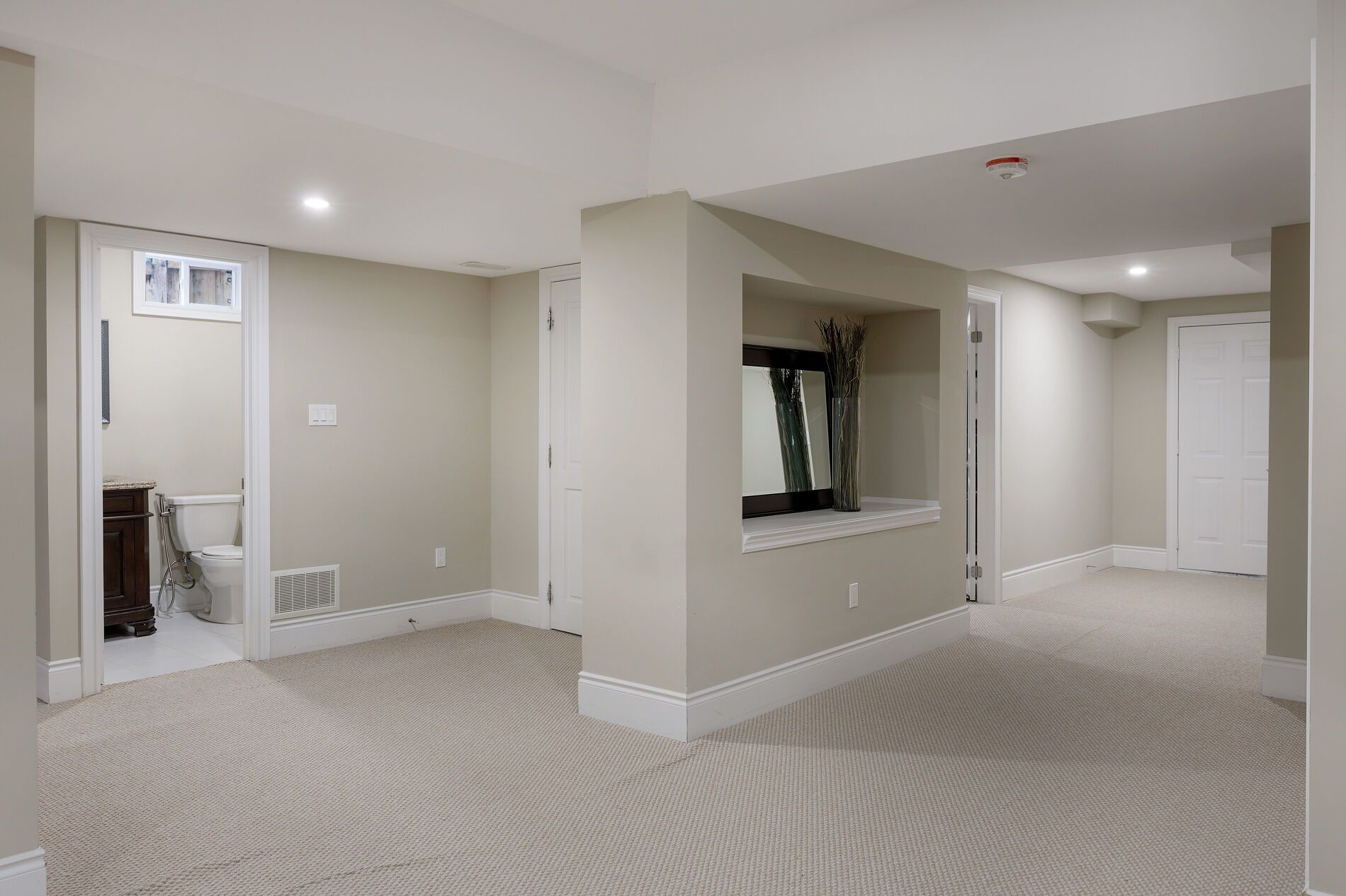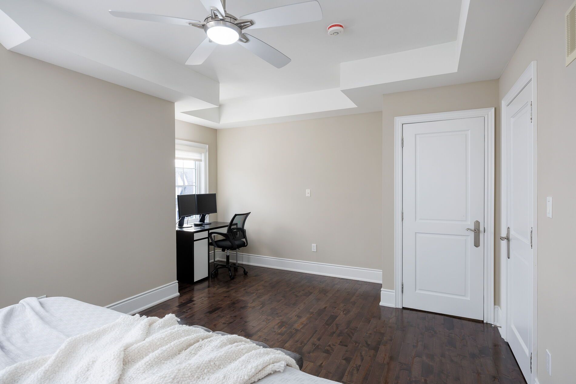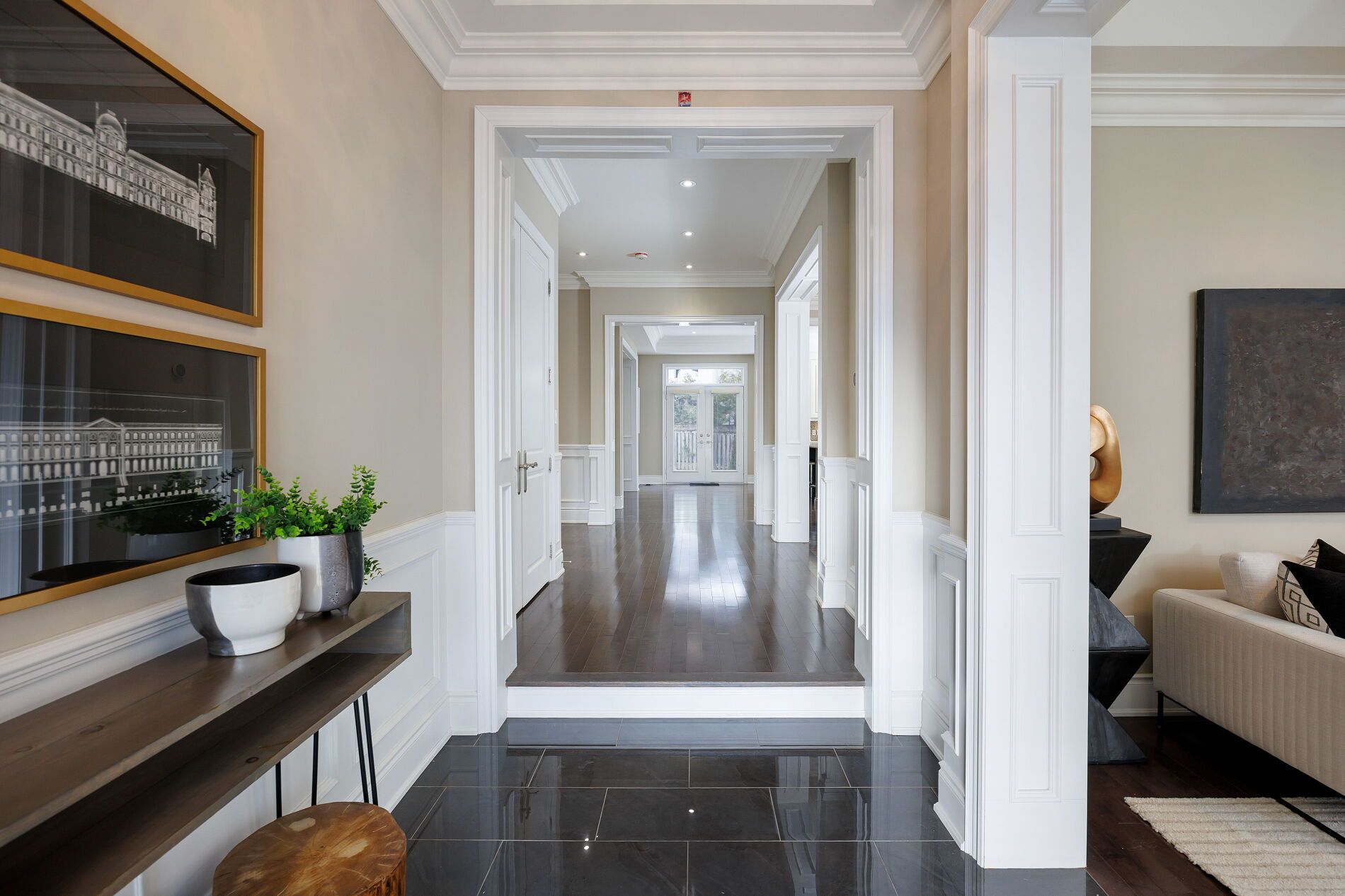 • Spacious interior with high ceilings, hardwood flooring, and elegant details.