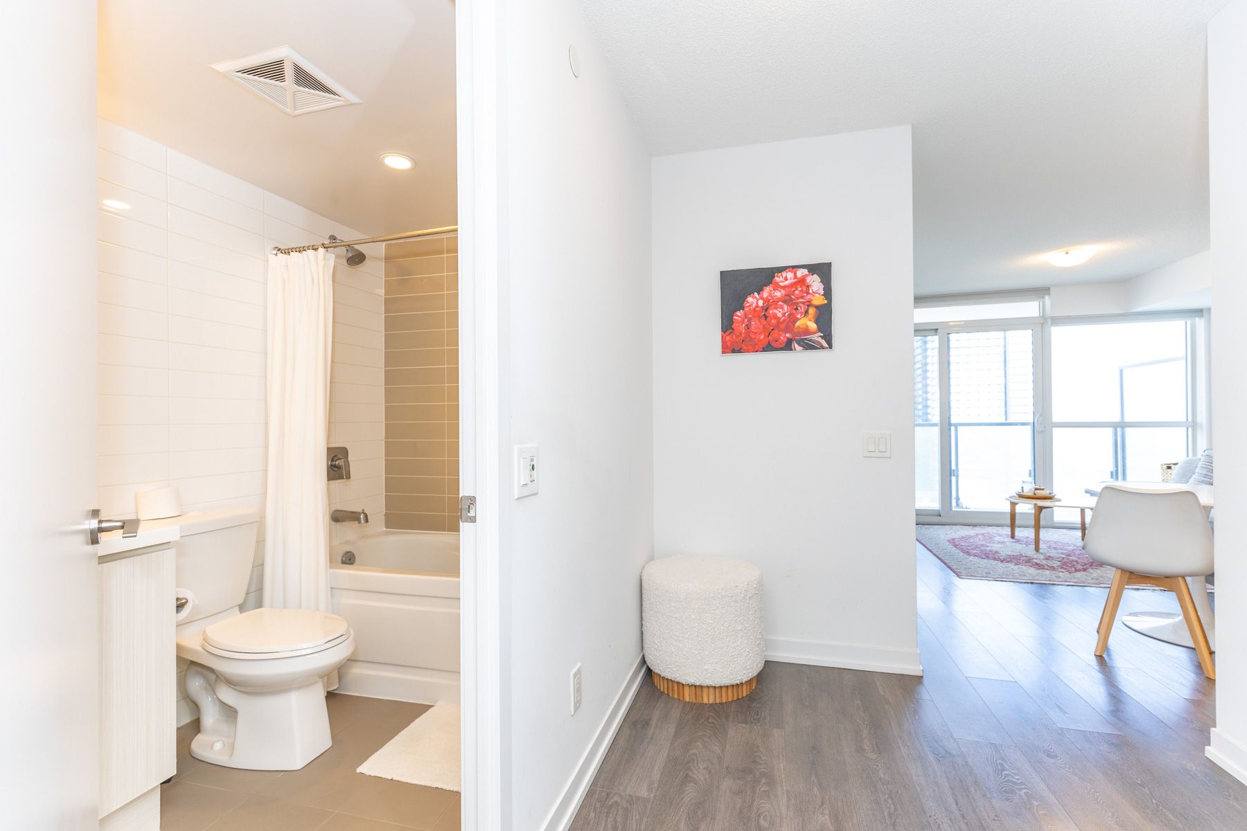 Midtown living at its finest at the eglinton by menkes! This well-maintained 1+1 bedroom suite features a practical and efficient layout with engineered hardwood flooring, upgraded built-in appliances, and quartz countertops. The versatile den can easily function as a second bedroom or home office, while the primary bedroom offers a large closet for ample storage. Enjoy outdoor space on the spacious balcony, perfect for relaxing. Residents have access to premium amenities including a gym, sauna, billiards room, party room, theatre, and 24-hour concierge. Ideally located just steps from the subway, lrt, loblaws, lcbo, shops, restaurants, and entertainment, offering unbeatable convenience. A fantastic opportunity for end-users or investors in one of toronto's most vibrant neighbourhoods.