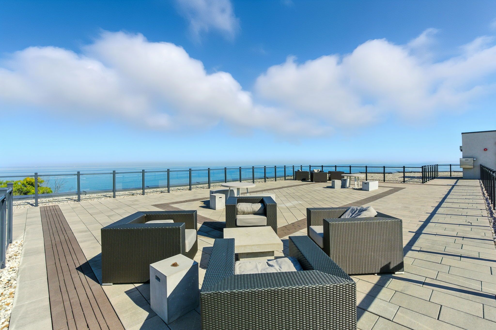 • Access to rooftop terrace, fitness center, and nearby trails and beach.