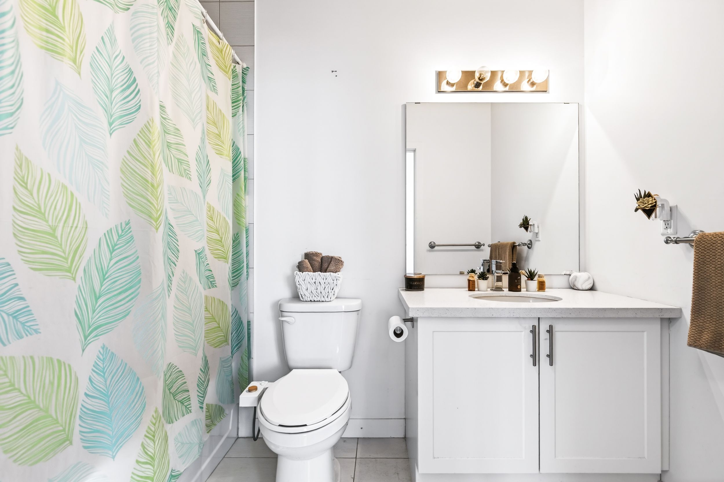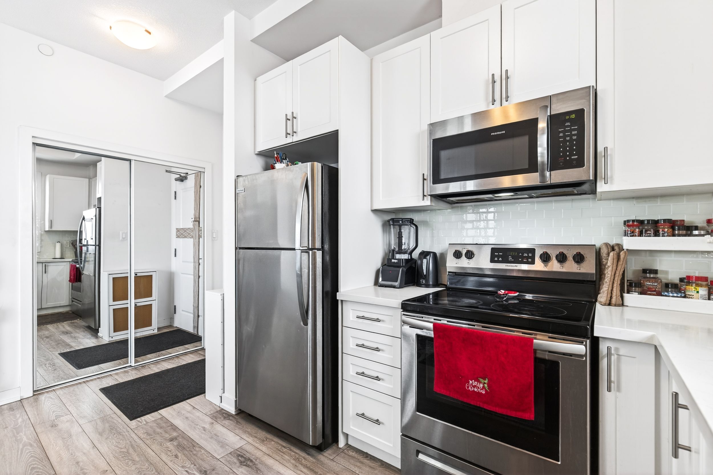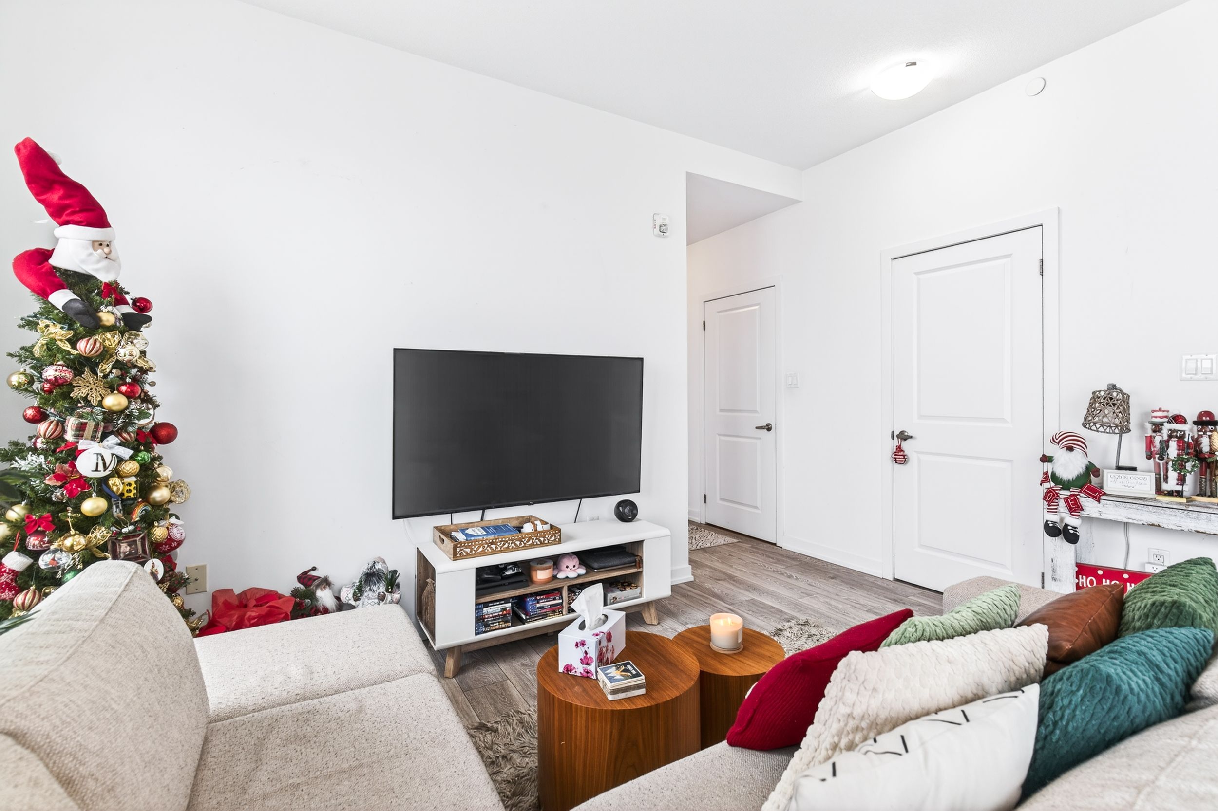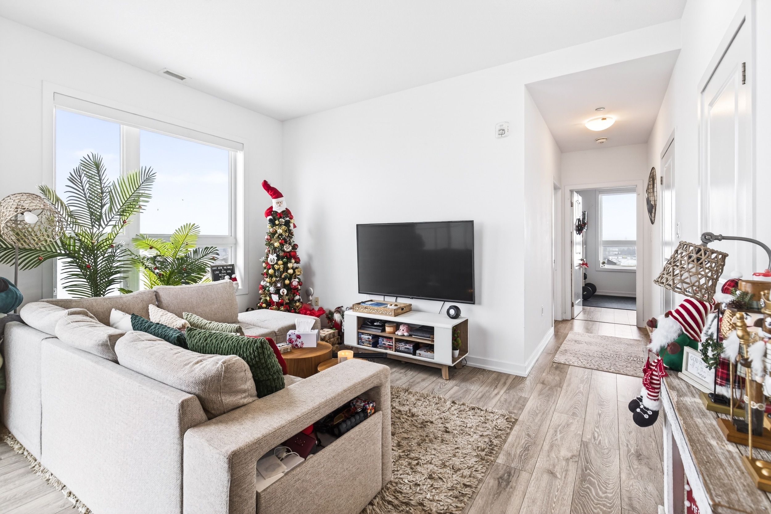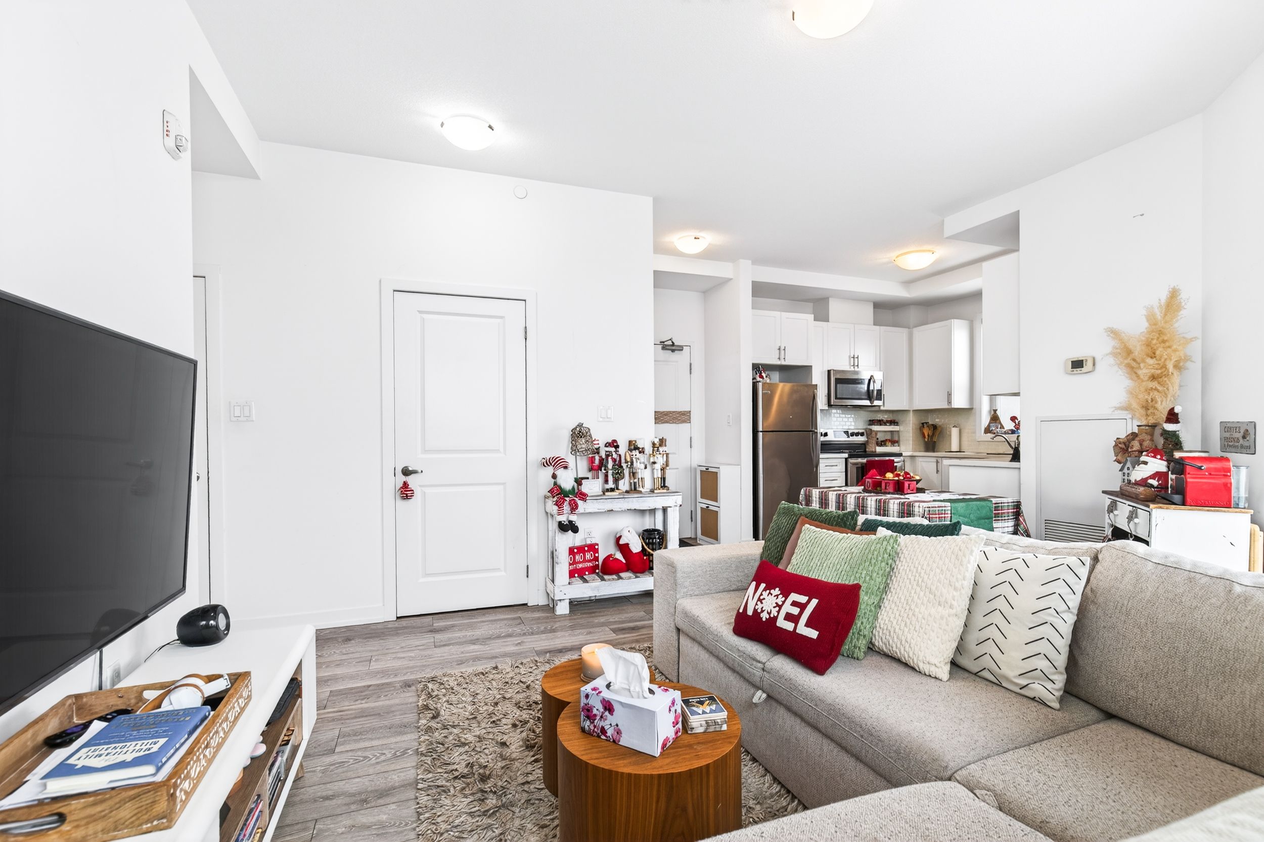 Penthouse living at the lake! Welcome to sapphire at waterfront trails, where waterfront living truly shines. This top-floor 2-bedroom, 2-bath penthouse suite offers the ultimate blend of style, comfort, and vacation-inspired living, every single day. Stunning lake views from the balcony and living areas! Soaring 10-foot ceilings and a bright open floor plan create an airy, inviting atmosphere. The modern kitchen is designed to impress with quartz countertops, stainless steel appliances, extended cabinetry, and a striking backsplash, making it perfect for both everyday living and entertaining. The spacious primary bedroom features a walk-in closet and private ensuite, while the second bedroom and full bath offer flexibility for guests, a home office, or additional living space. Contemporary vinyl flooring throughout the condo, in-suite laundry, modern blinds on all windows, and stylish finishes complete the space. Every room has a window for abundant natural light! Step outside to your private extended balcony and soak in the lake breeze, or head up to the breathtaking rooftop terrace for panoramic views of lake ontario-spectacular sunrises and sunsets included. This well-managed building offers premium amenities including a fully equipped gym, party room, bike storage, guest suites, and geo-thermal heating and cooling. Enjoy 1 underground parking space (#116) and 1 locker conveniently located on the 6th floor (locker number to be confirmed). Located steps from the waterfront trail, beach strip, and lake access, you can walk, bike, or even swim right at your doorstep. This is more than a condo-it's a lifestyle. Live where others vacation. Welcome home to sapphire.