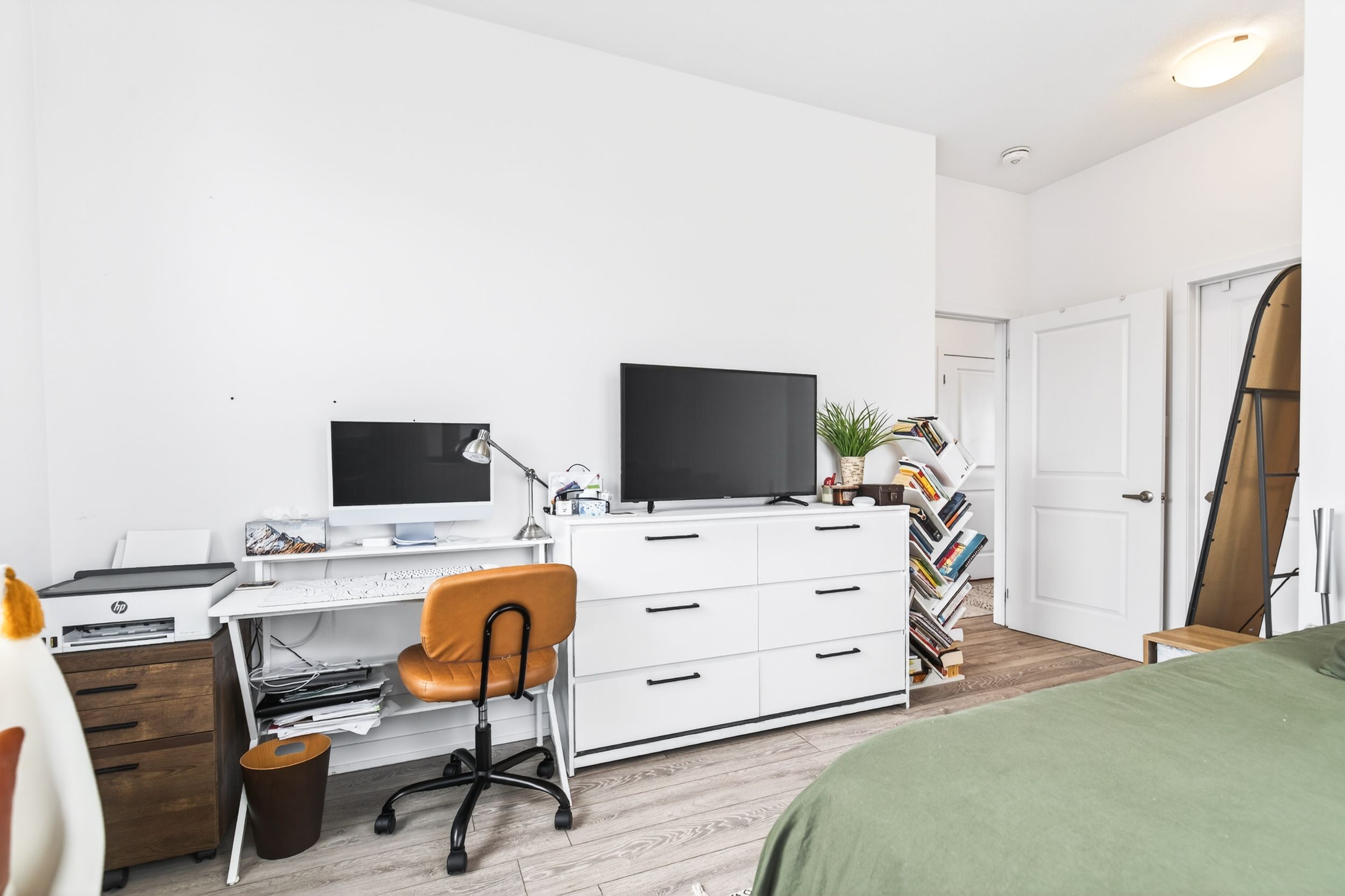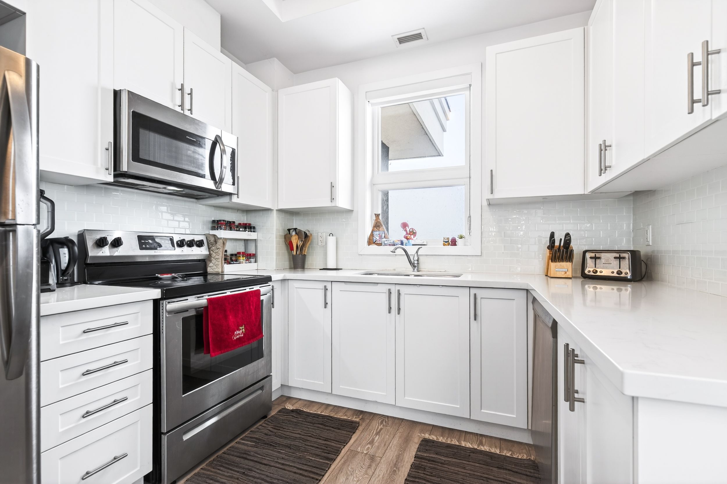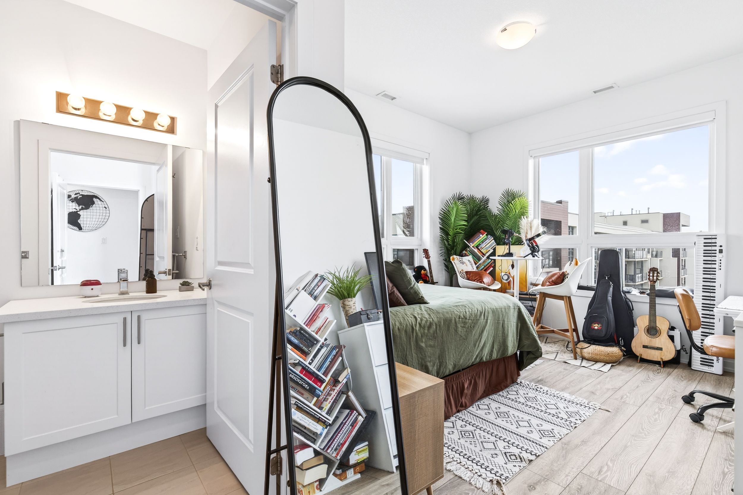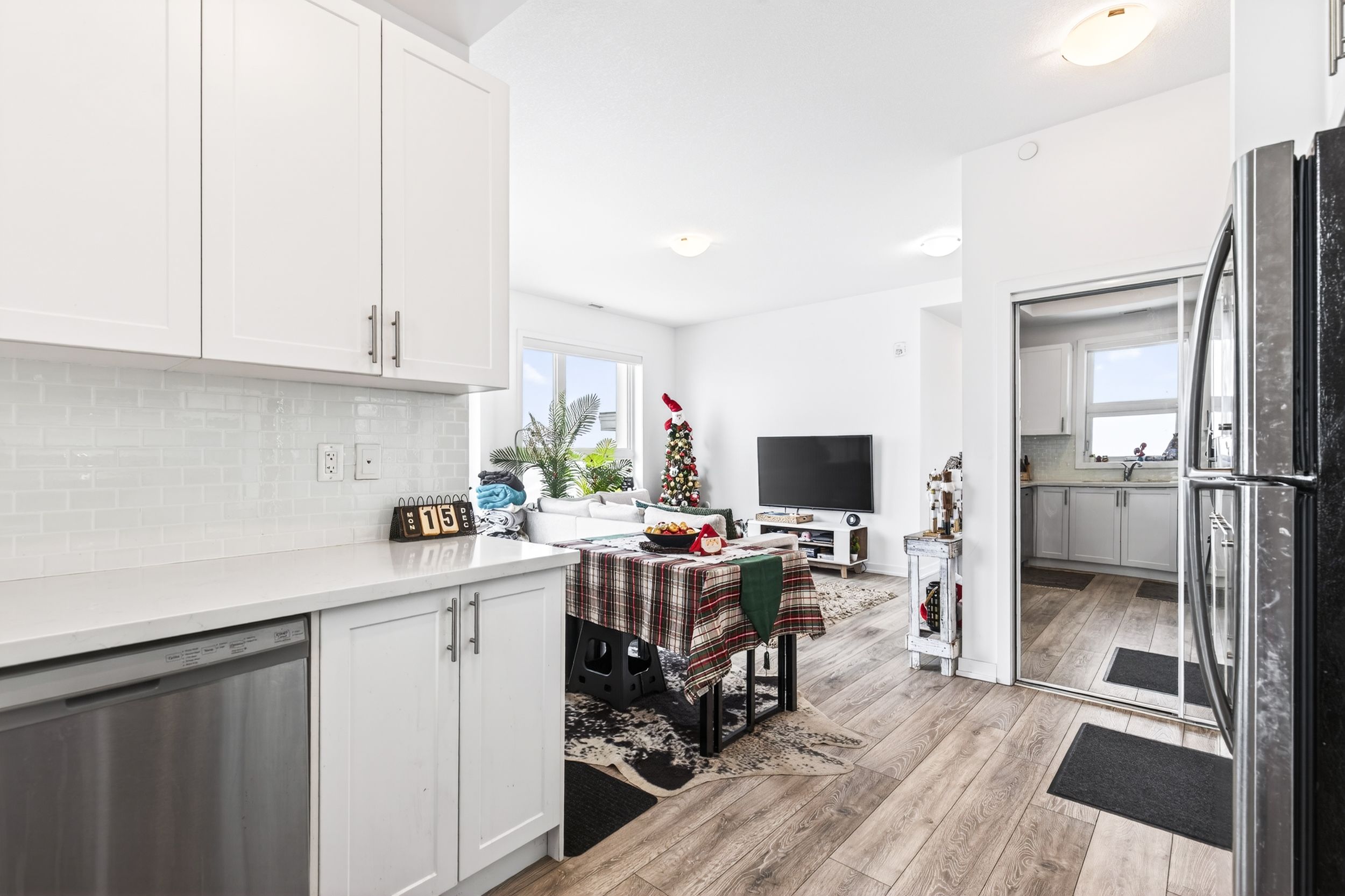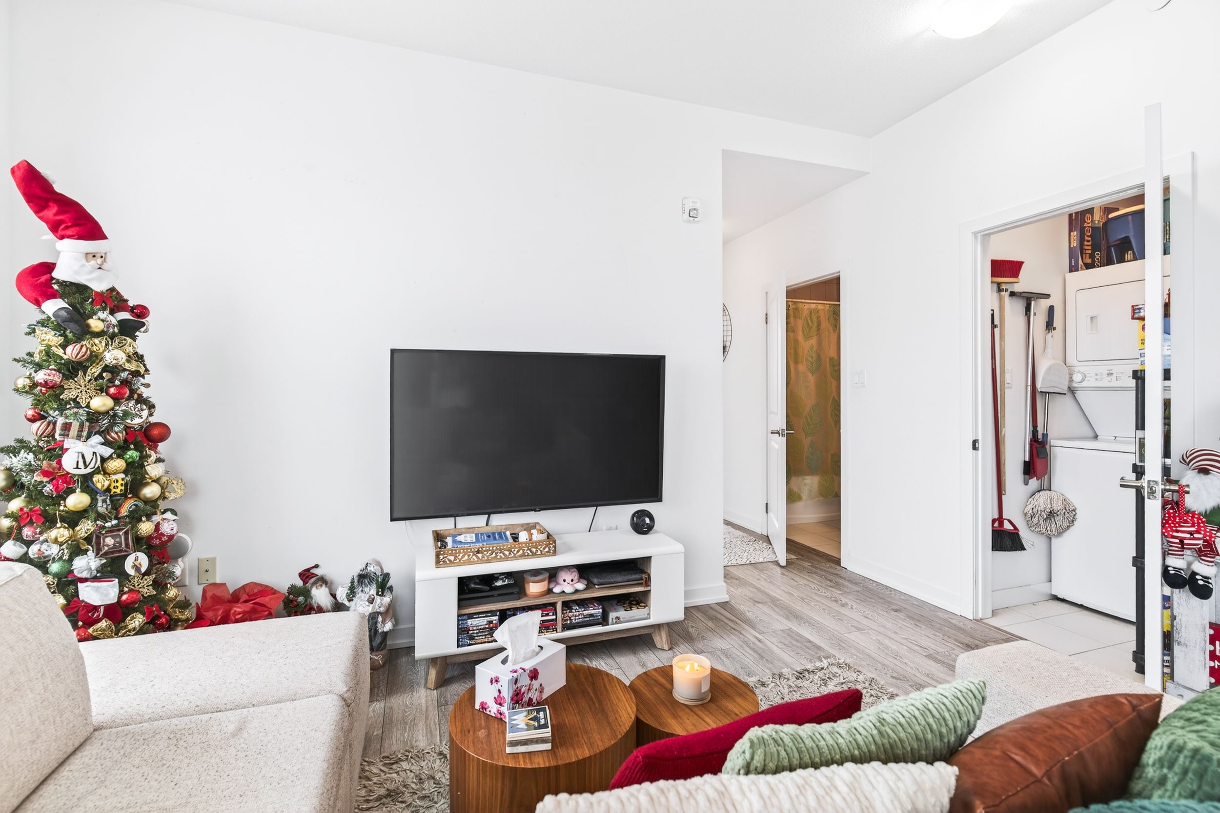 Penthouse living at the lake! Welcome to sapphire at waterfront trails, where waterfront living truly shines. This top-floor 2-bedroom, 2-bath penthouse suite offers the ultimate blend of style, comfort, and vacation-inspired living, every single day. Stunning lake views from the balcony and living areas! Soaring 10-foot ceilings and a bright open floor plan create an airy, inviting atmosphere. The modern kitchen is designed to impress with quartz countertops, stainless steel appliances, extended cabinetry, and a striking backsplash, making it perfect for both everyday living and entertaining. The spacious primary bedroom features a walk-in closet and private ensuite, while the second bedroom and full bath offer flexibility for guests, a home office, or additional living space. Contemporary vinyl flooring throughout the condo, in-suite laundry, modern blinds on all windows, and stylish finishes complete the space. Every room has a window for abundant natural light! Step outside to your private extended balcony and soak in the lake breeze, or head up to the breathtaking rooftop terrace for panoramic views of lake ontario-spectacular sunrises and sunsets included. This well-managed building offers premium amenities including a fully equipped gym, party room, bike storage, guest suites, and geo-thermal heating and cooling. Enjoy 1 underground parking space (#116) and 1 locker conveniently located on the 6th floor (locker number to be confirmed). Located steps from the waterfront trail, beach strip, and lake access, you can walk, bike, or even swim right at your doorstep. This is more than a condo-it's a lifestyle. Live where others vacation. Welcome home to sapphire.