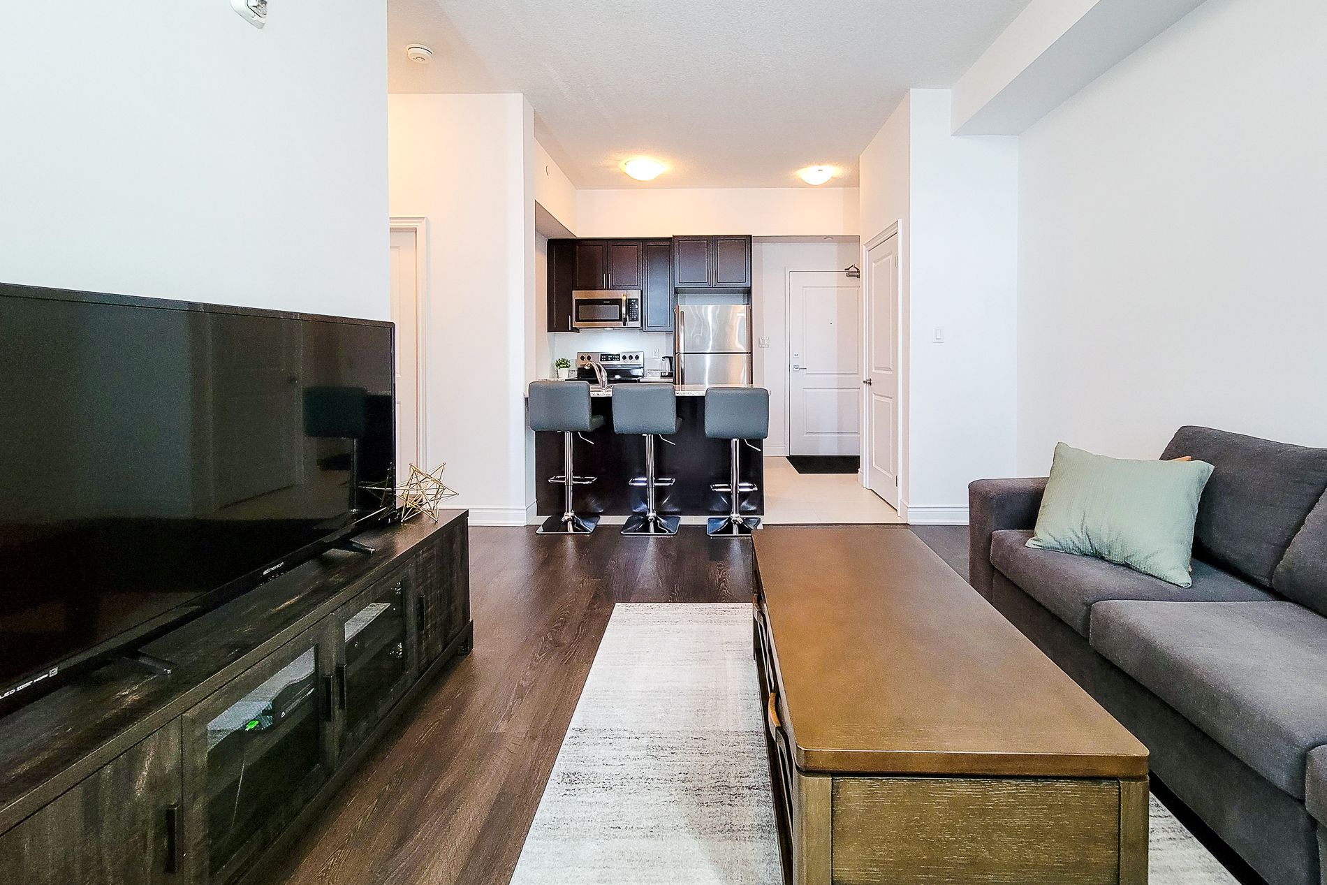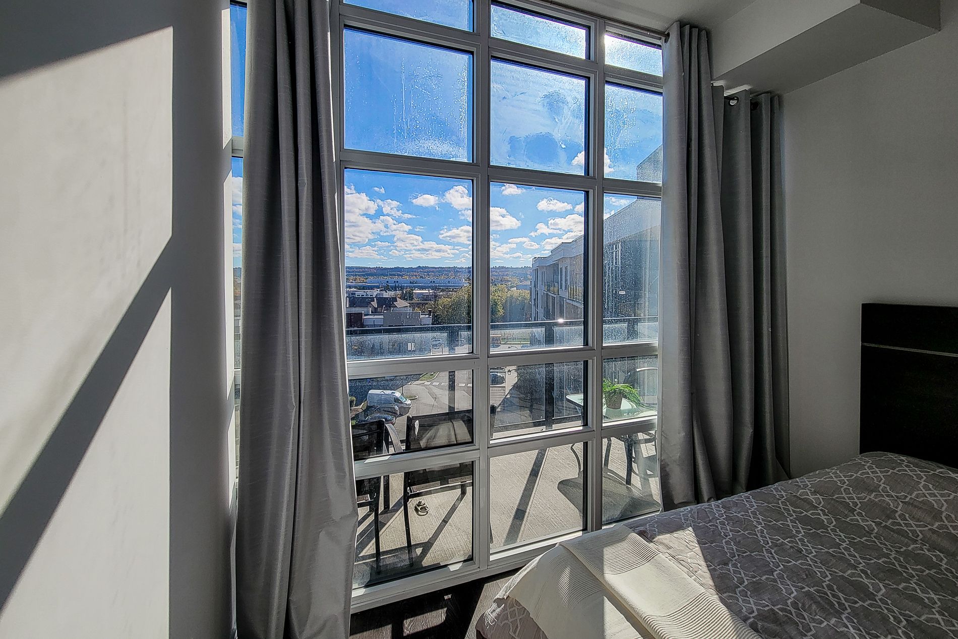 • Modern 1-bedroom condo with floor-to-ceiling windows and oversized balcony.