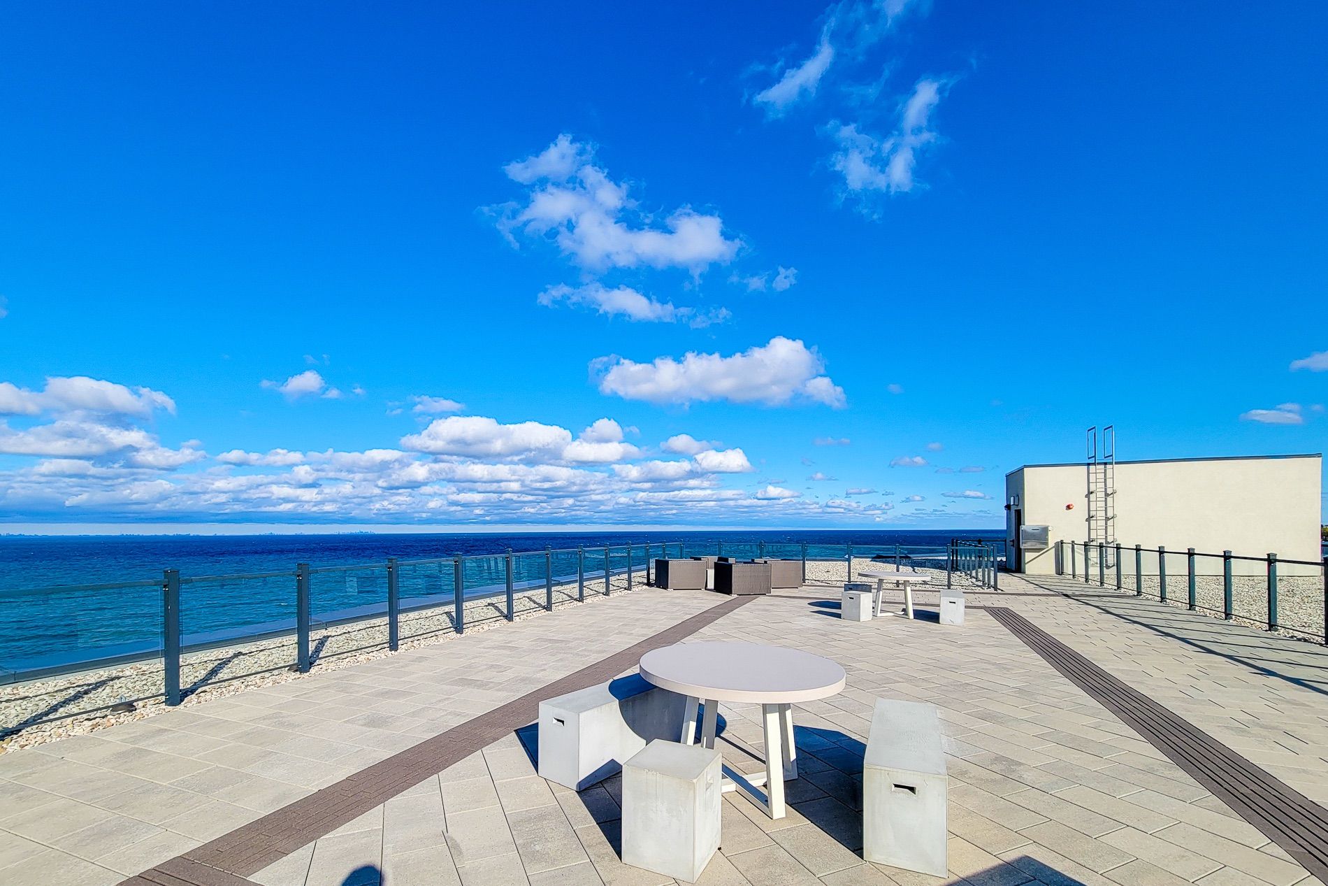 • Building features a party room and rooftop patio with lake views.