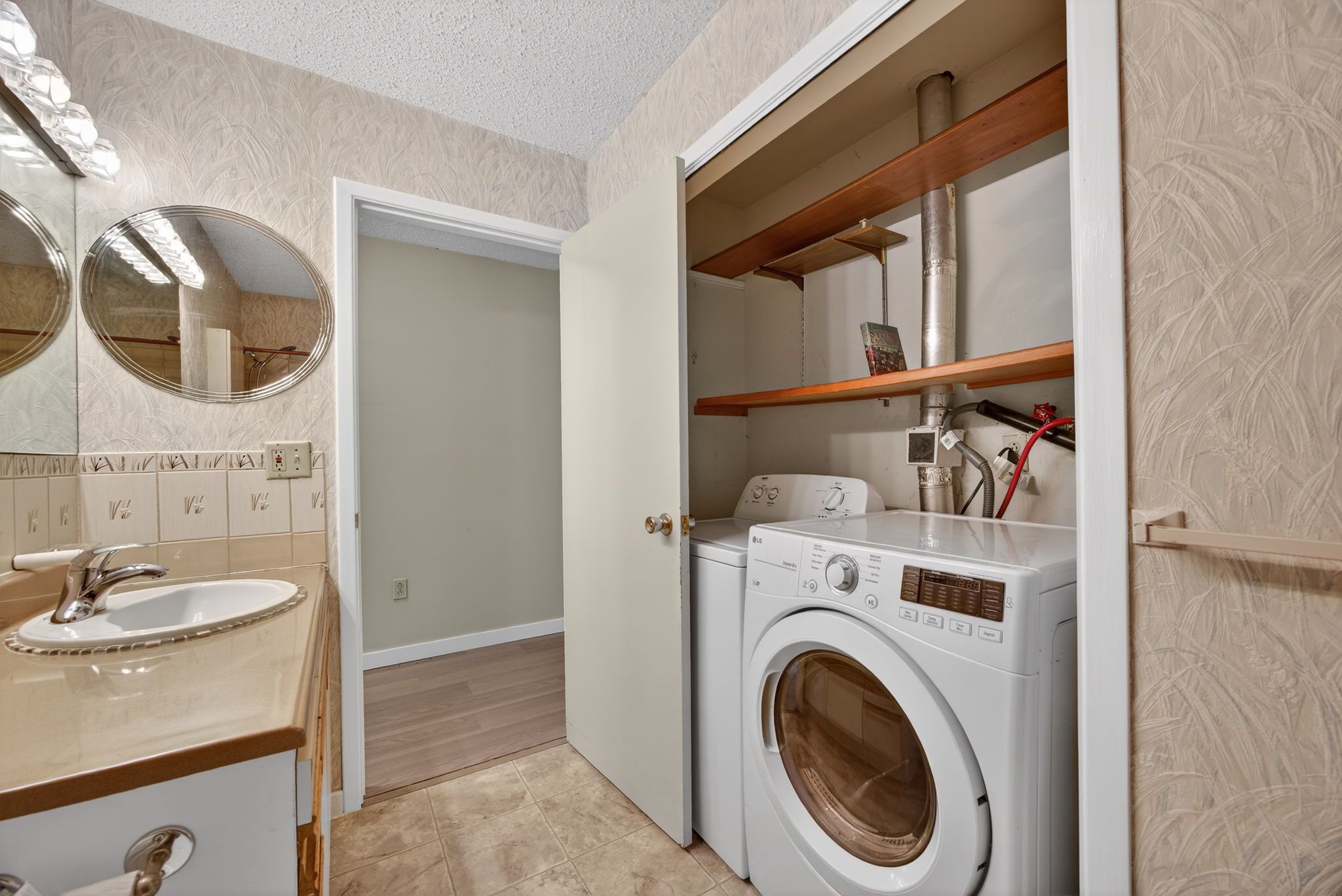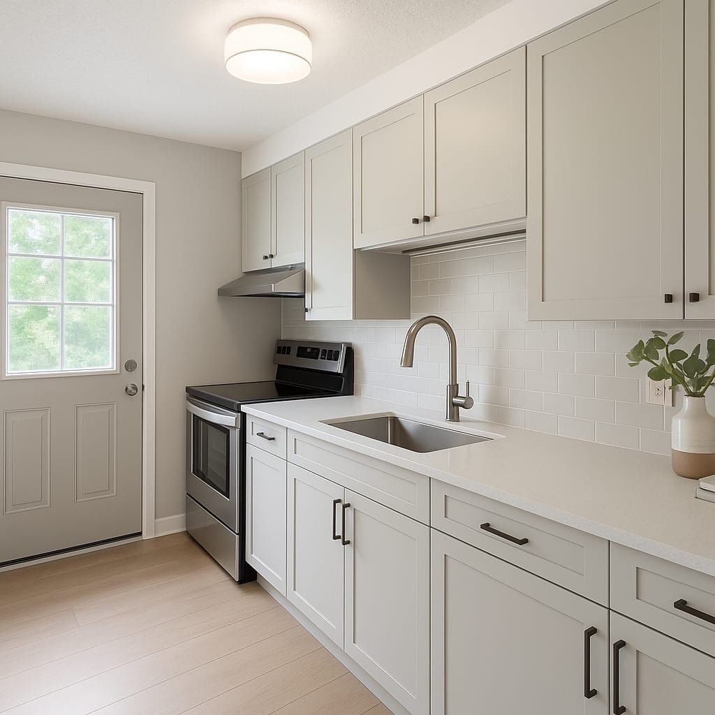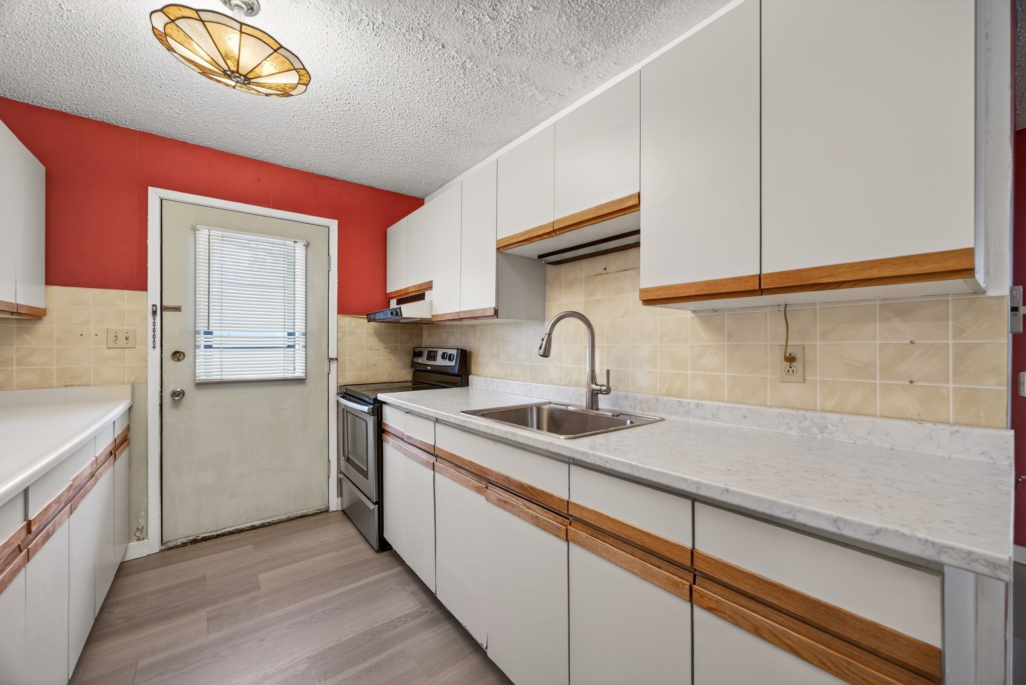 • Kitchen with ample cabinetry and access to the backyard for BBQs.