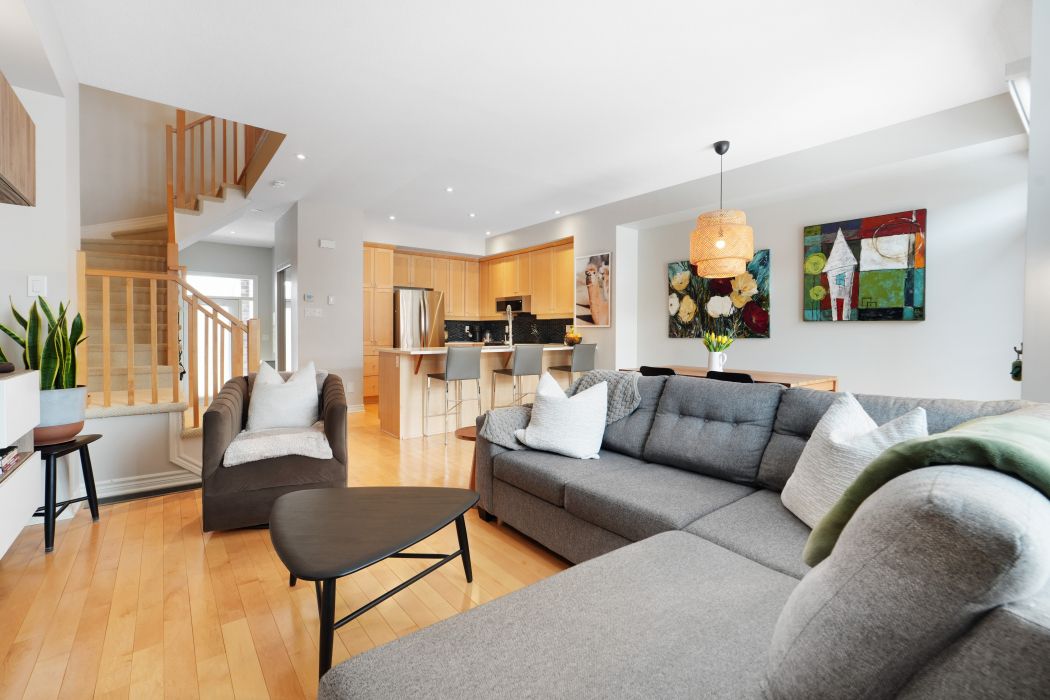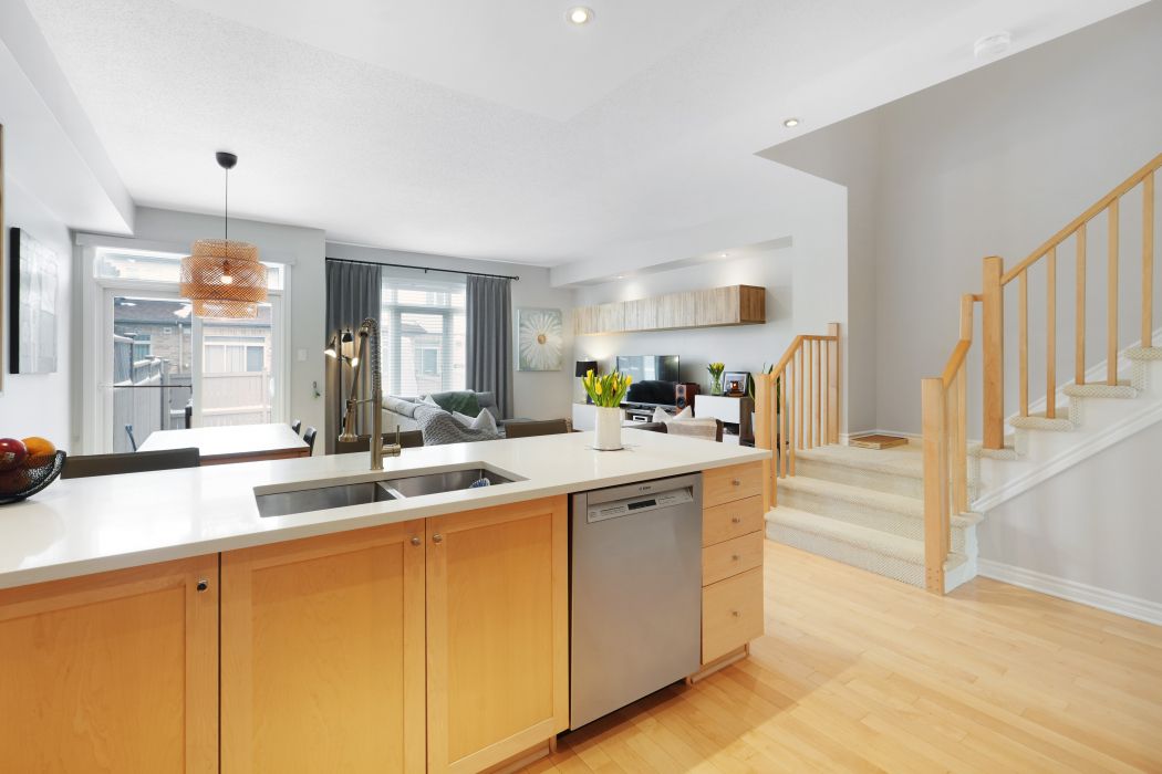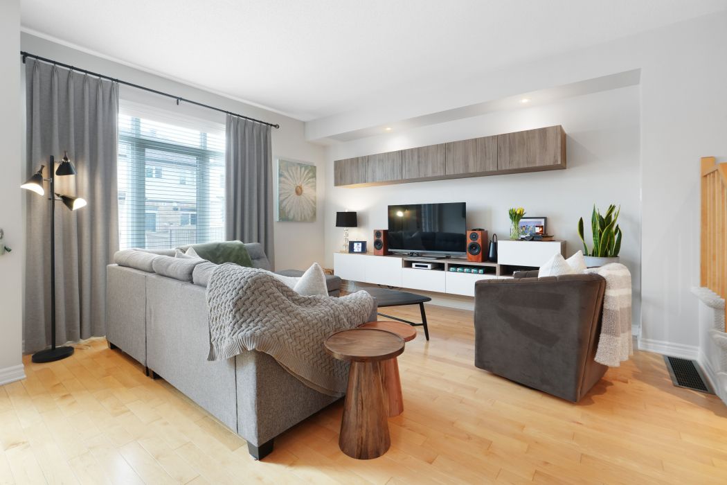 Luxury upgrades + over 1757 sq ft. + premium location ~ surrounded in parks and green space including river's bend park with walking/biking paths along the rideau river ~ just steps to lrt station and excellent schools ~ minutes to shopping, restaurants and community center. Upgrades include quartz counter tops, custom lighting, custom window treatments and freshly painted in designer colors. "picture perfect' curb appeal with gorgeous brick work, a covered porch and interlock walkway. Bright, welcoming foyer opens with great site lines into the great room. The main floor offers an open-concept floor plan, hardwood floors, 9 ft. Ceilings, open staircase and a wall of windows flooding the space in natural light. Great room with custom, floating entertainment center. Gorgeous kitchen with stainless steel appliances, pantry & large breakfast bar. Elegant dining area with patio doors to fully fenced backyard. Low maintenance landscaping with river rock, stone patio and deck. The master retreat feels like a boutique hotel and boasts double door entry, large window, walk-in closet and spa-like en-suite with soaker tub & separate shower. 2 additional bedrooms and convenient 2nd floor laundry. Finished lower level has a large family room with cozy fireplace, perfect for movie nights. Rough-in bathroom and storage room. Book an appointment today for this immaculate home in family-friendly neighbourhood.