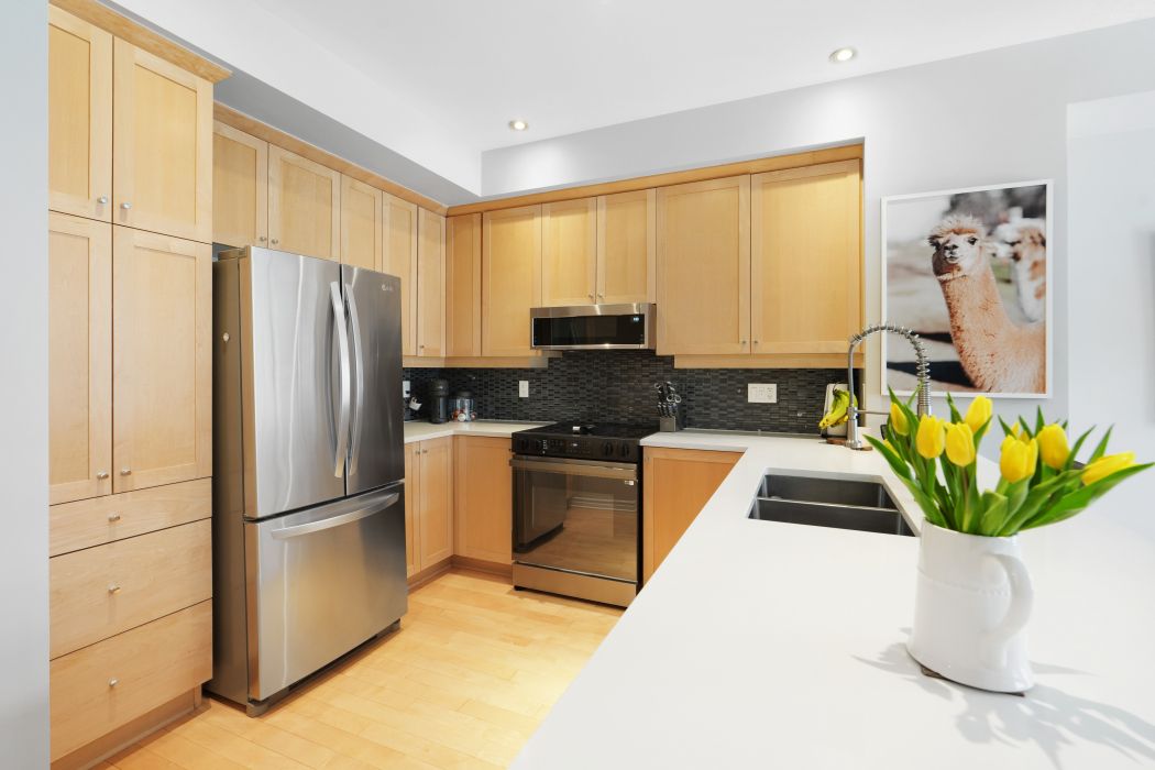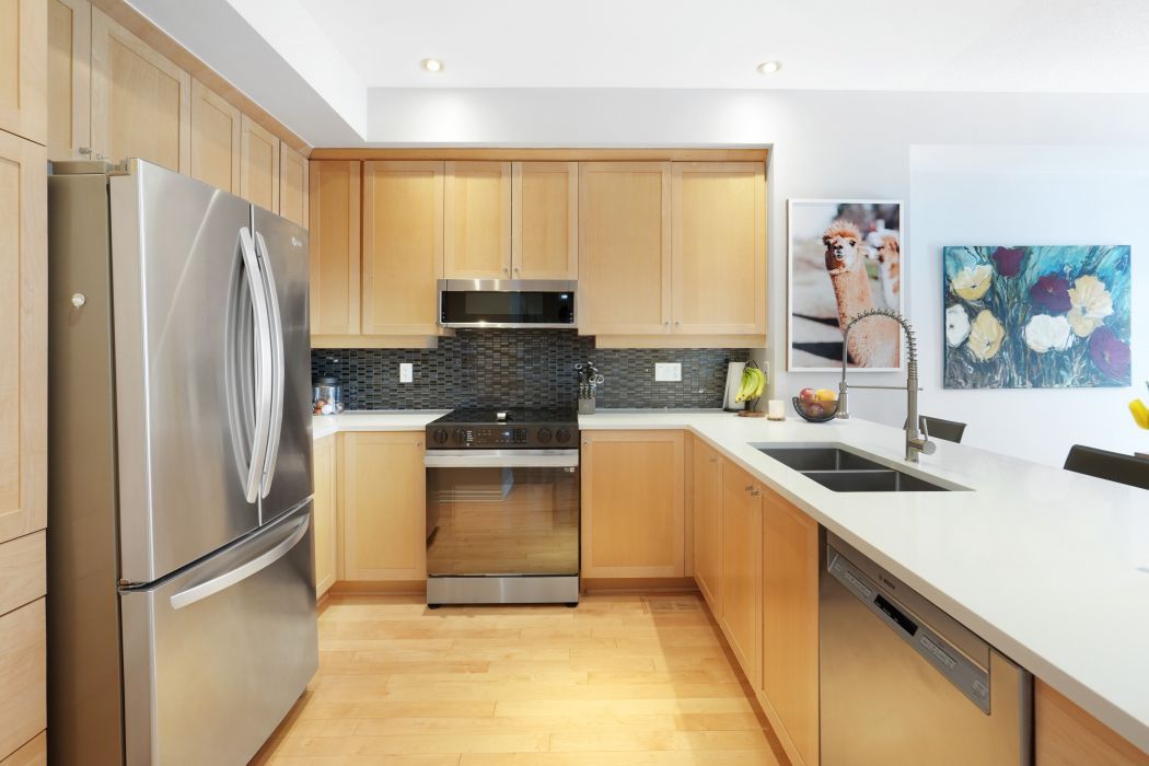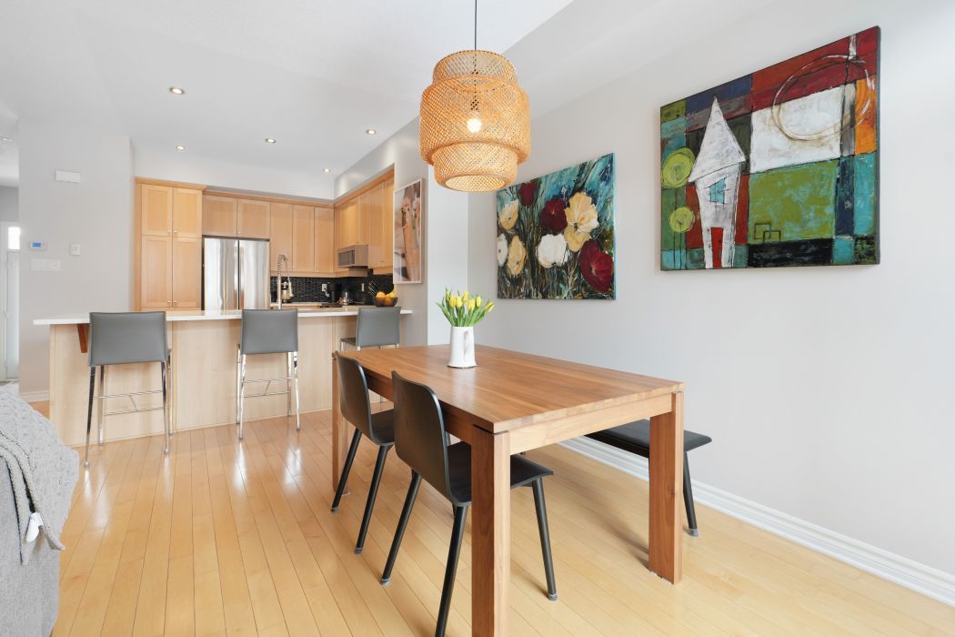 • Bright open-concept layout with hardwood floors and 9 ft ceilings.
